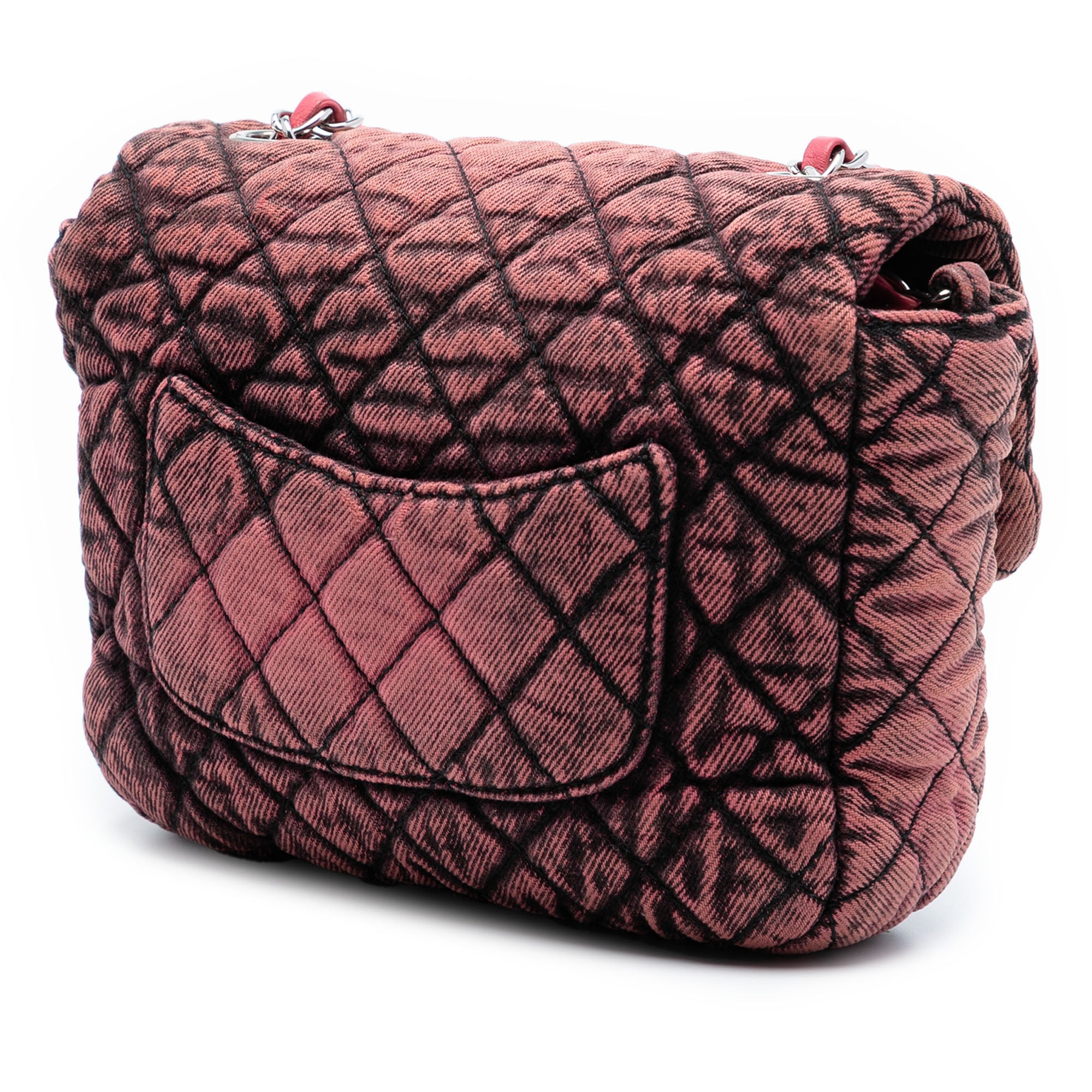 Pink Chanel Small Square CC Quilted Denimpression Single Flap Crossbody Bag