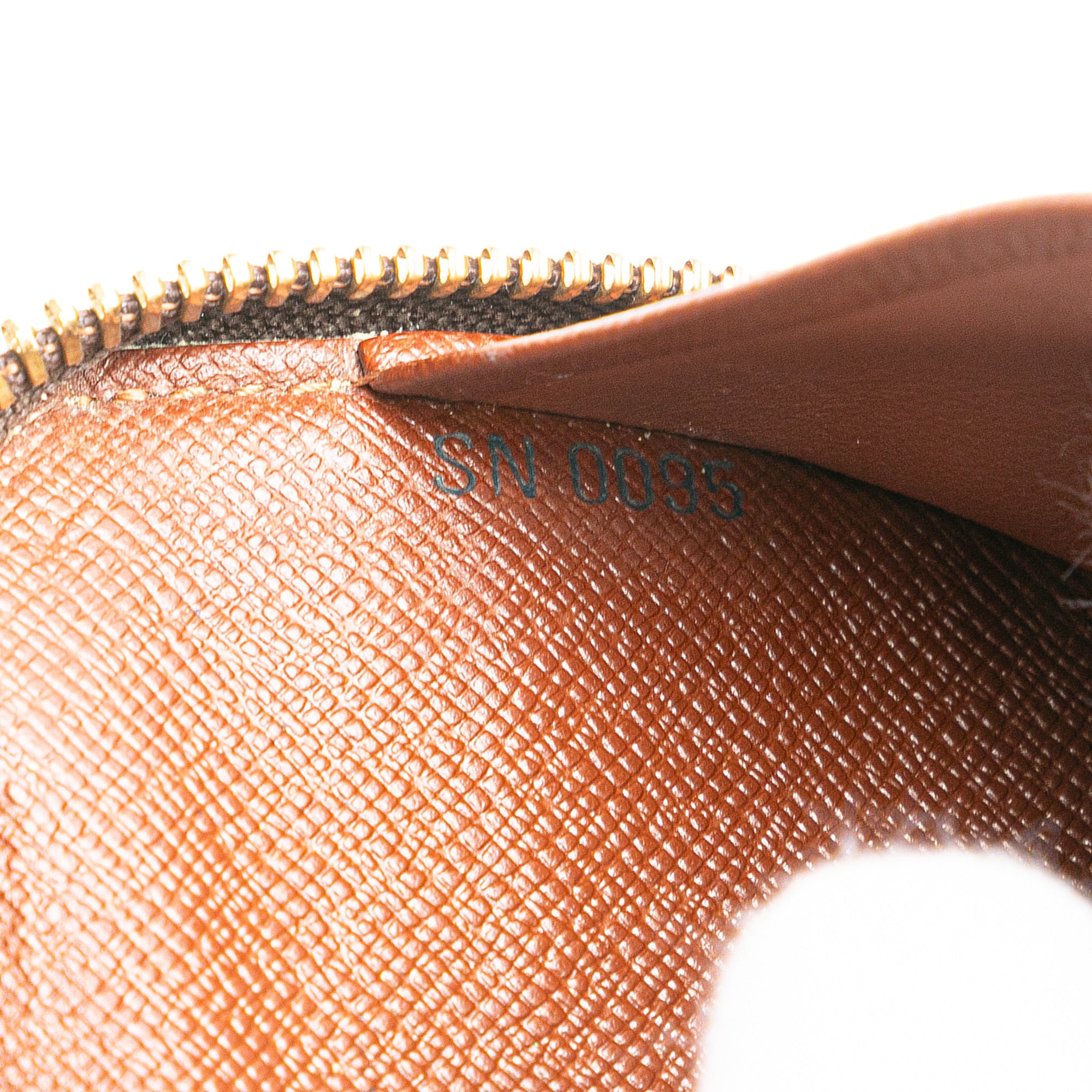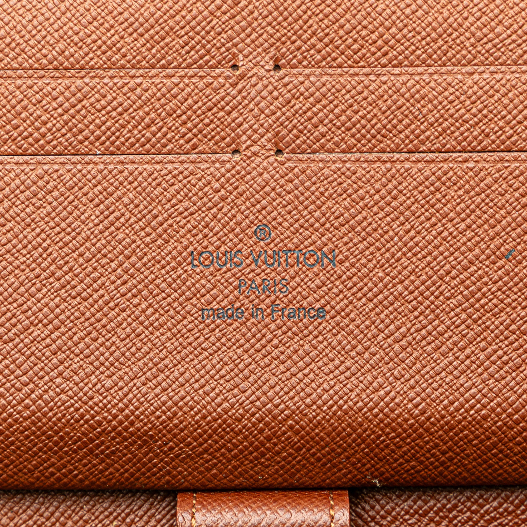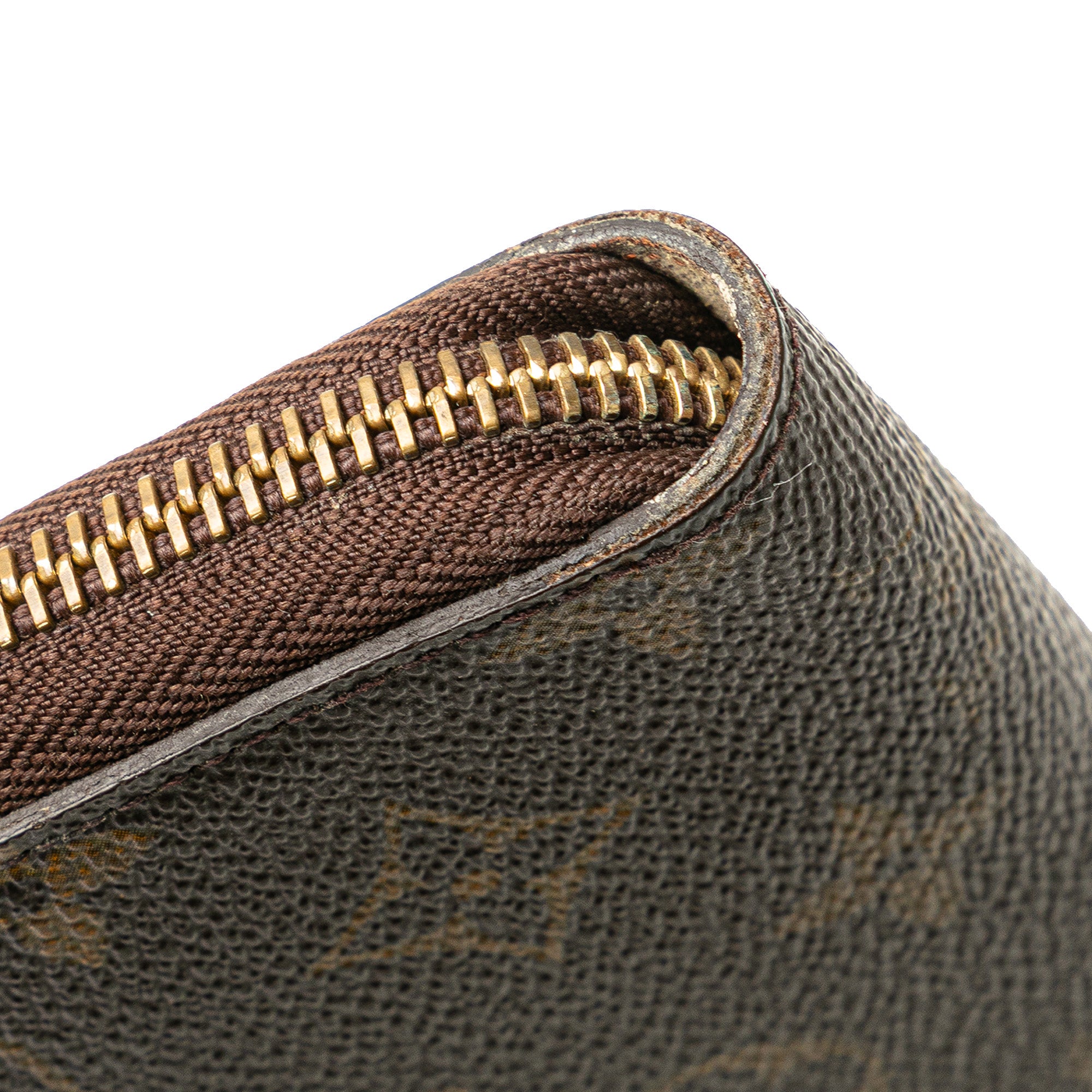 Product Details: Brown Louis Vuitton Monogram Zippy Organizer Wallet. This organizer wallet features a monogram canvas body, a zip around closure, and interior zip and slip compartments. 4.7" L x 8.1" W x 0.8" D. Serial number SN0095.