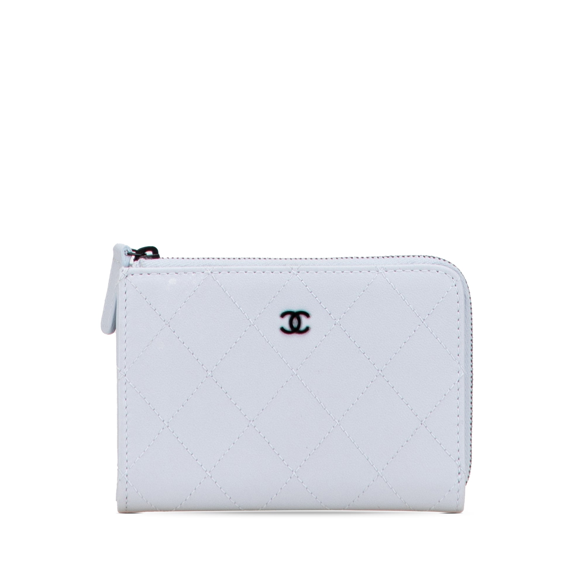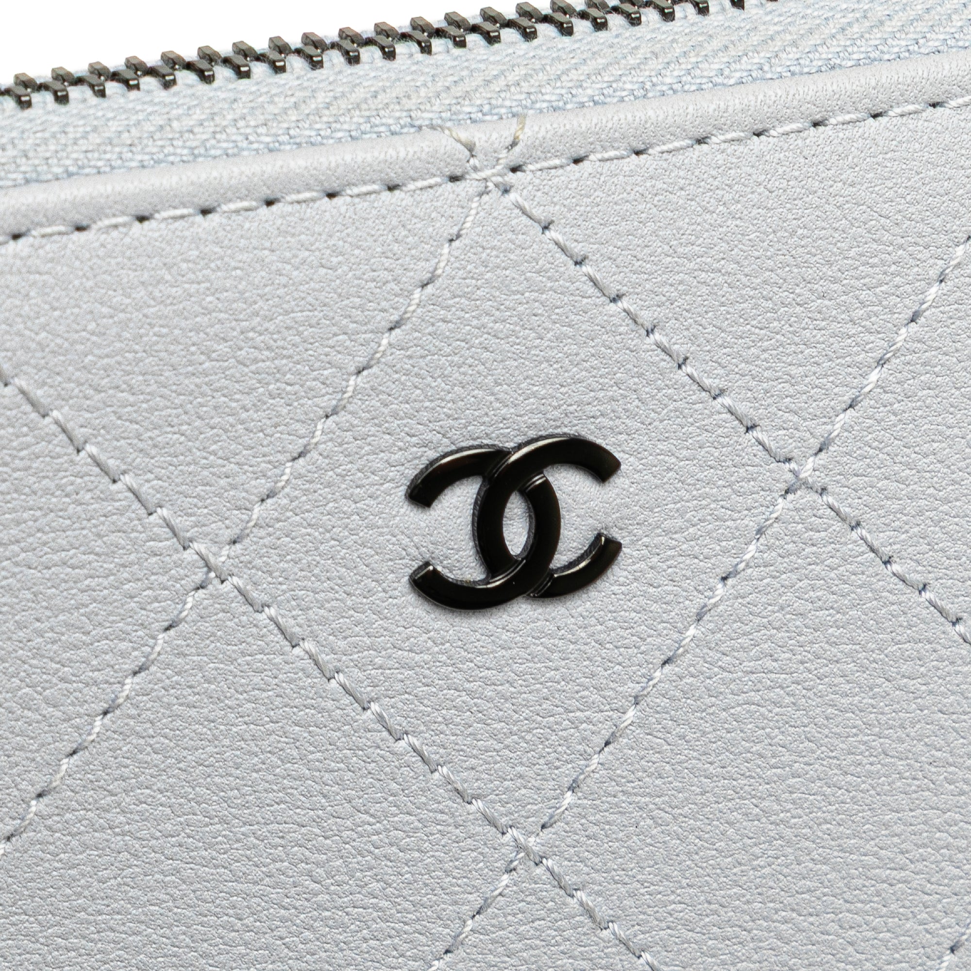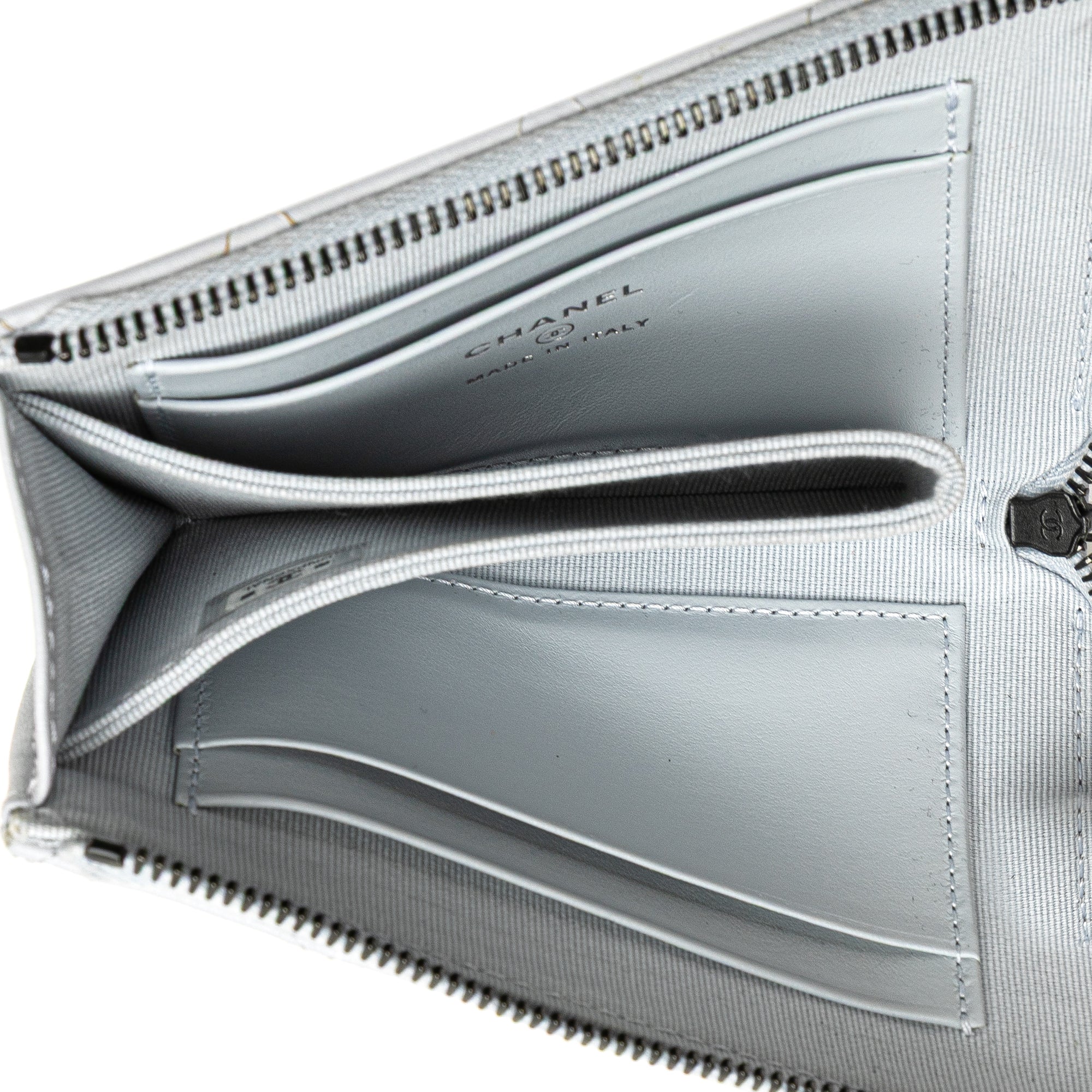 Gray Chanel CC Quilted Calfskin Zip Wallet