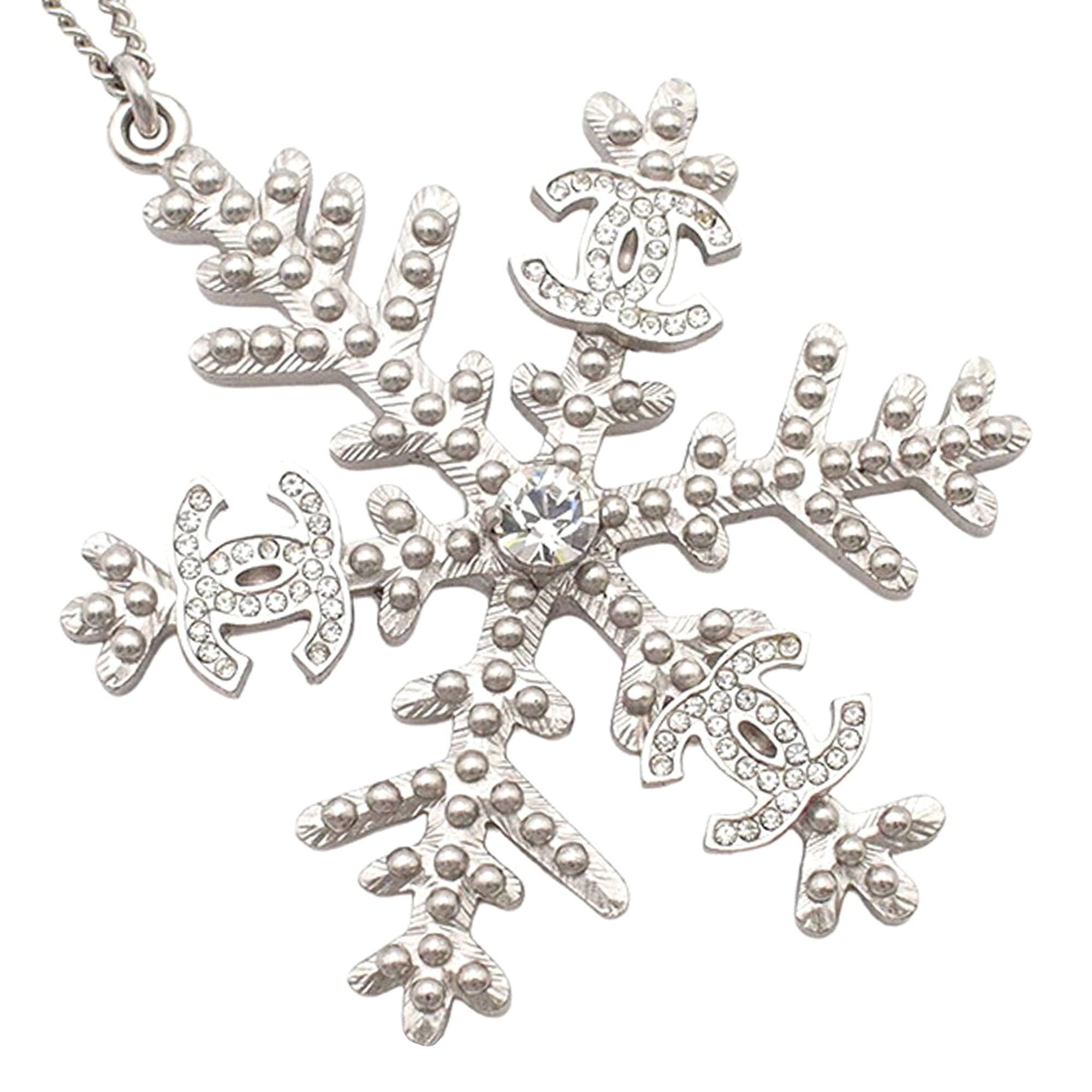 Silver Chanel Silver Plated CC Rhinestone Snowflake Pendant Necklace