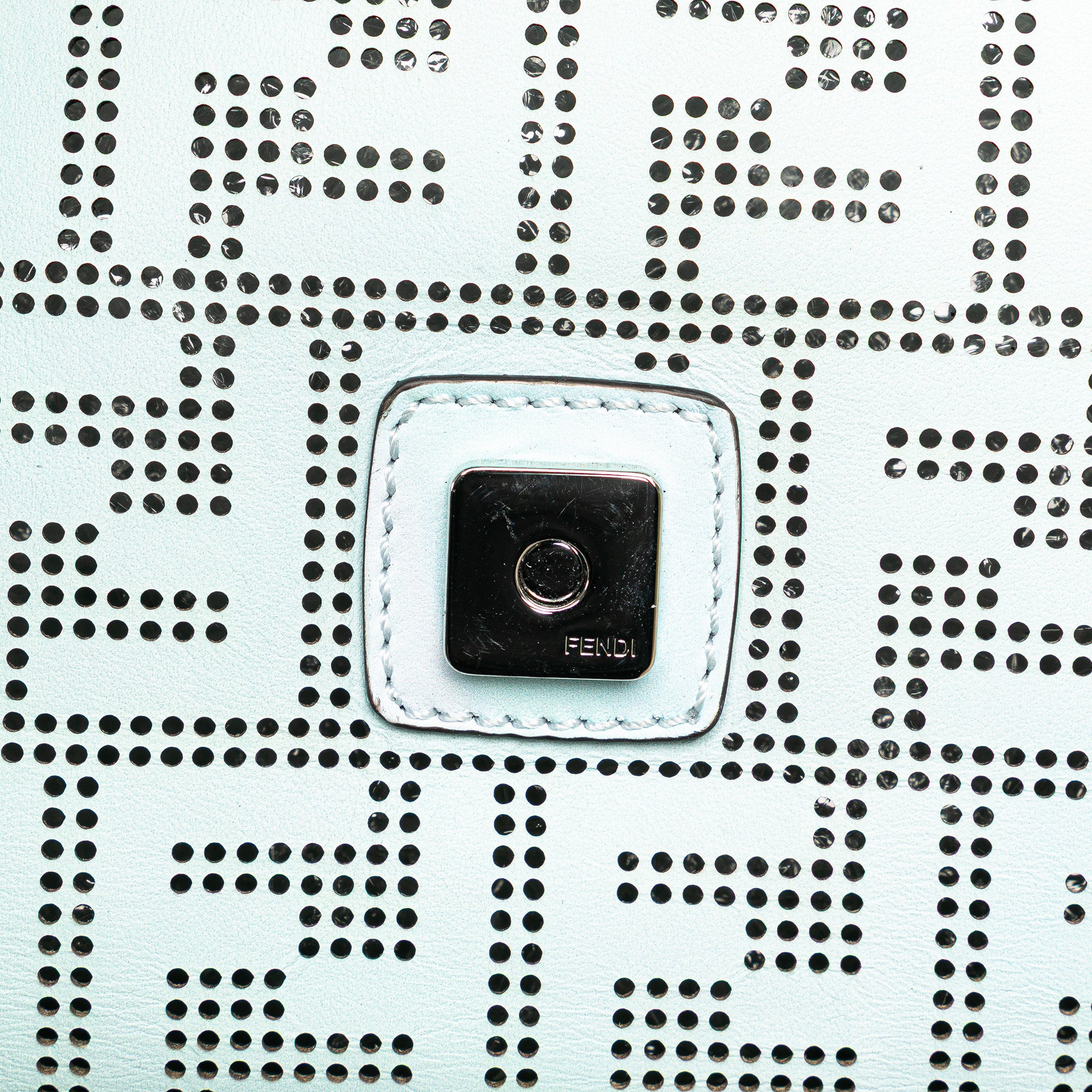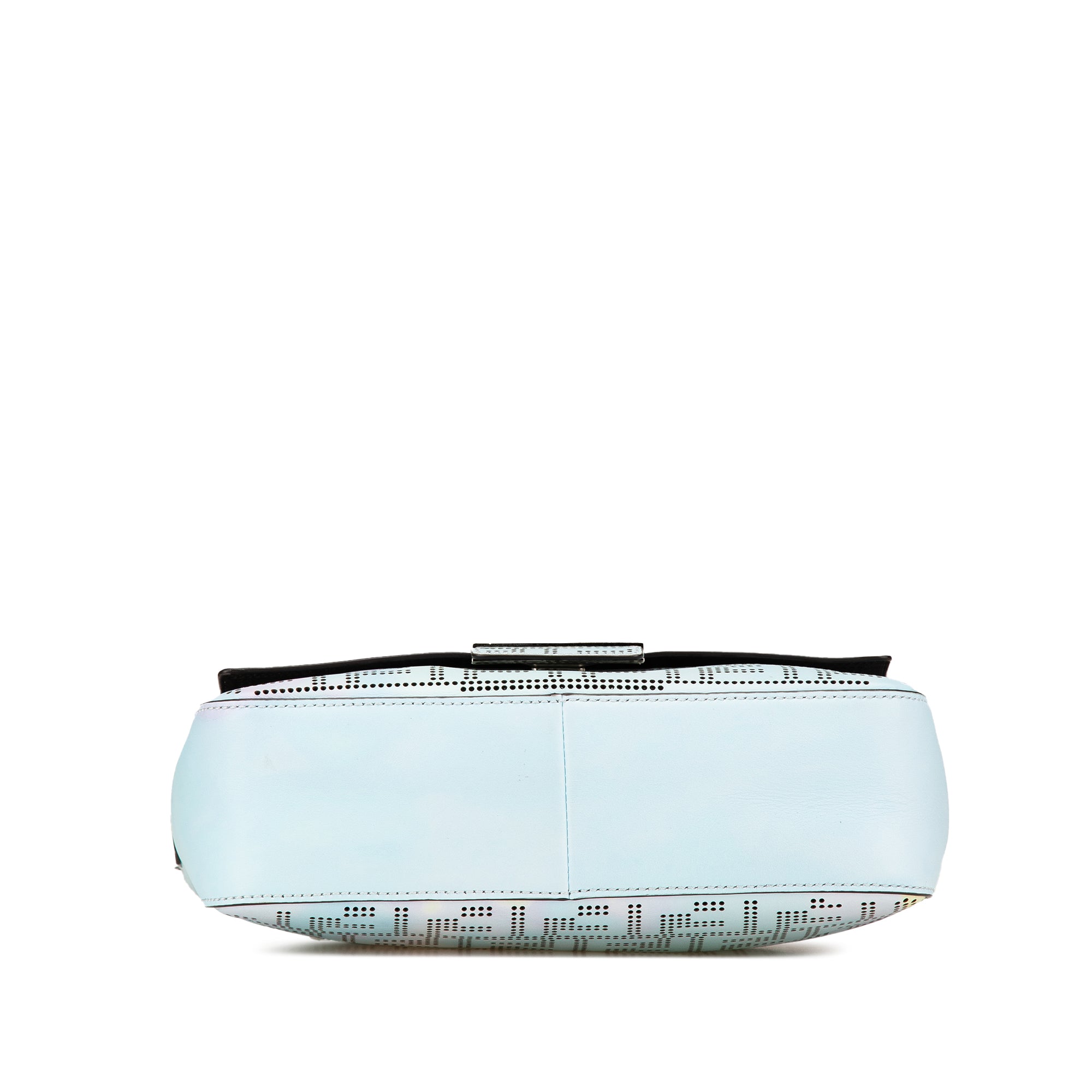 Blue Fendi Medium Zucca Perforated Leather Baguette Messenger Bag