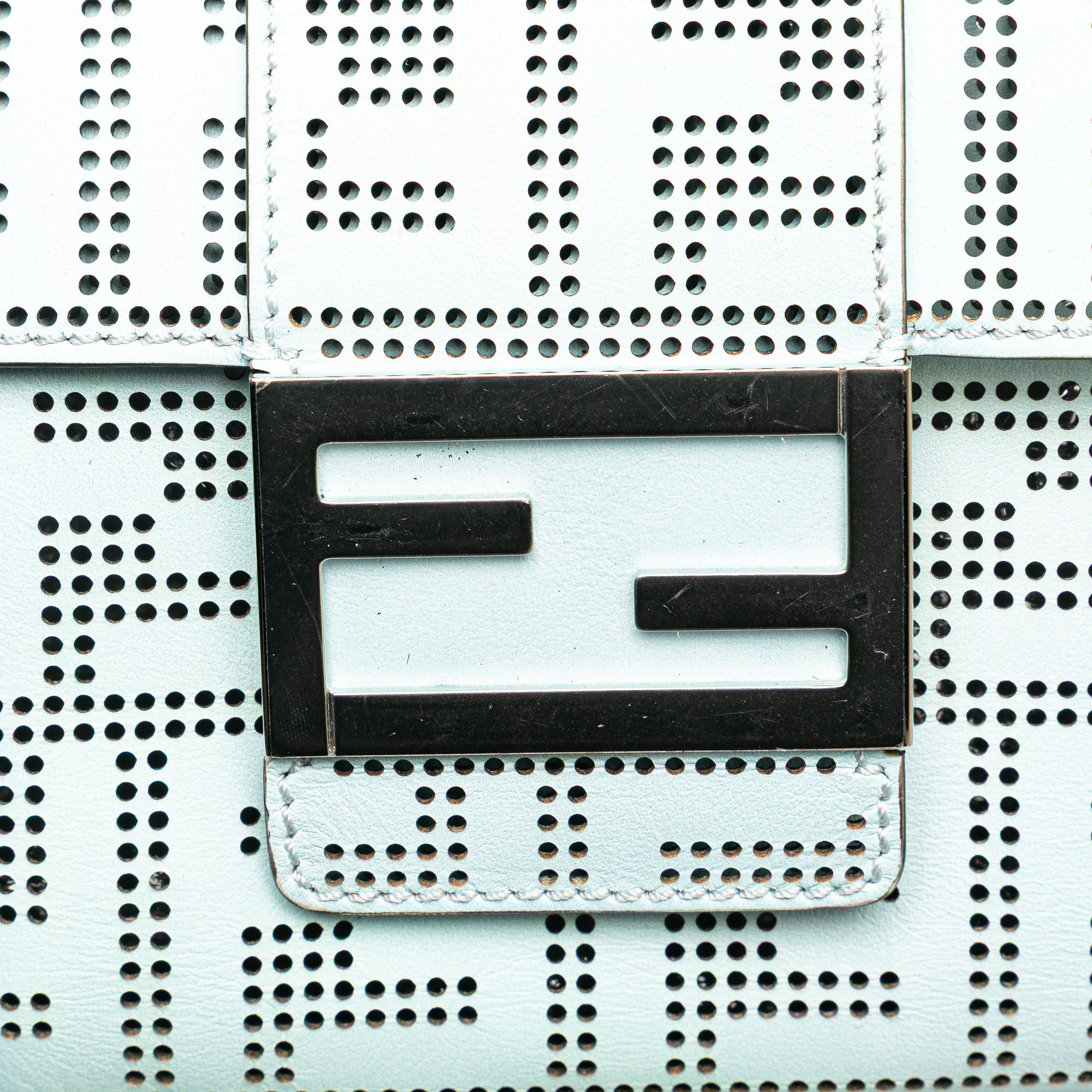 Please note this is a pre-owned item that may display signs of wear consistent with the condition listed above and shown in photos. Designer Revival guarantees this is an authentic Blue Fendi Medium Zucca Perforated Leather Baguette Messenger Bag or 100% of your money back. Learn more about our authentication process.