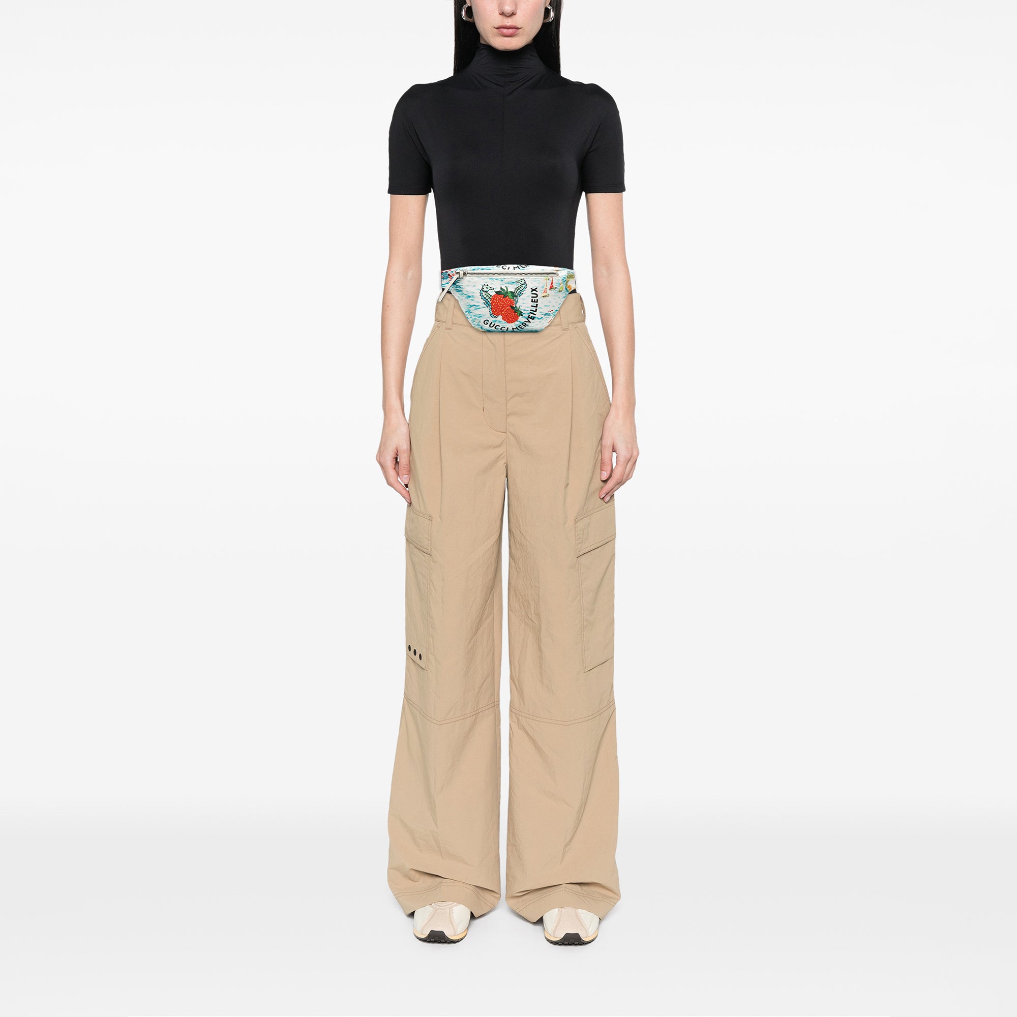 White Gucci Nylon Merveilleux Strawberry Print Belt Bag