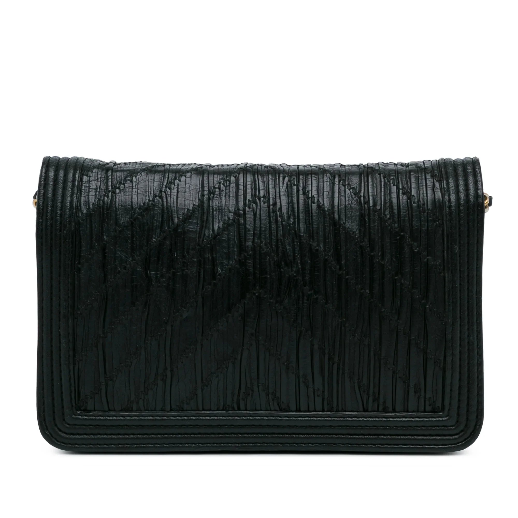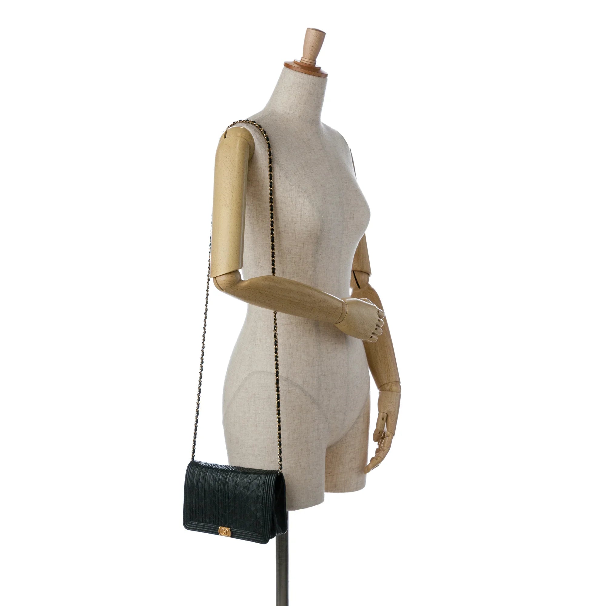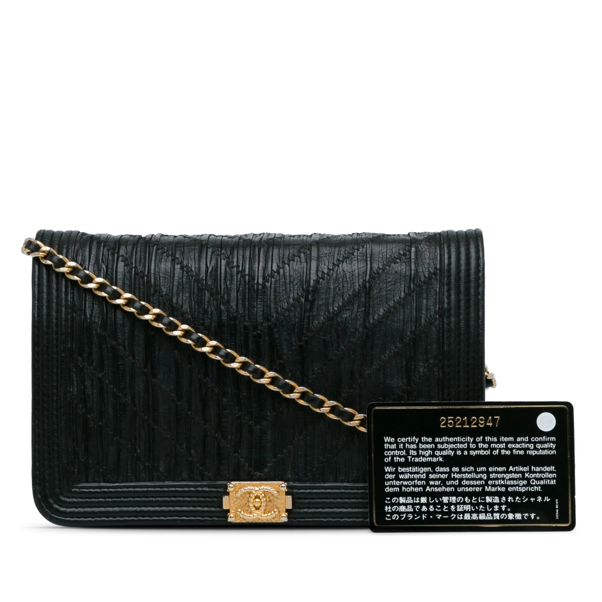 Black Chanel Pleated Crumpled Chevron Le Boy Wallet On Chain Crossbody Bag