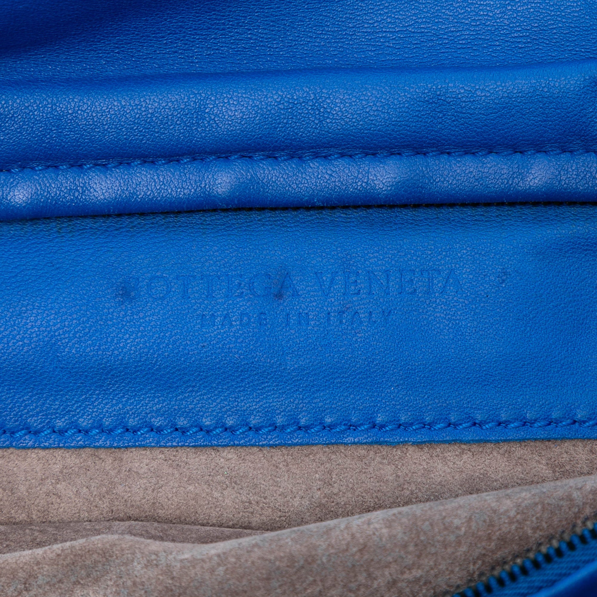Blue Bottega Veneta Nappa Intrecciato Turn Lock Clutch