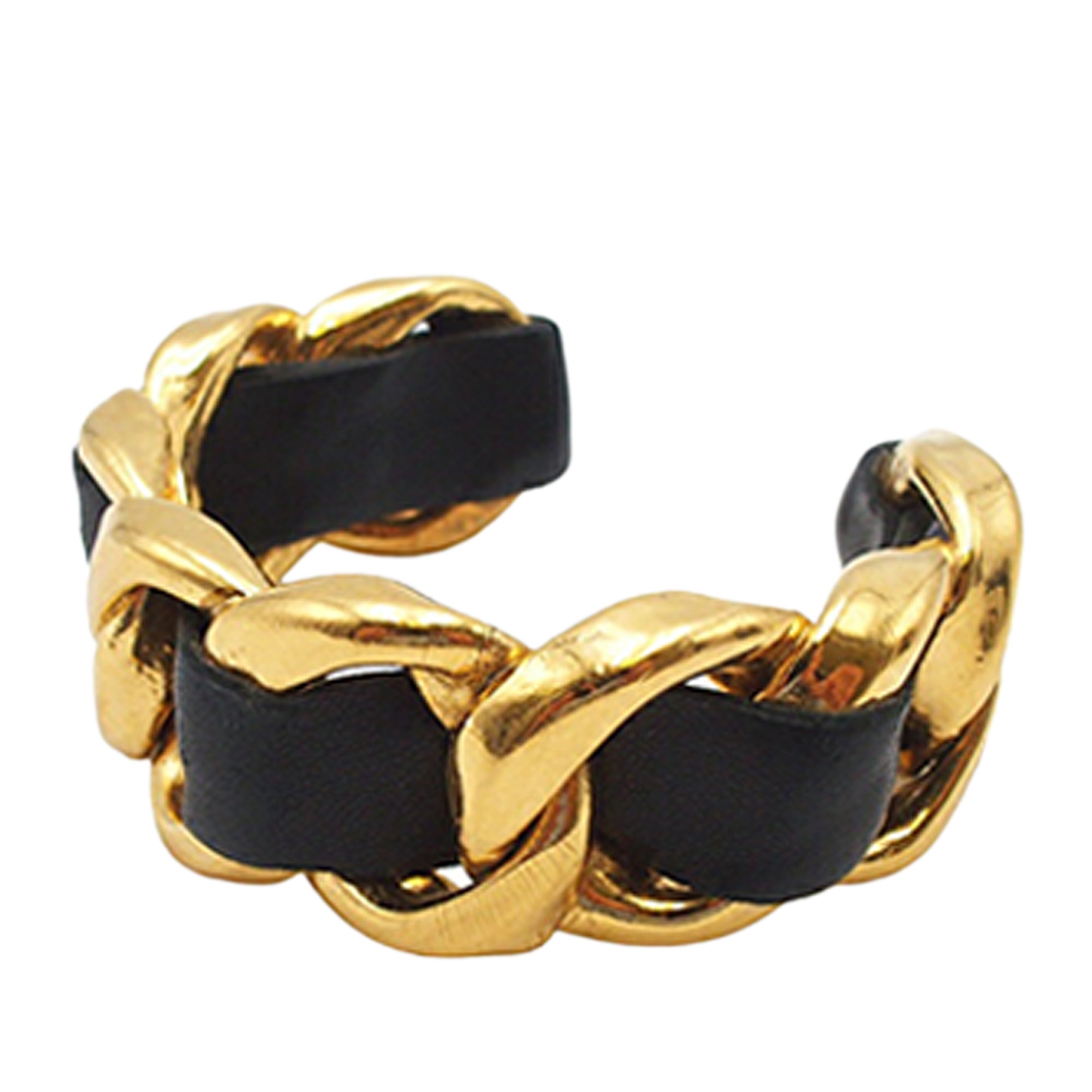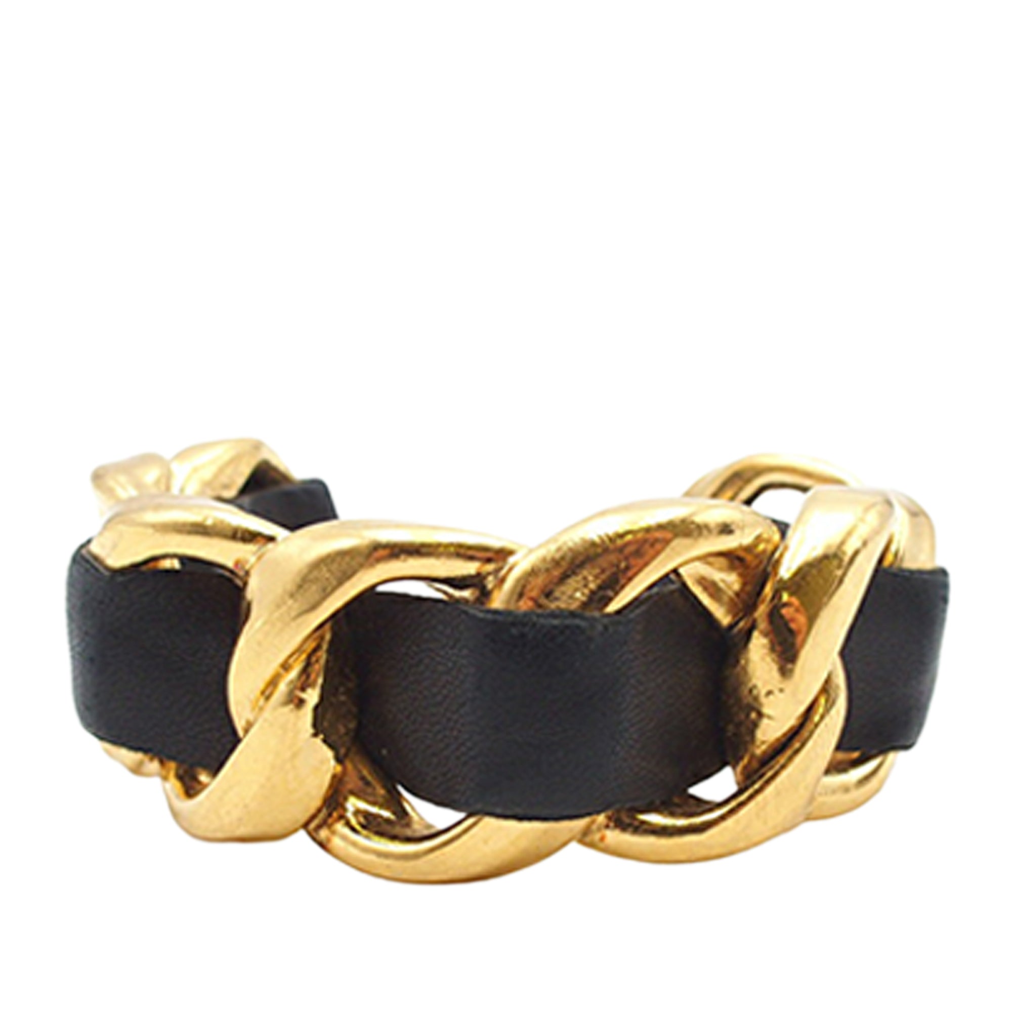 Please note this is a pre-owned item that may display signs of wear consistent with the condition listed above and shown in photos. Designer Revival guarantees this is an authentic Gold Chanel Gold Plated Leather Woven Chain Cuff Bracelet or 100% of your money back. Learn more about our authentication process.