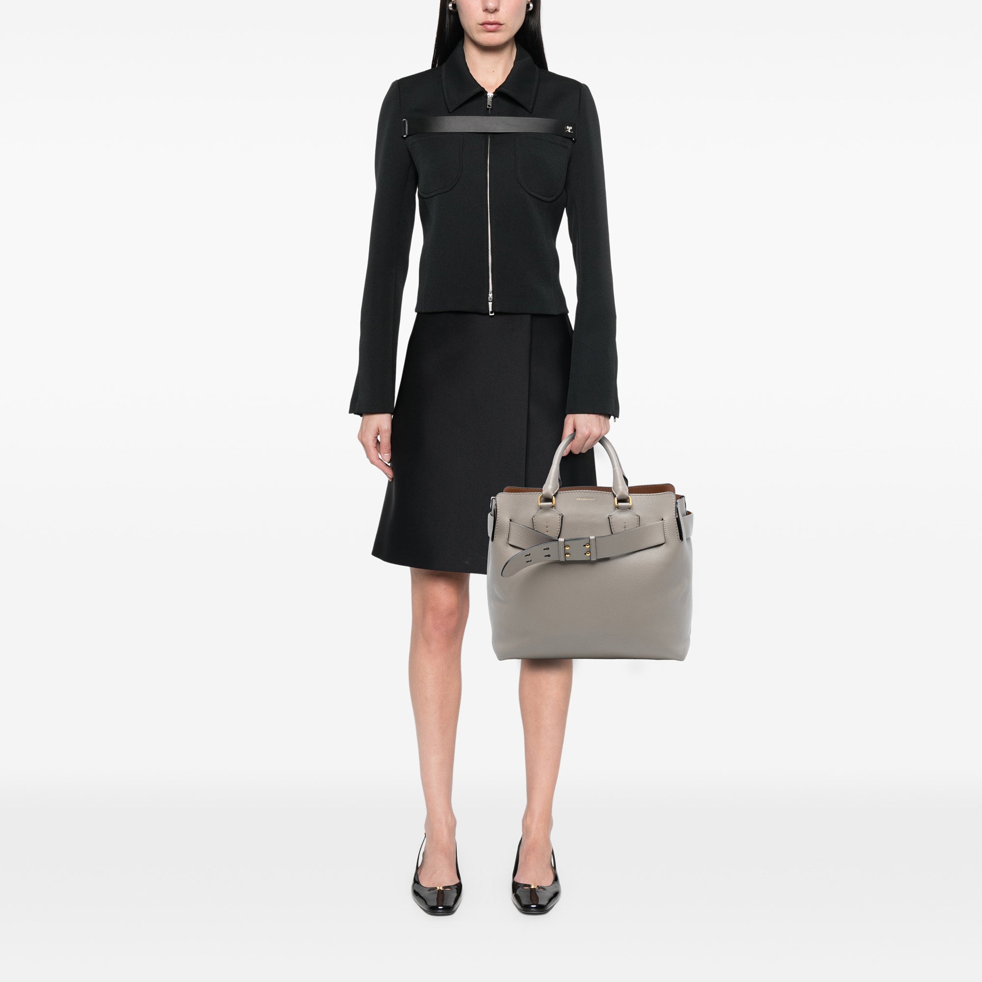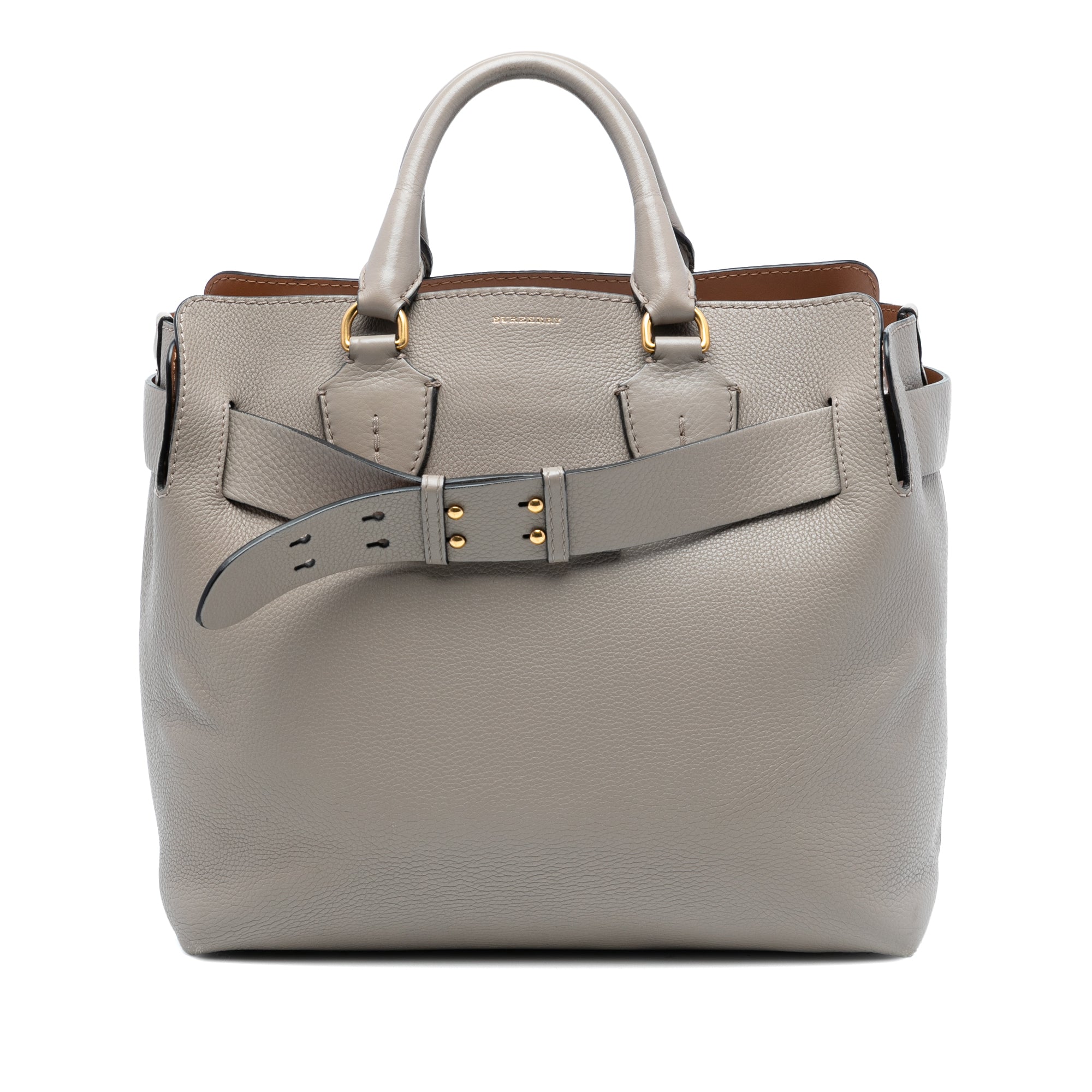 Product Details: Brown Burberry Medium Leather Belt Bag Satchel. The Belt satchel features a leather body, rolled leather handles, an open top with magnetic snap closure, and interior slip pockets. 12" L x 13" W x 6.7" D, 4.1" drop.