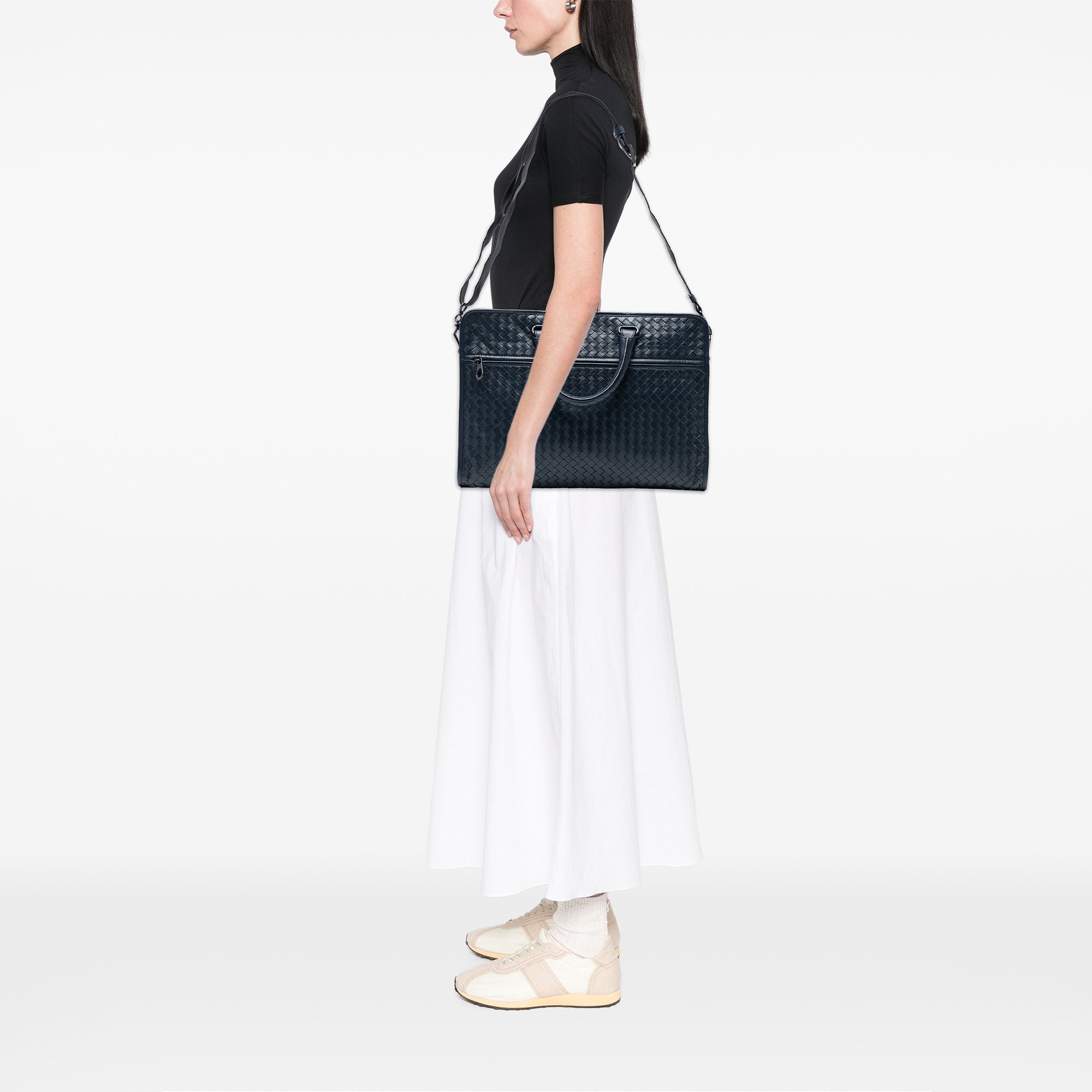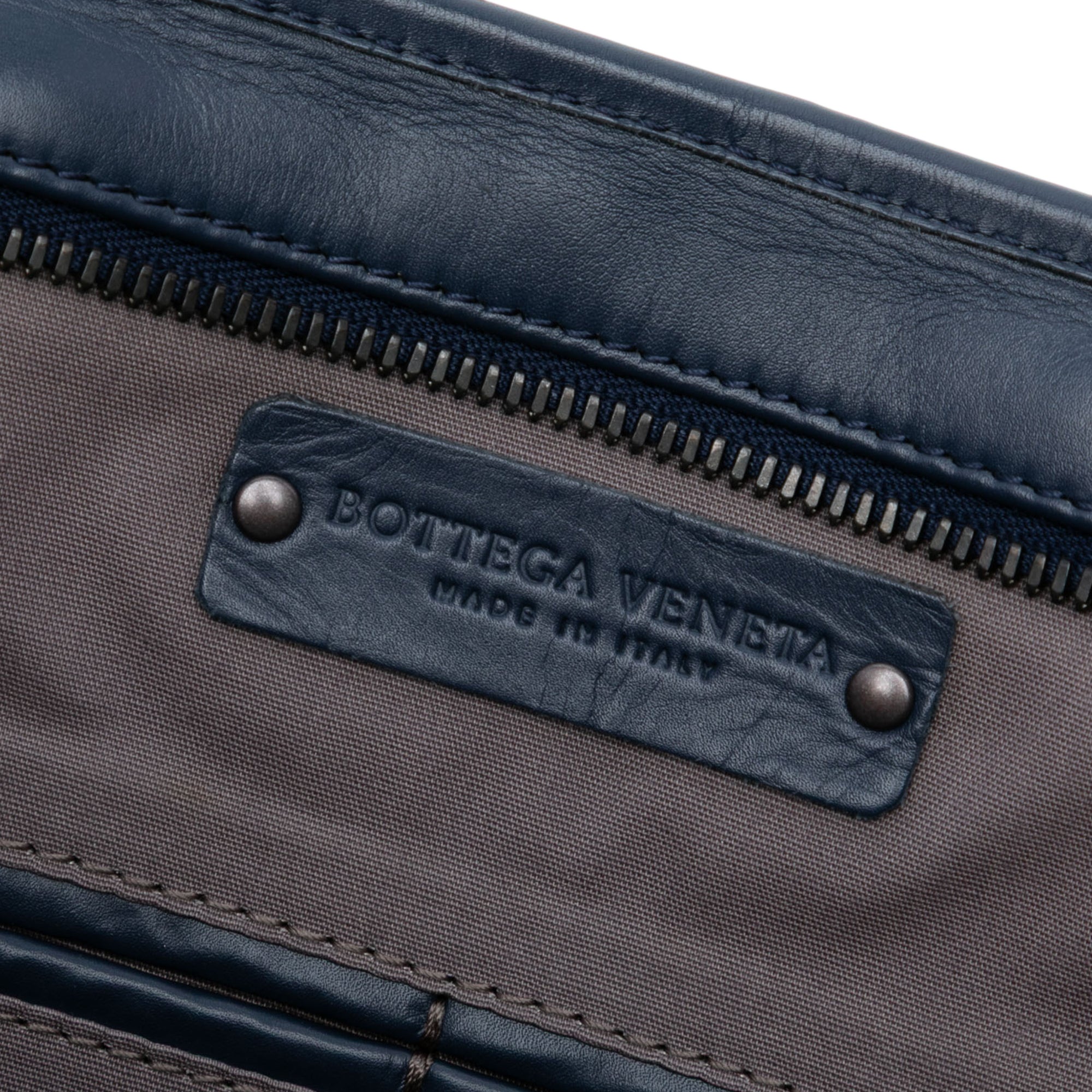 Navy Blue Bottega Veneta Nappa Intrecciato Business Bag