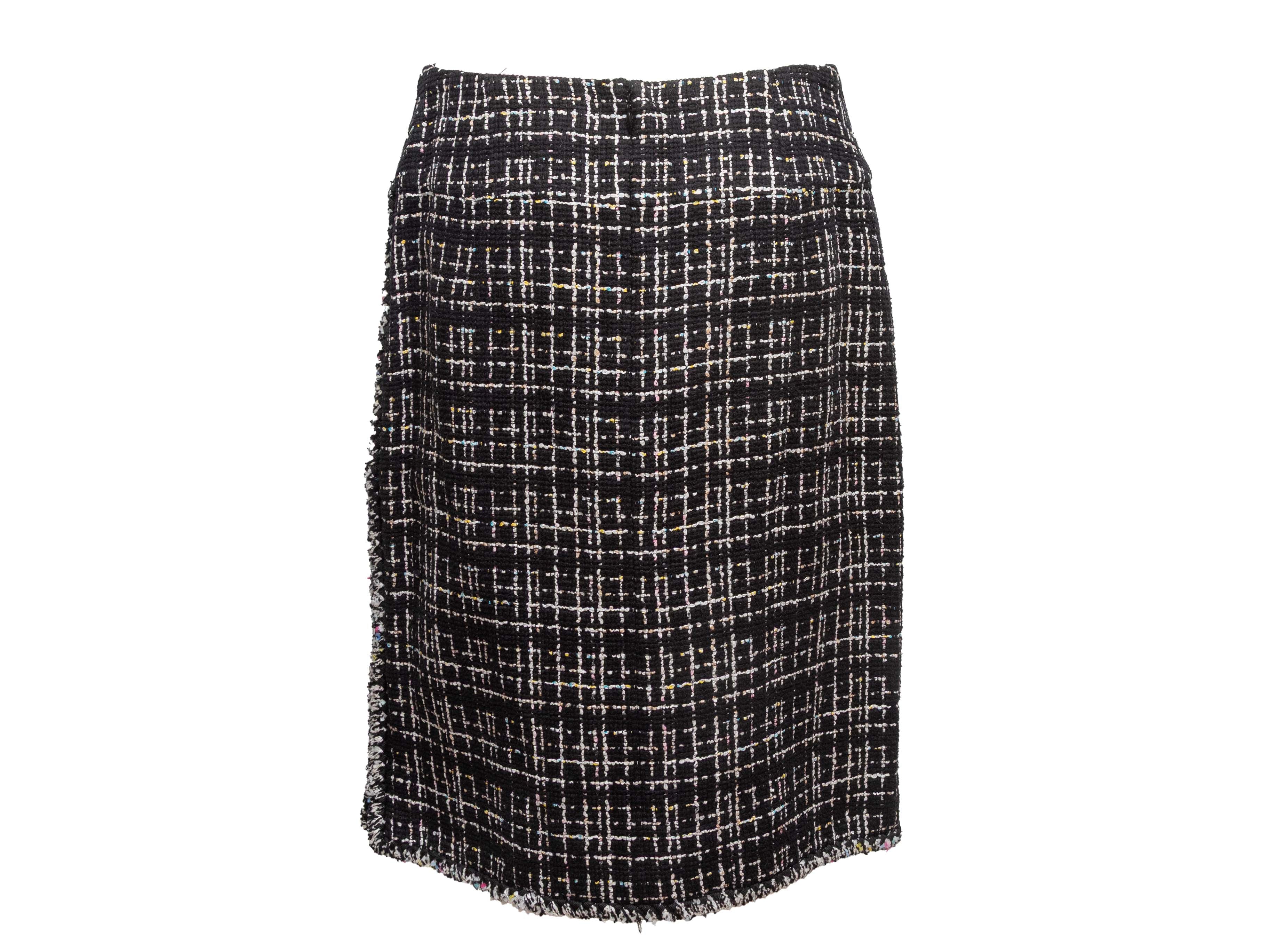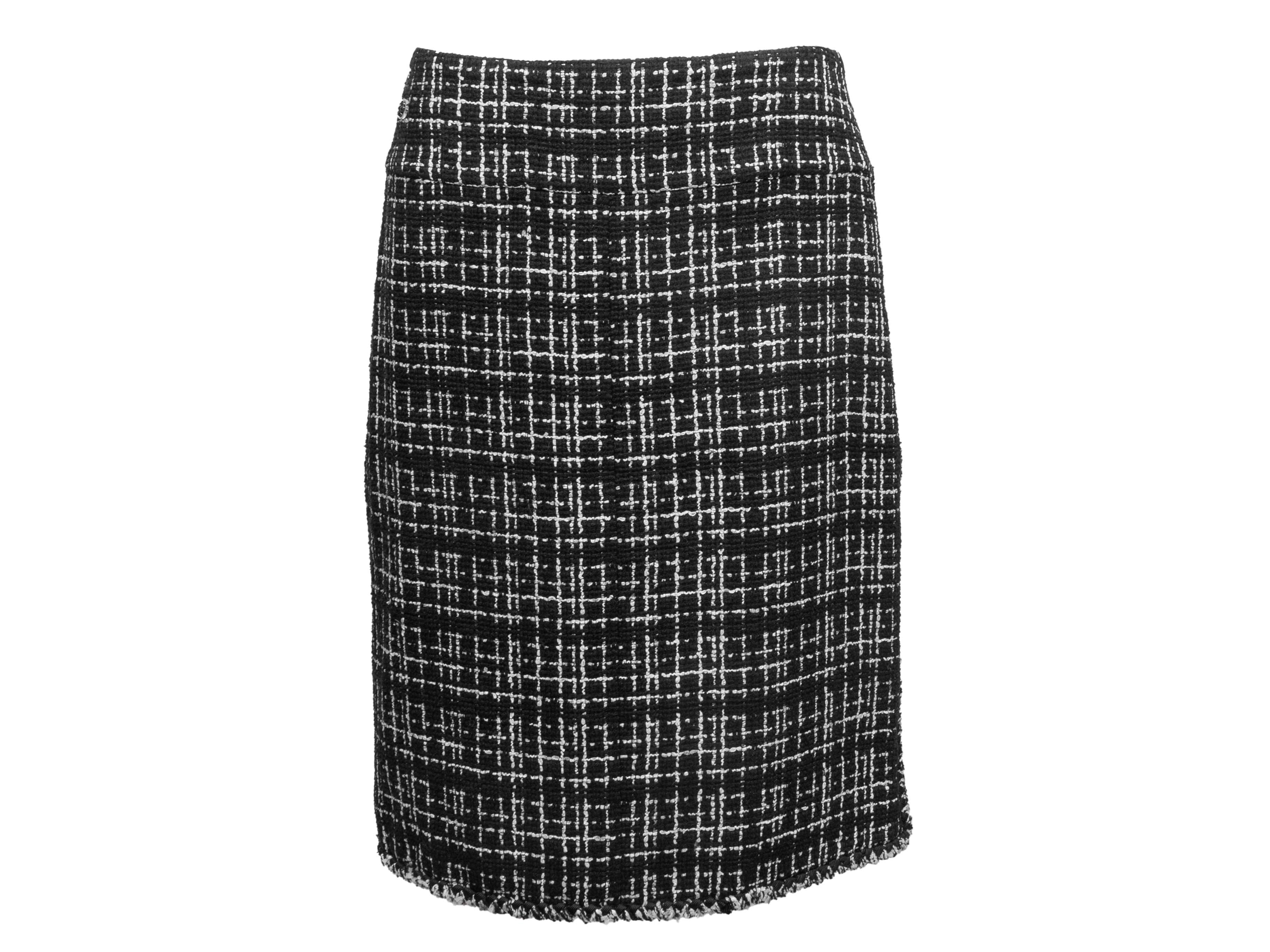 Black & White Chanel Tweed Knee-Length Pencil Skirt Size FR 42