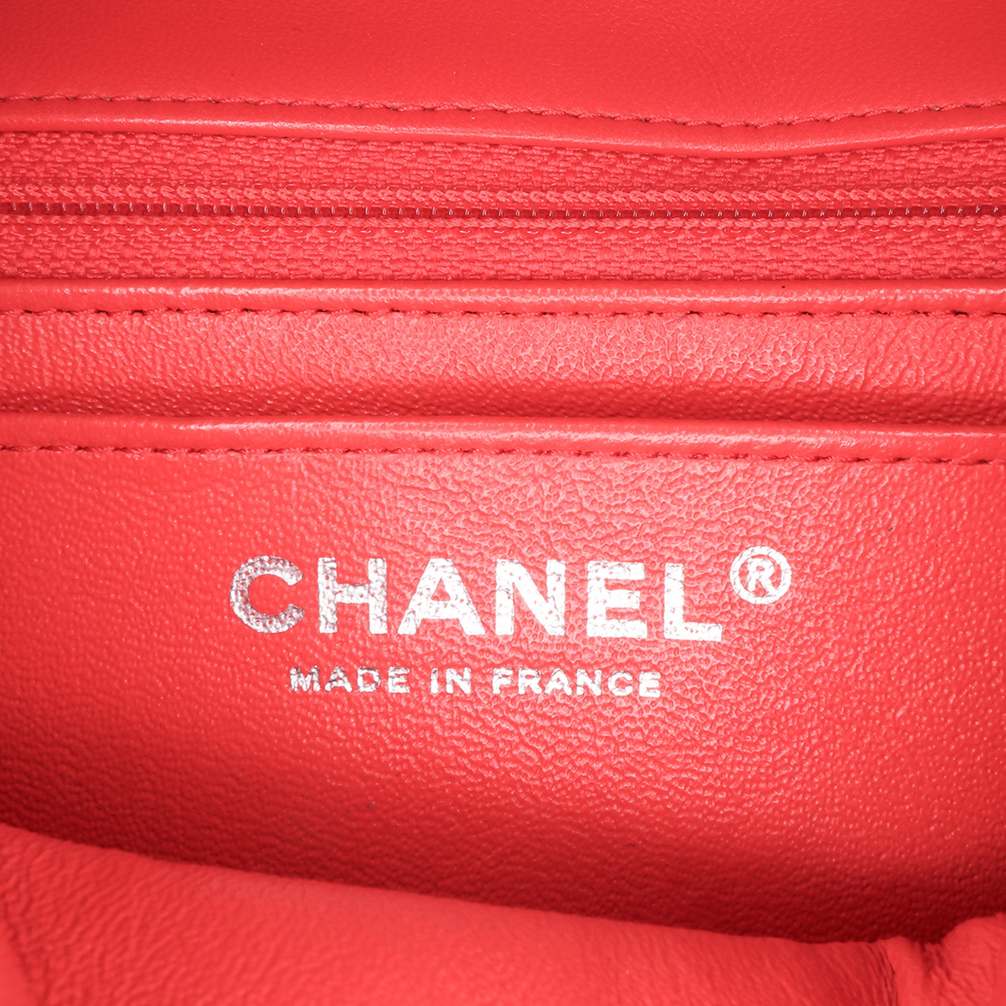 Red Chanel Mini Square Classic Lambskin Flap Crossbody Bag