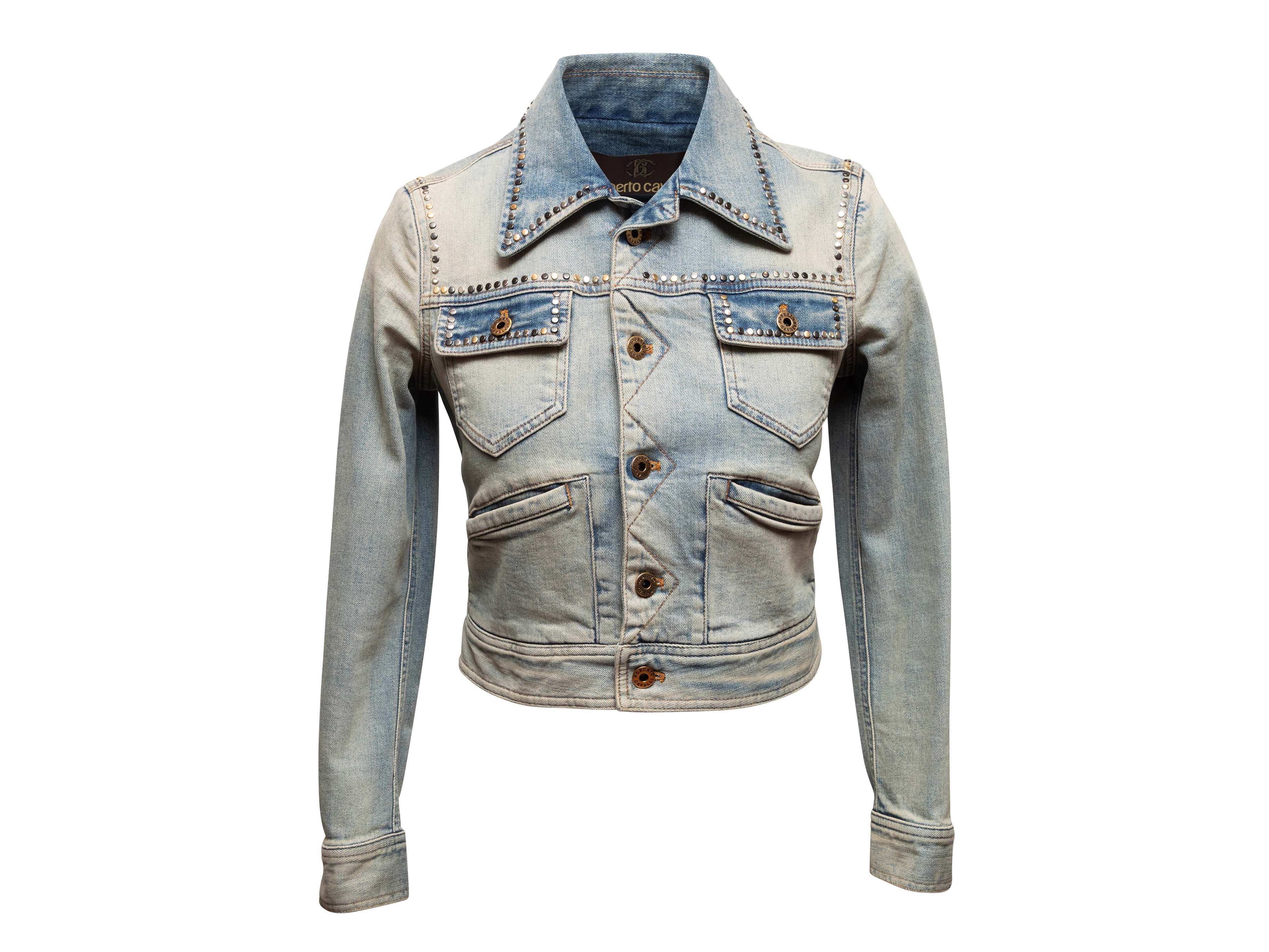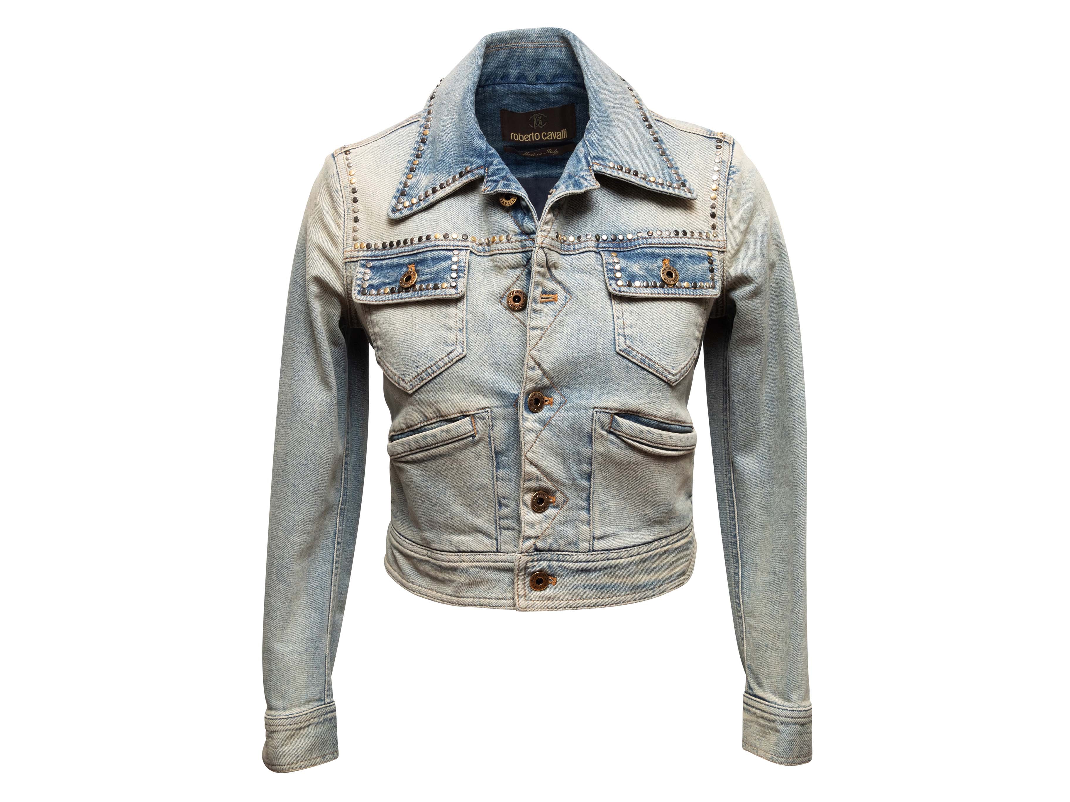 Light Wash Roberto Cavalli Studded Denim Jacket Size IT 38