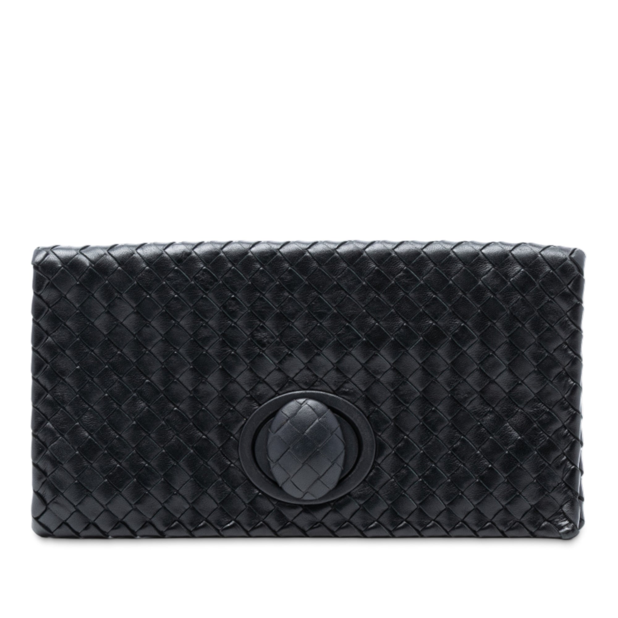 Black Bottega Veneta Nappa Intrecciato Turn Lock Clutch