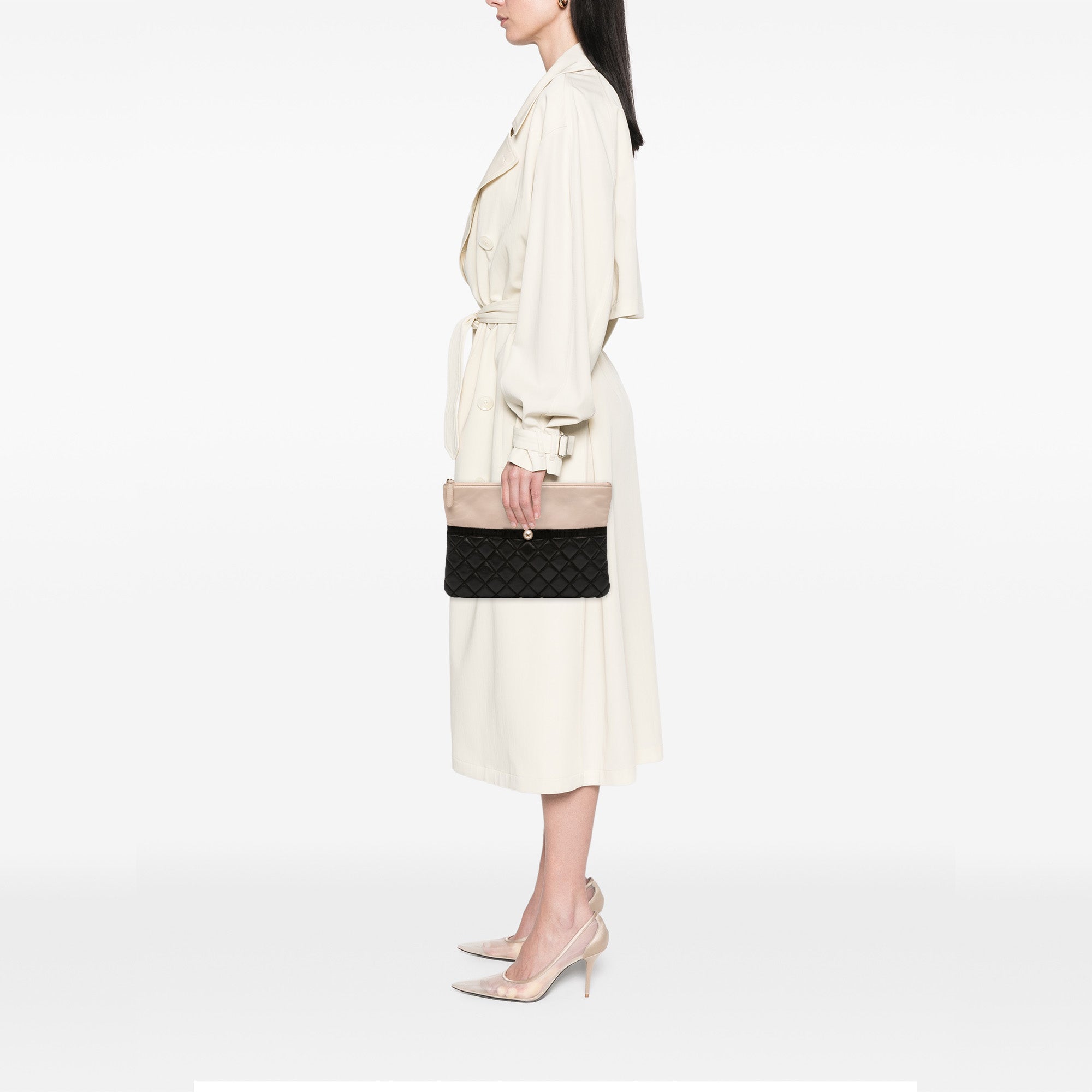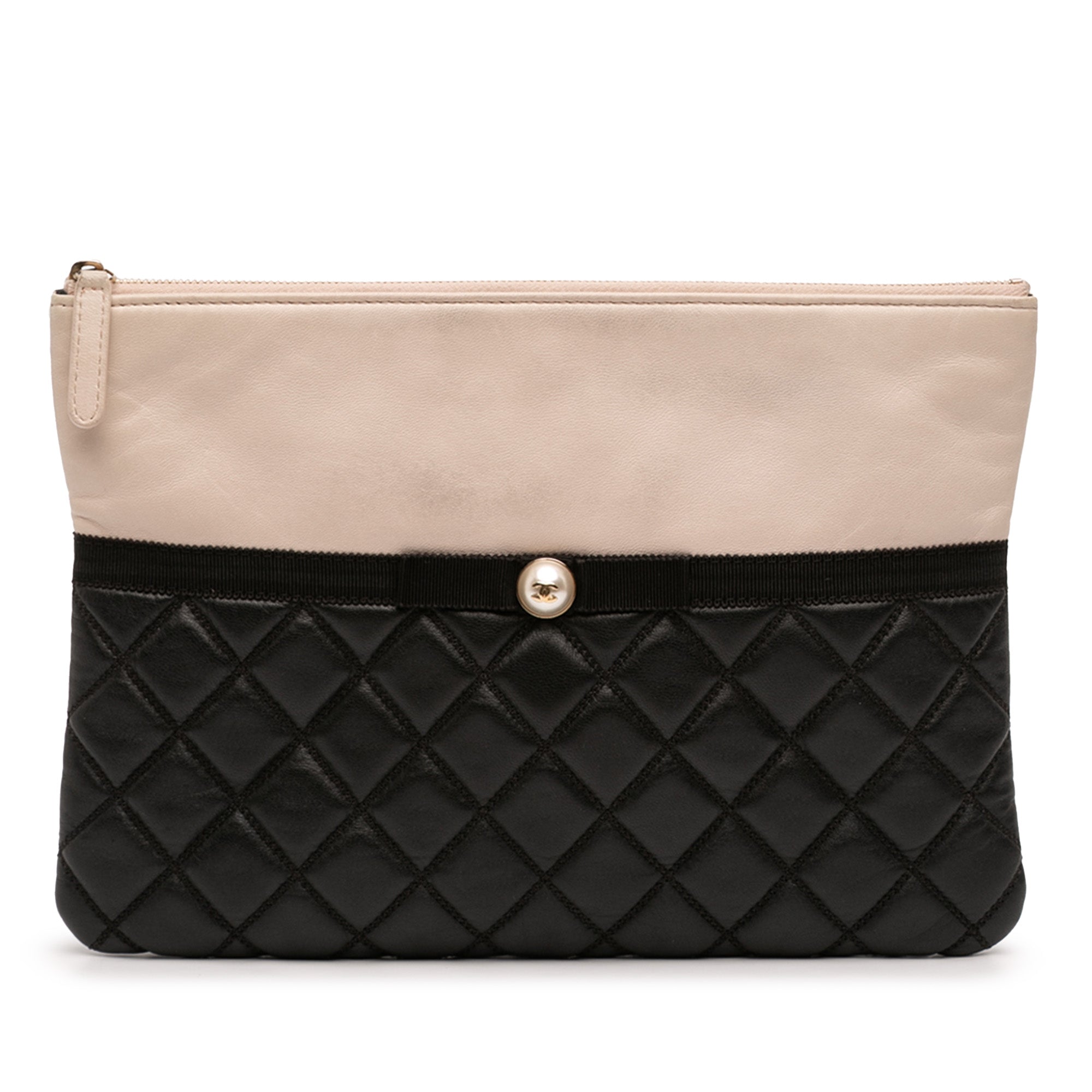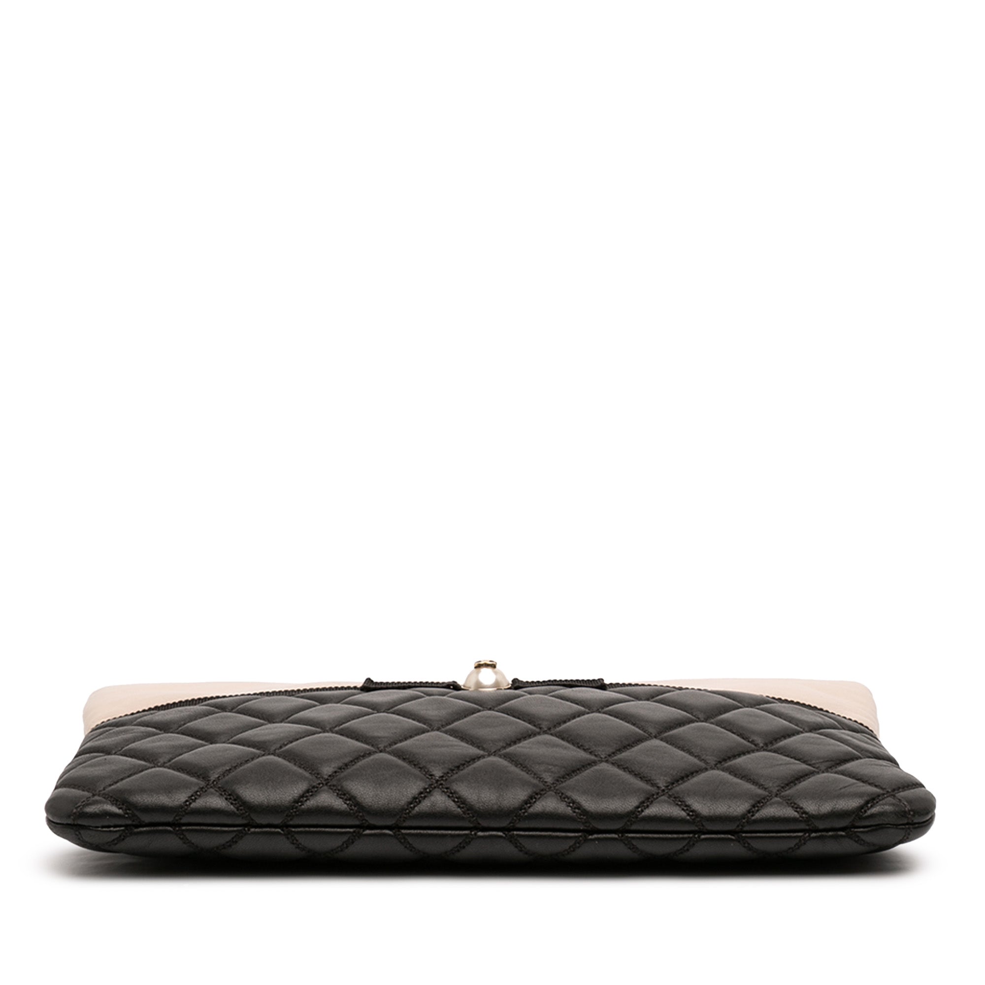 Black Chanel Medium Quilted Lambskin and Calfskin Pearl O Case Clutch