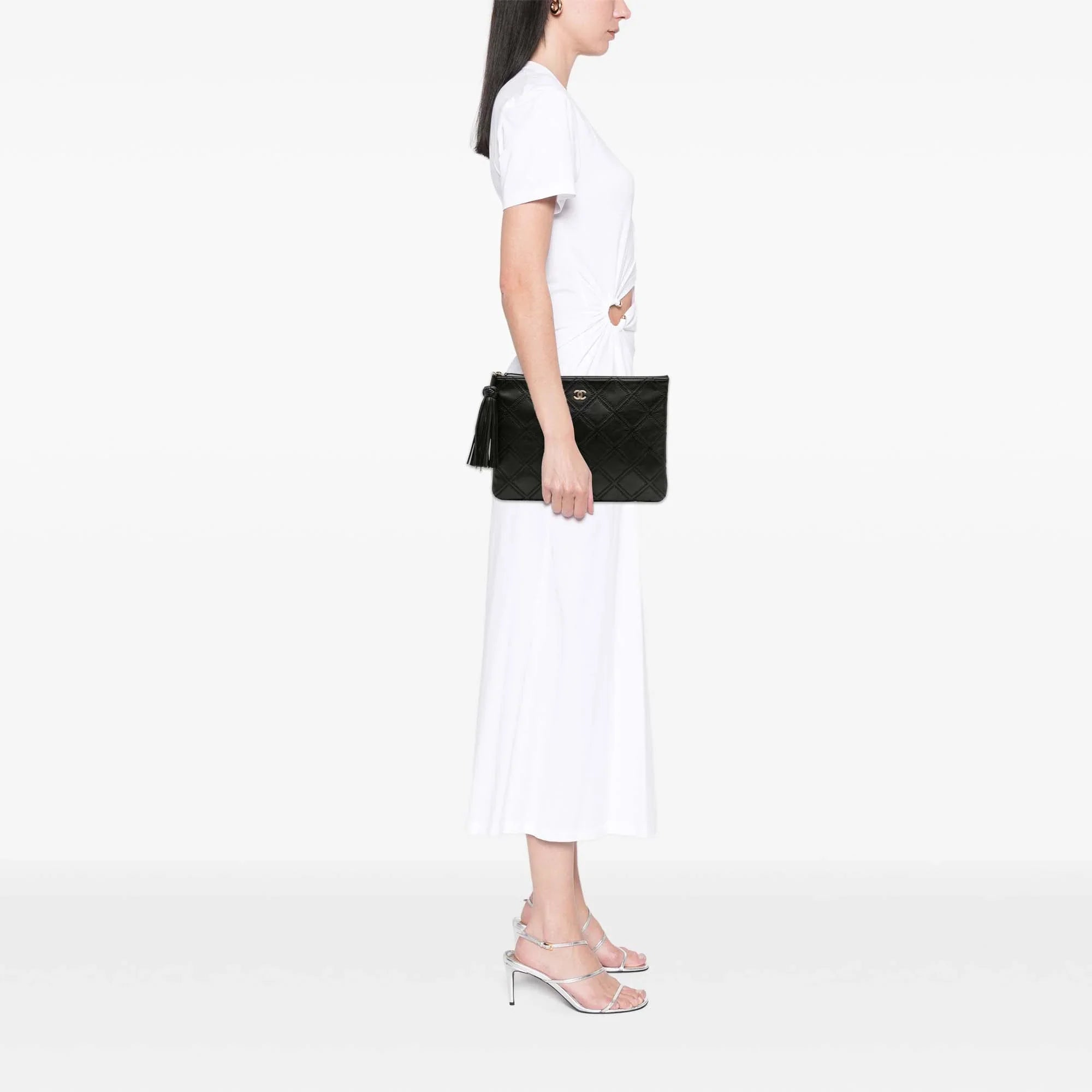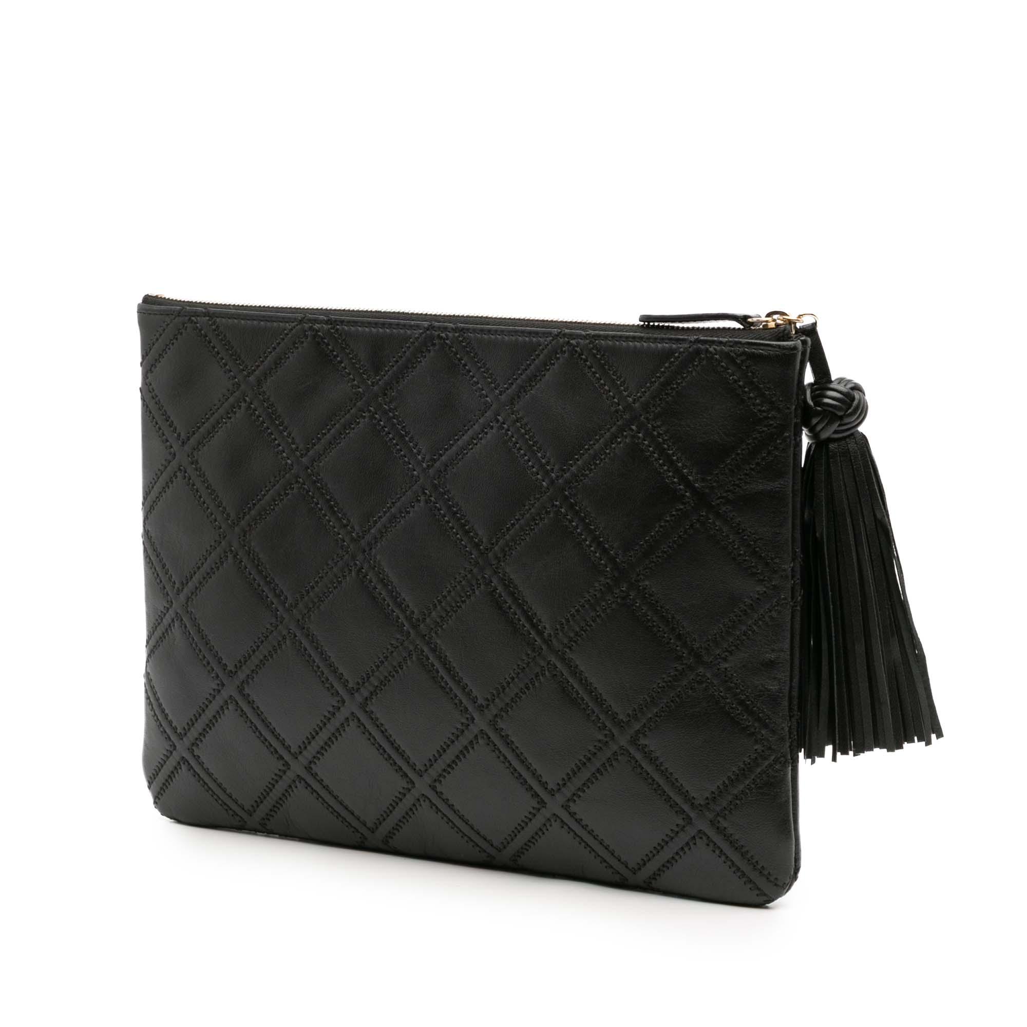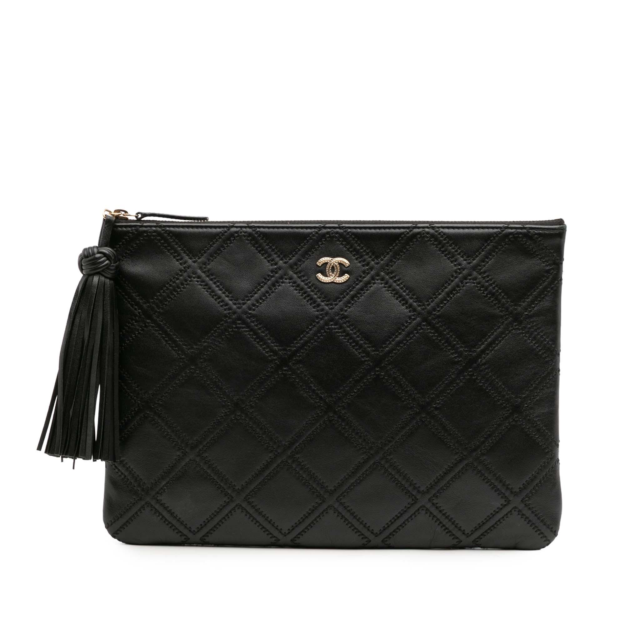 Black Chanel Medium Quilted Lambskin Double Stitch Tassel O Case Clutch - Designer Revival Black Chanel Medium Quilted Lambskin Double Stitch Tassel O Case Clutch - Designer Revival