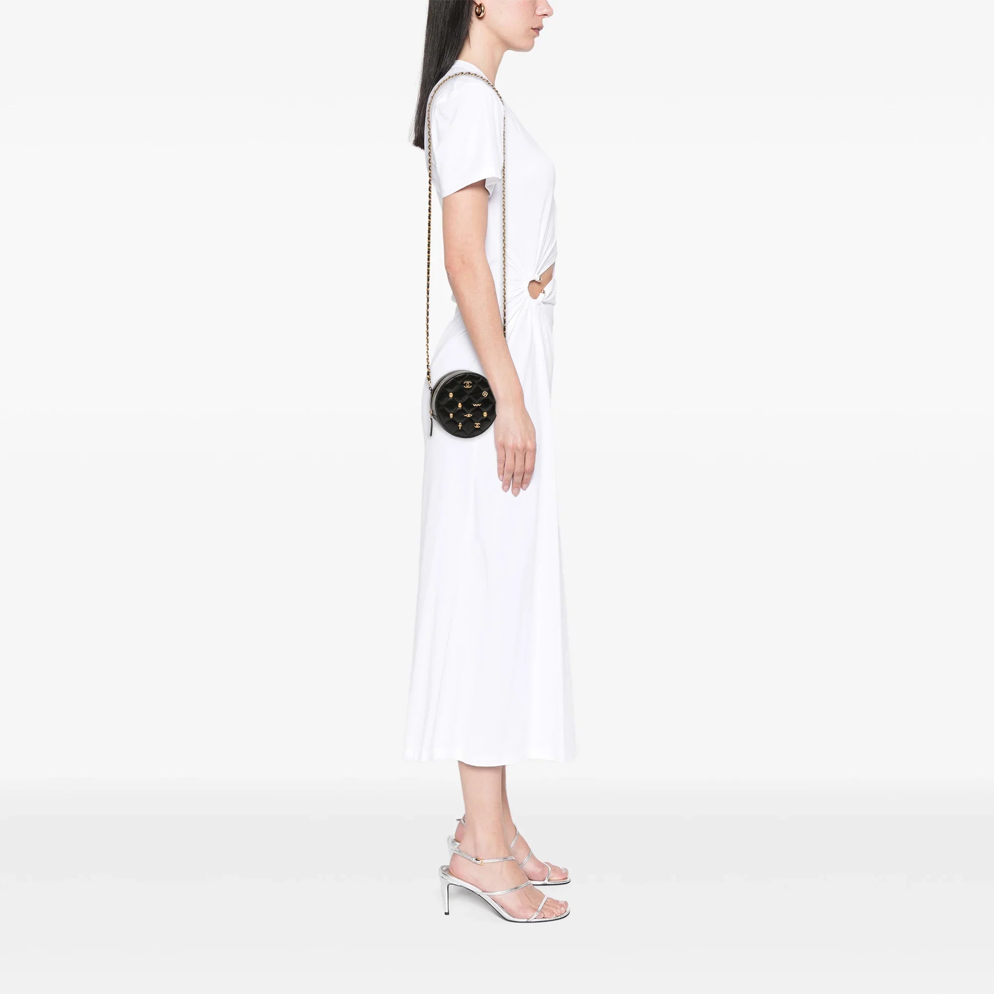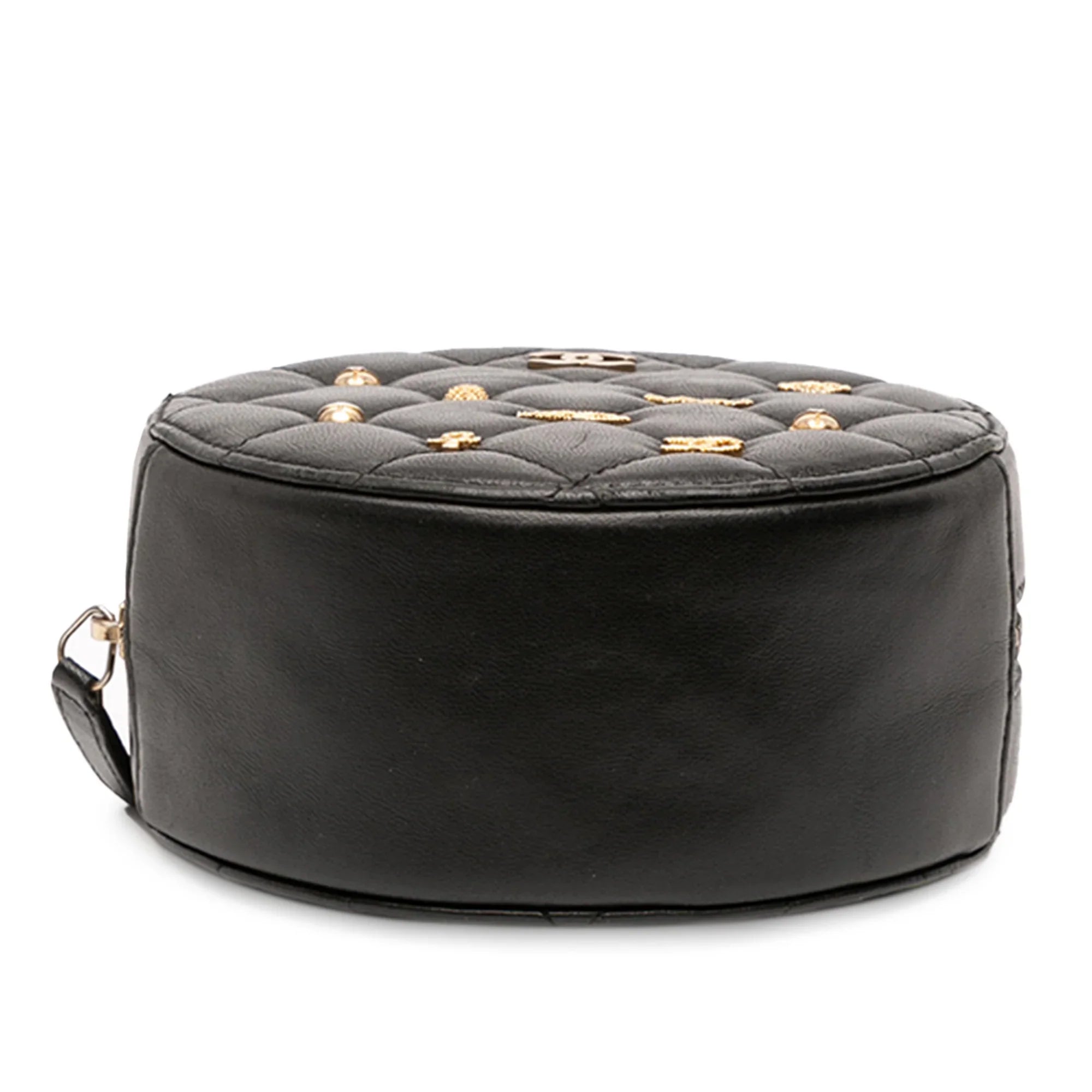 Black Chanel Quilted Lambskin Egyptian Amulet Charms Round Clutch with Chain Crossbody Bag