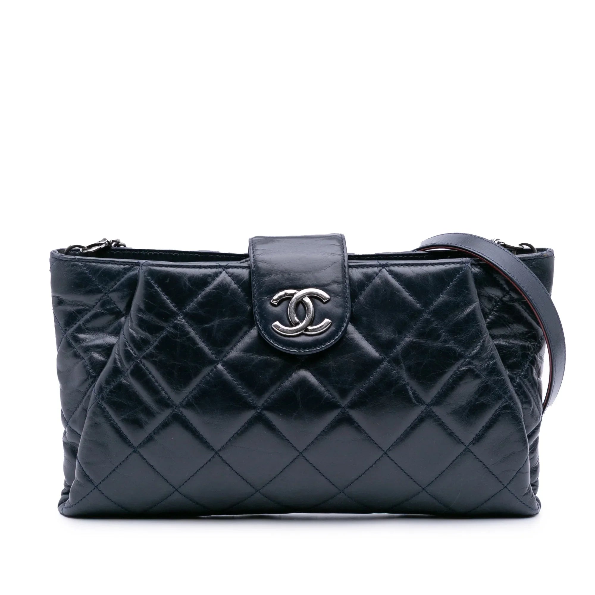 Blue Chanel Quilted Glazed Calfskin Coco Pleats Clutch With Chain Crossbody Bag