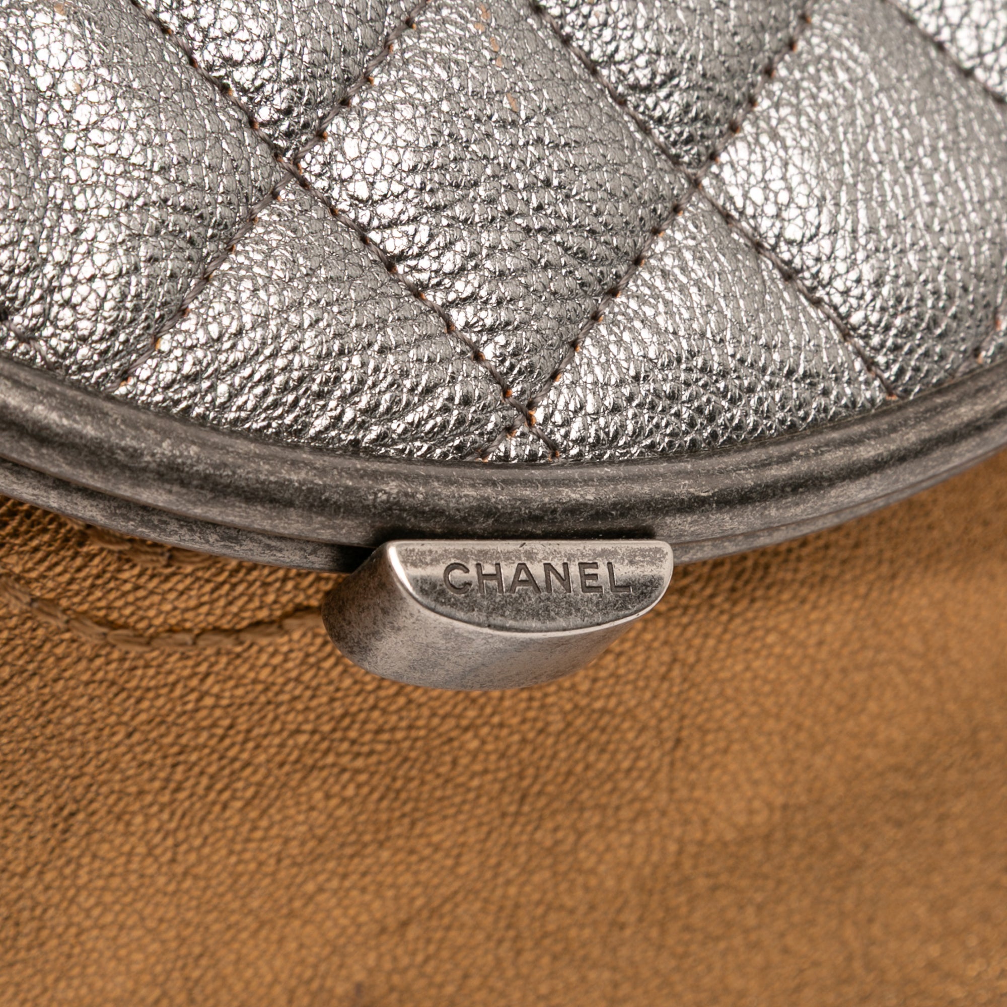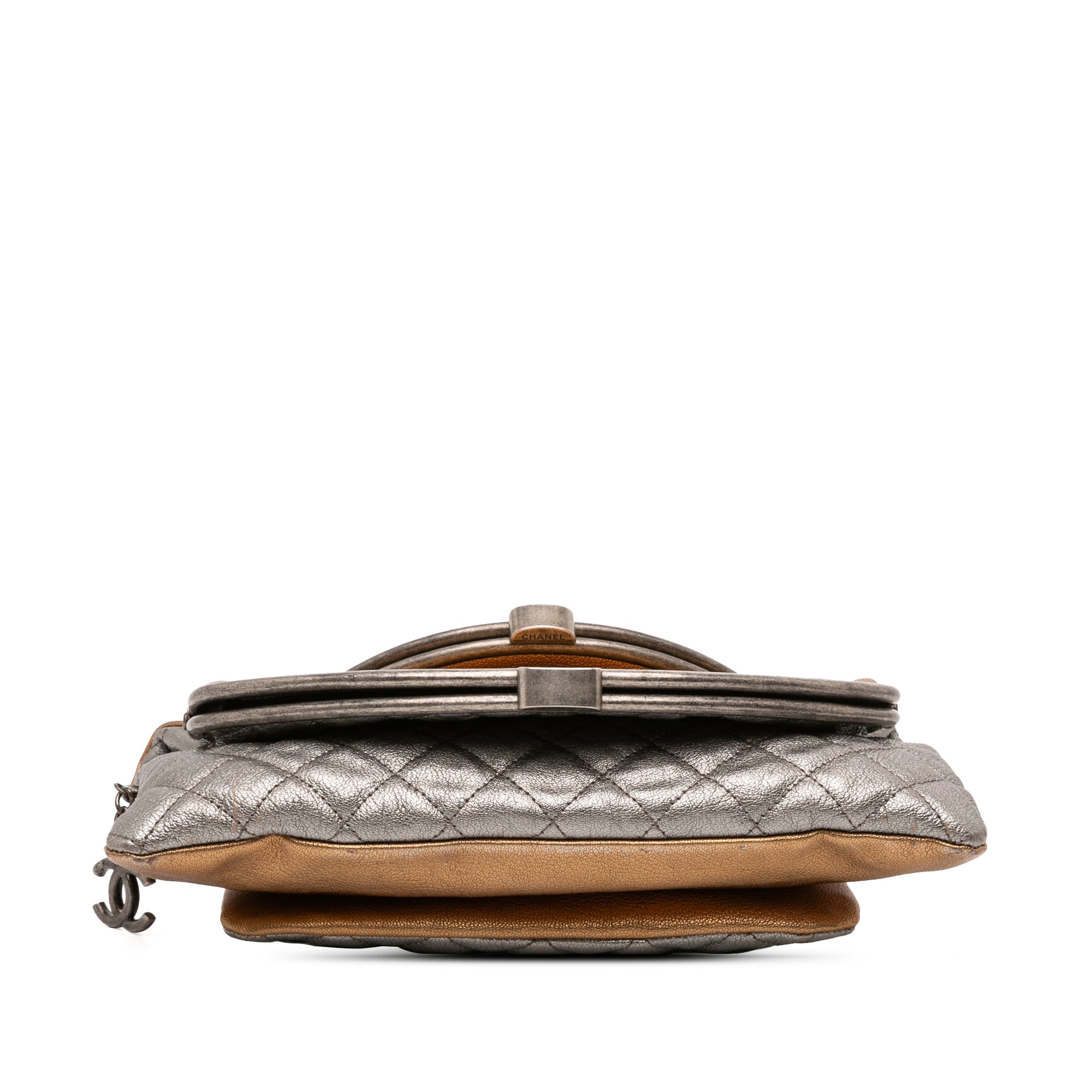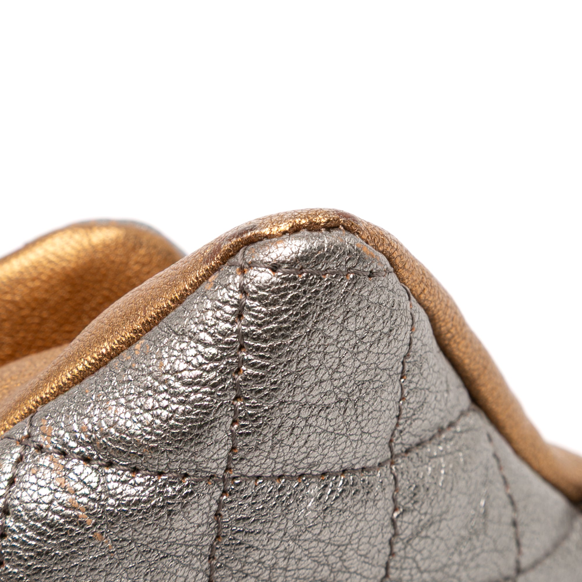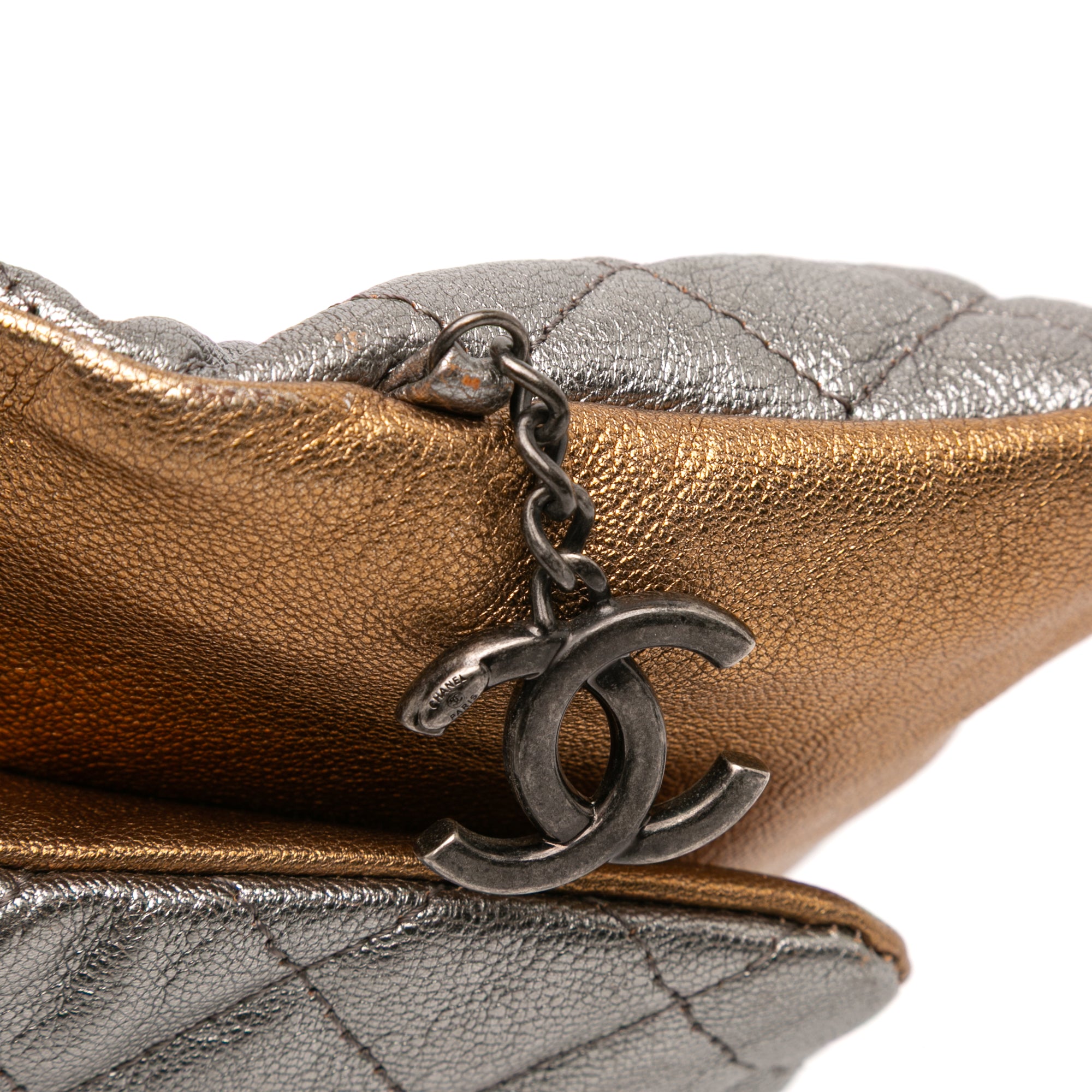 Silver Chanel Quilted Metallic Goatskin Tabatiere Kisslock Foldover Clutch