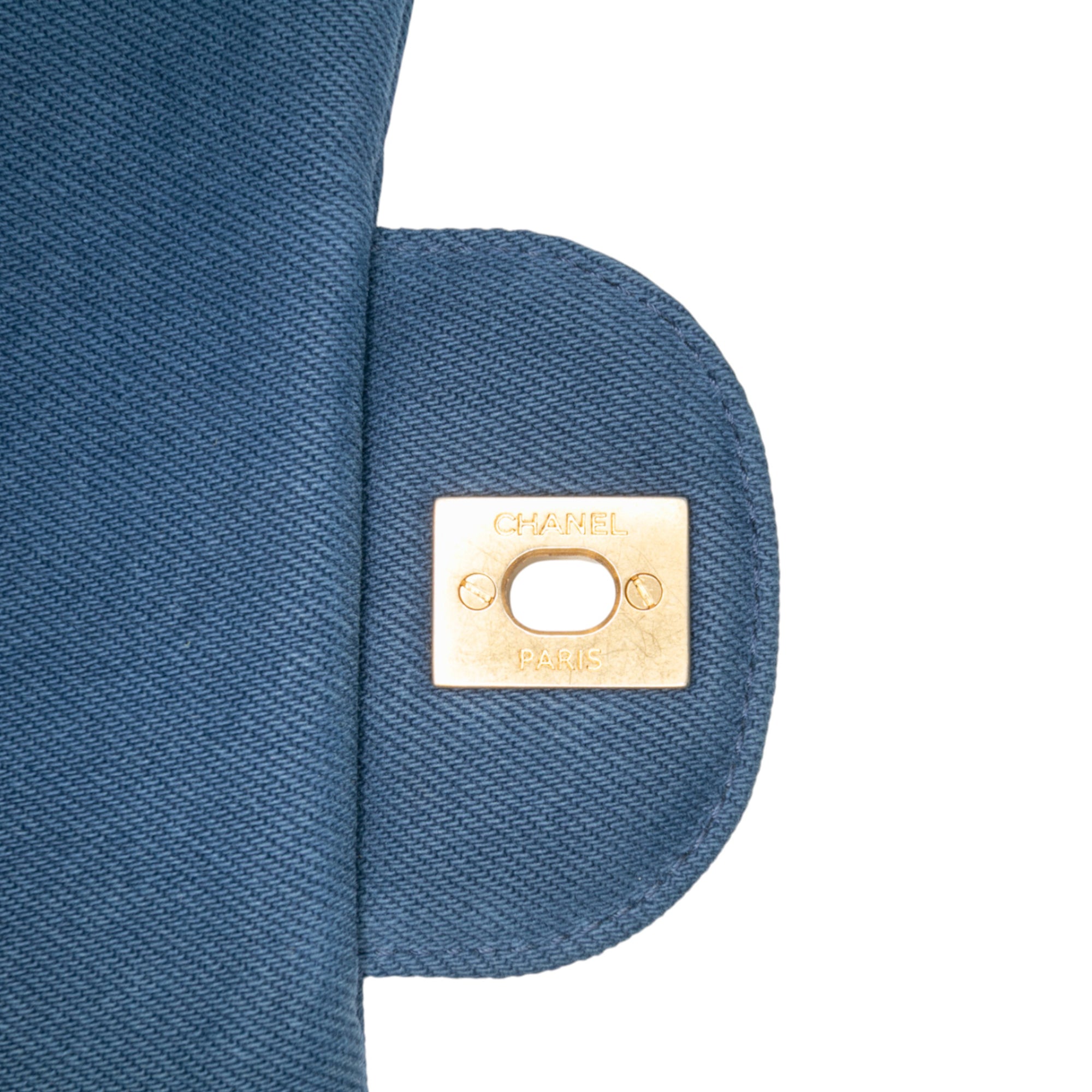 Blue Chanel Jumbo Chevron Denim Fringe Coco Flap Crossbody Bag