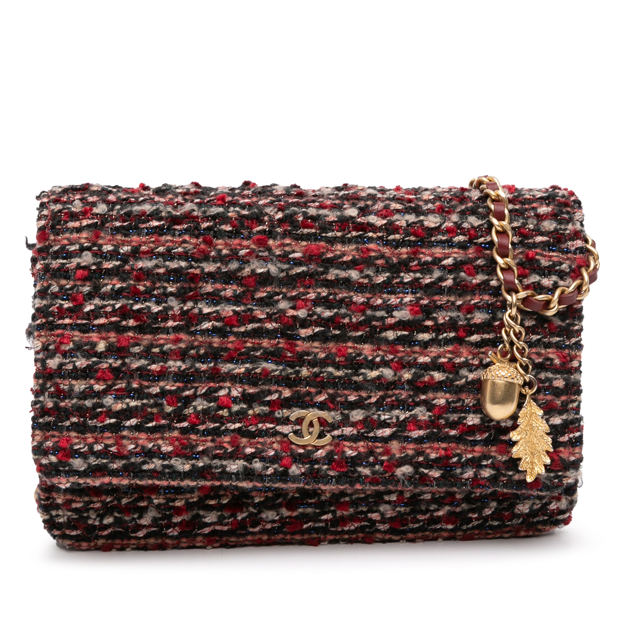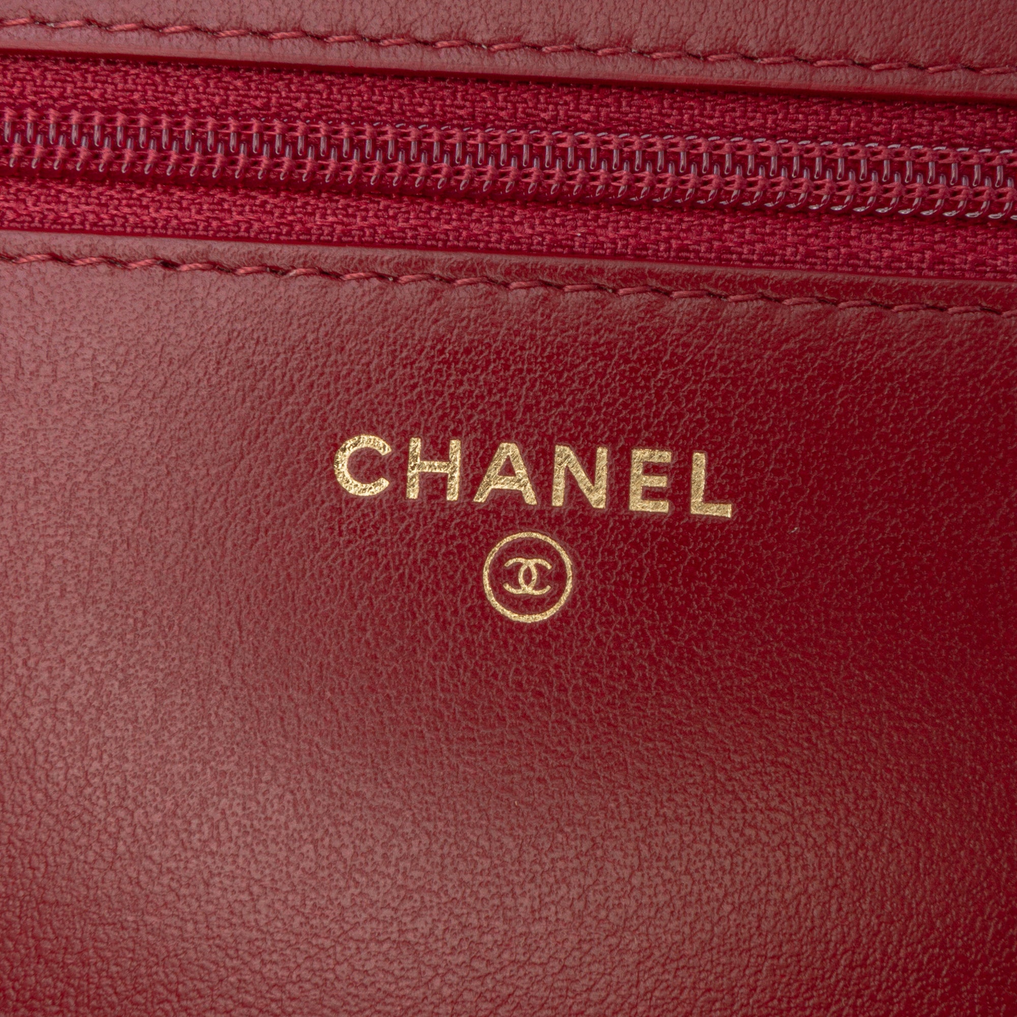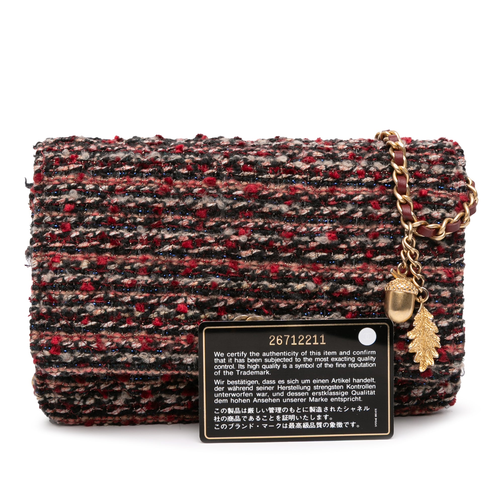 Red Chanel CC Quilted Tweed Wallet On Chain Crossbody Bag