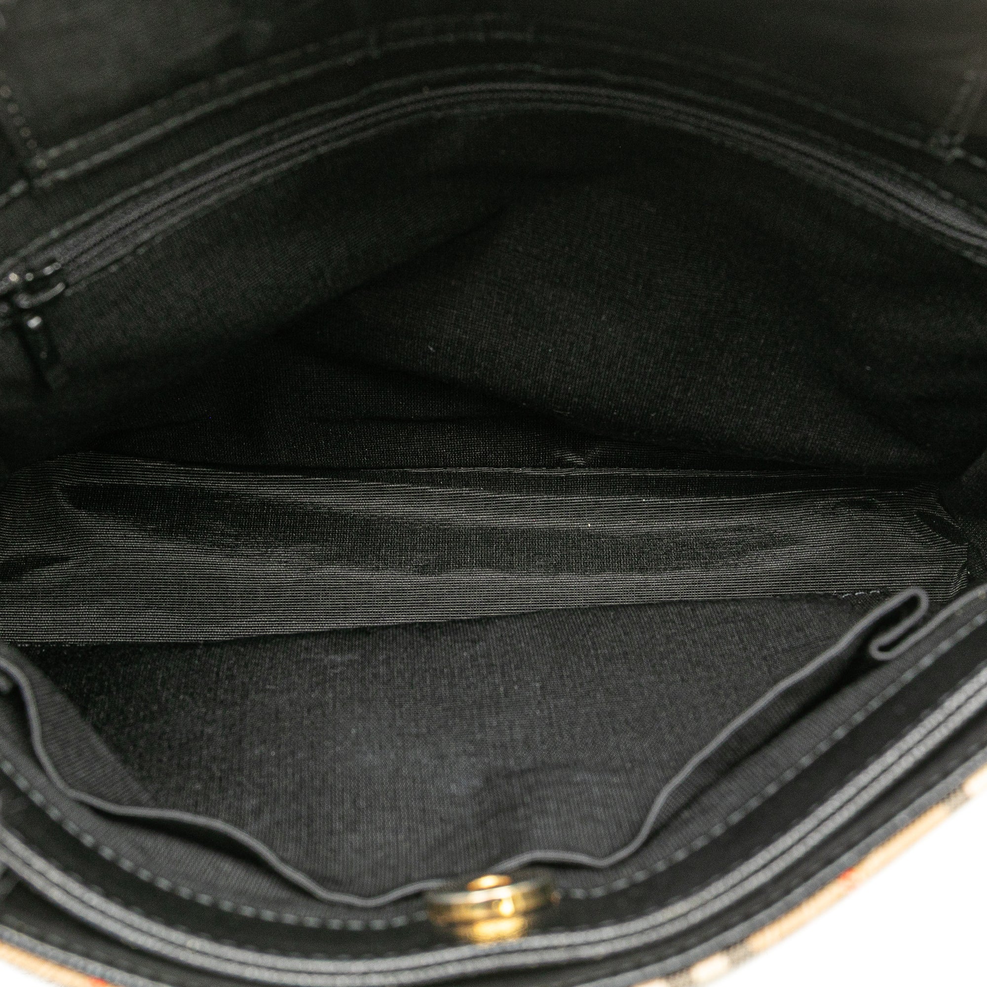 Condition: Pre-owned. Good. Exterior Back stained with Other. Exterior Bottom Scratched. Exterior Bottom stained with Other. Lock Rusty/Tarnished, Scratched. Embellishment Scratched. Exterior Front stained with Other. Exterior Handle Creased, Scratched. Interior Pocket stained with Other. Interior Lining stained with Other. Item has an odor of Musty. Exterior Top Worn. Zipper Scratched.