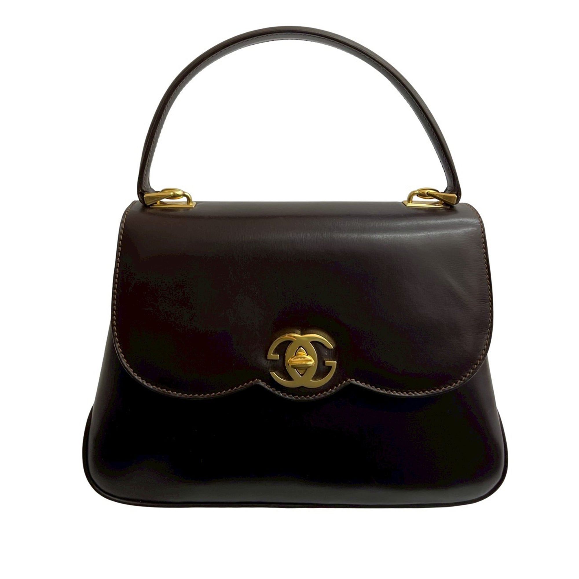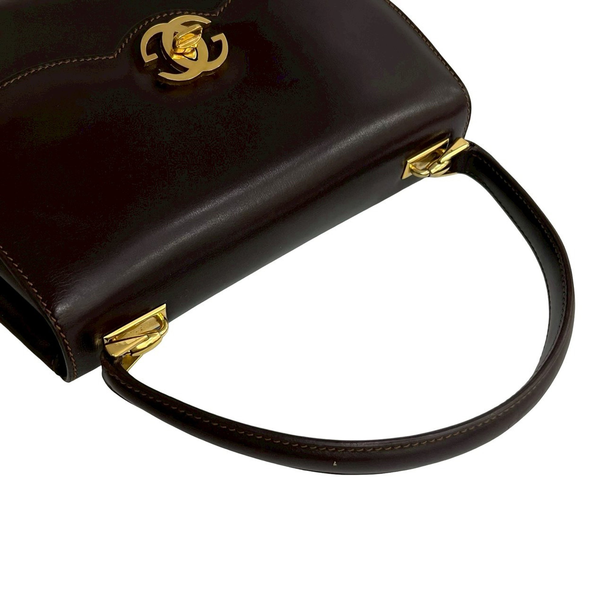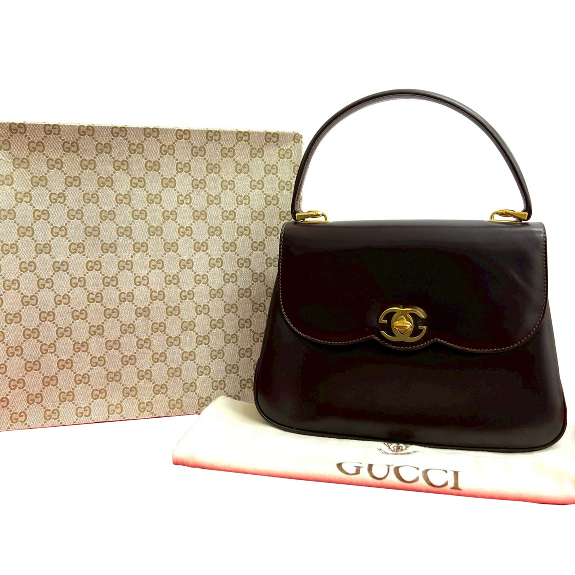 Brown Gucci Leather Turnlock Top Handle Bag Satchel