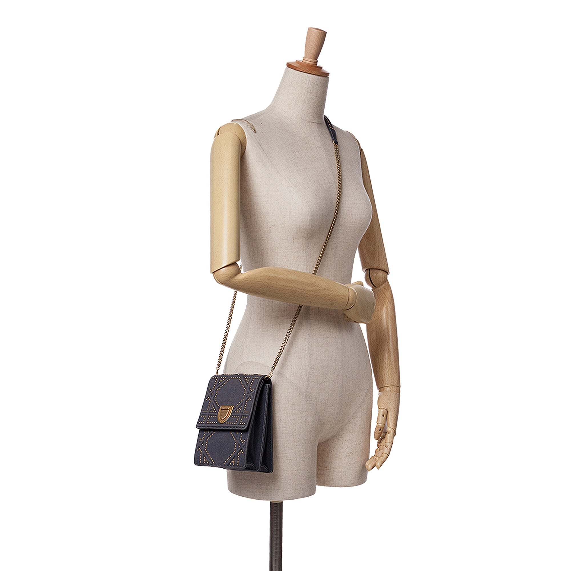 Gray Dior Studded Denim Vertical Diorama Crossbody