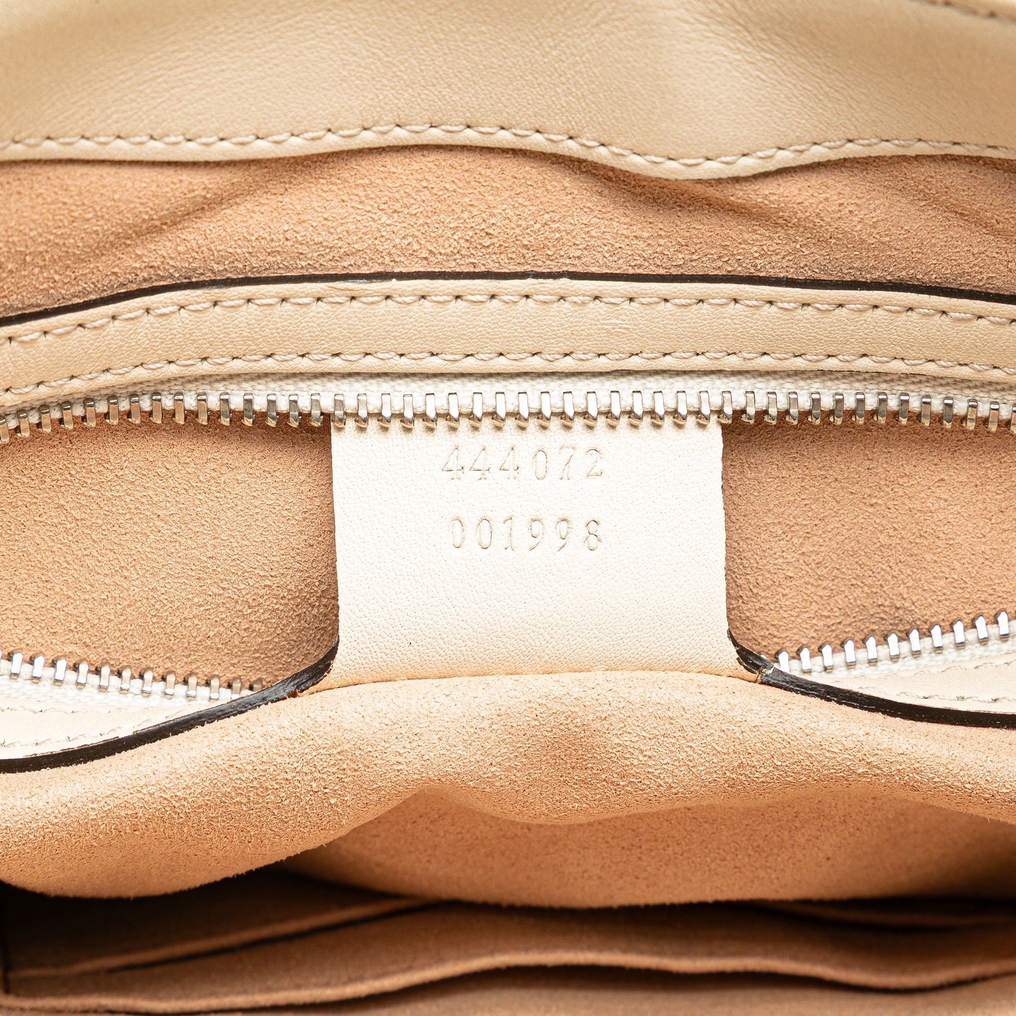 Please note this is a pre-owned item that may display signs of wear consistent with the condition listed above and shown in photos. Designer Revival guarantees this is an authentic White Gucci Quilted Leather Dionysus Web Hobo Satchel or 100% of your money back. Learn more about our authentication process.