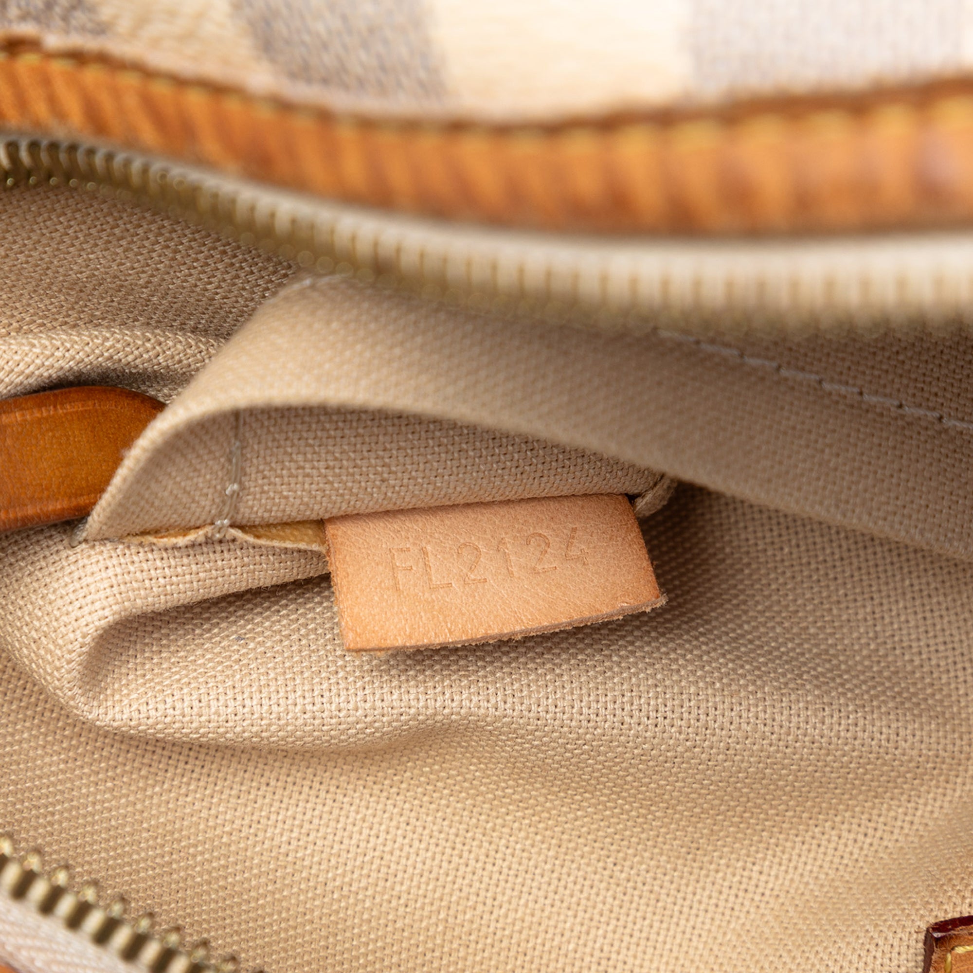 Please note this is a pre-owned item that may display signs of wear consistent with the condition listed above and shown in photos. Designer Revival guarantees this is an authentic White Louis Vuitton Damier Azur Riviera PM Satchel or 100% of your money back. Learn more about our authentication process.