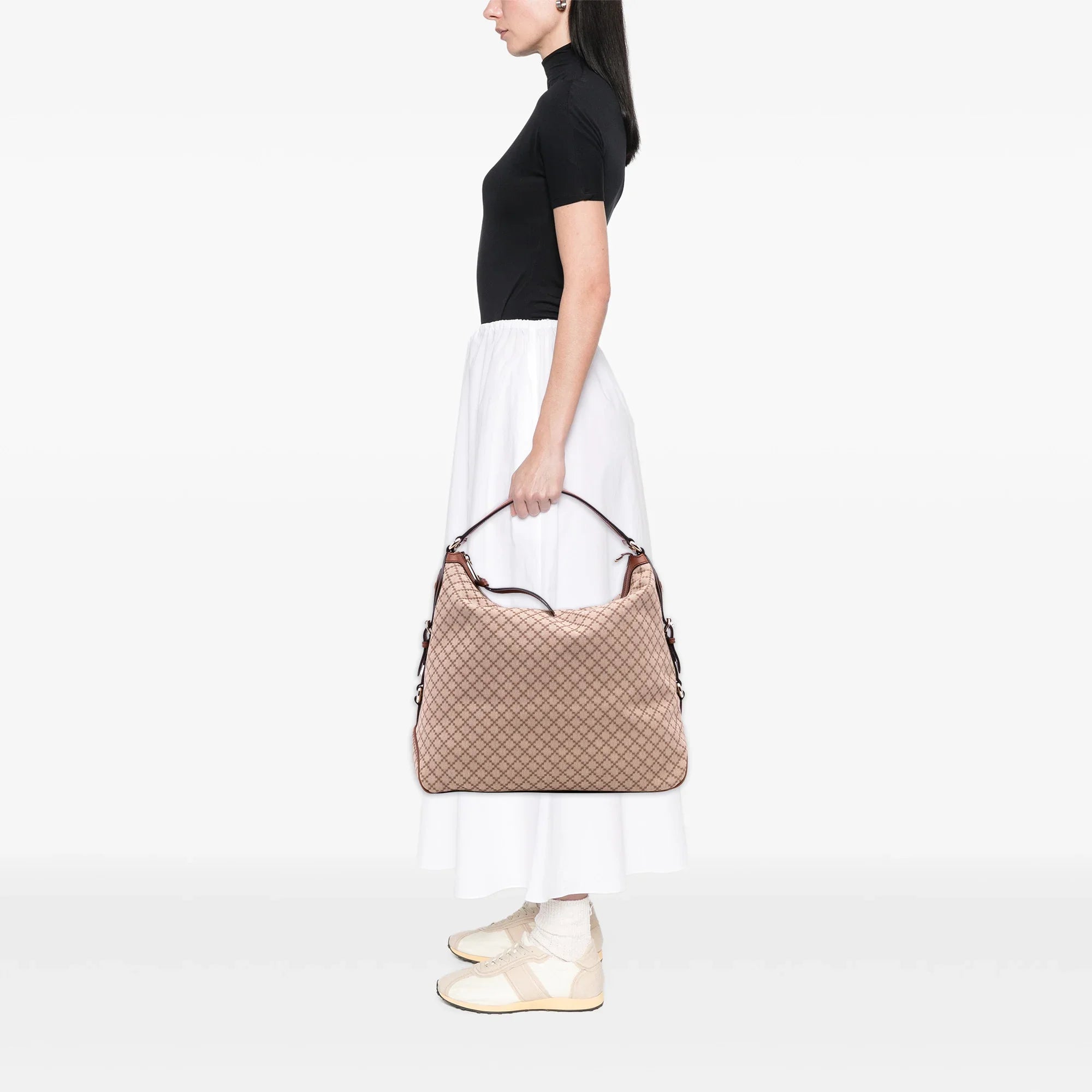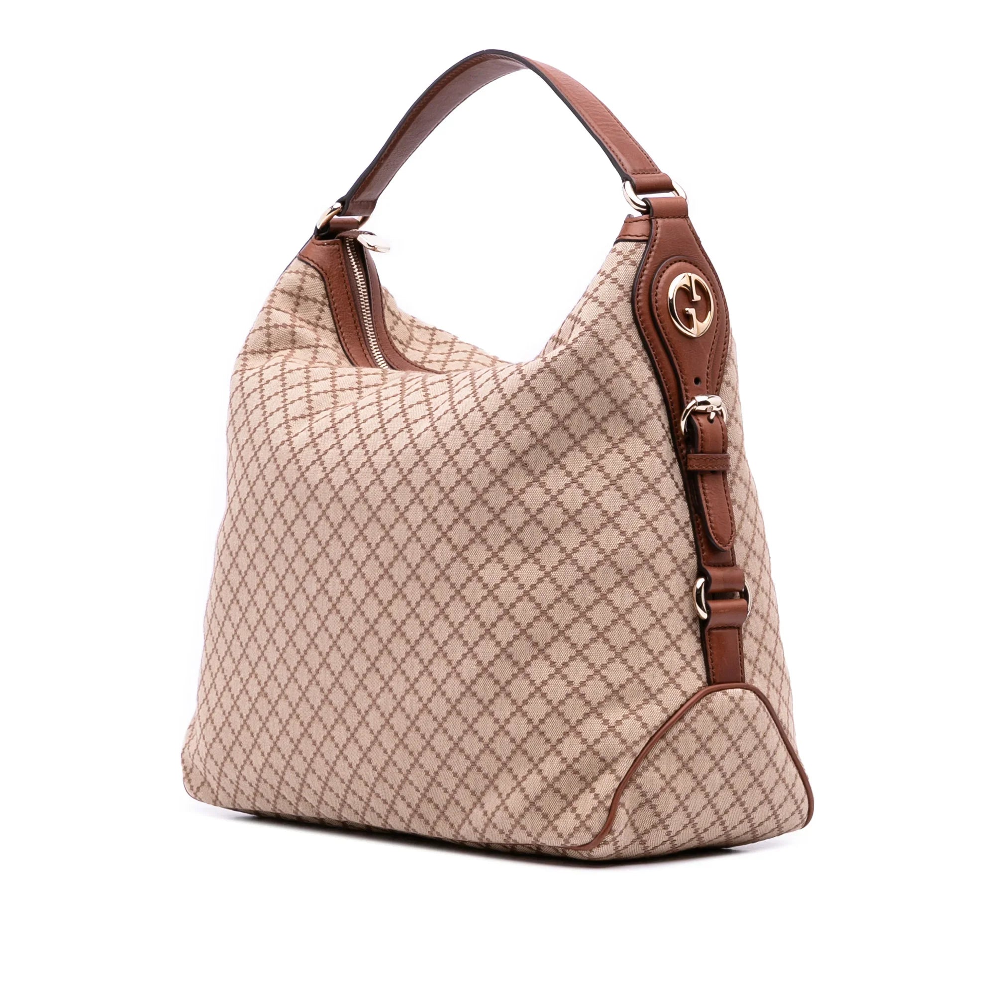 Brown Gucci Diamante Canvas Village Double G Shoulder Bag - Designer Revival Brown Gucci Diamante Canvas Village Double G Shoulder Bag - Designer Revival