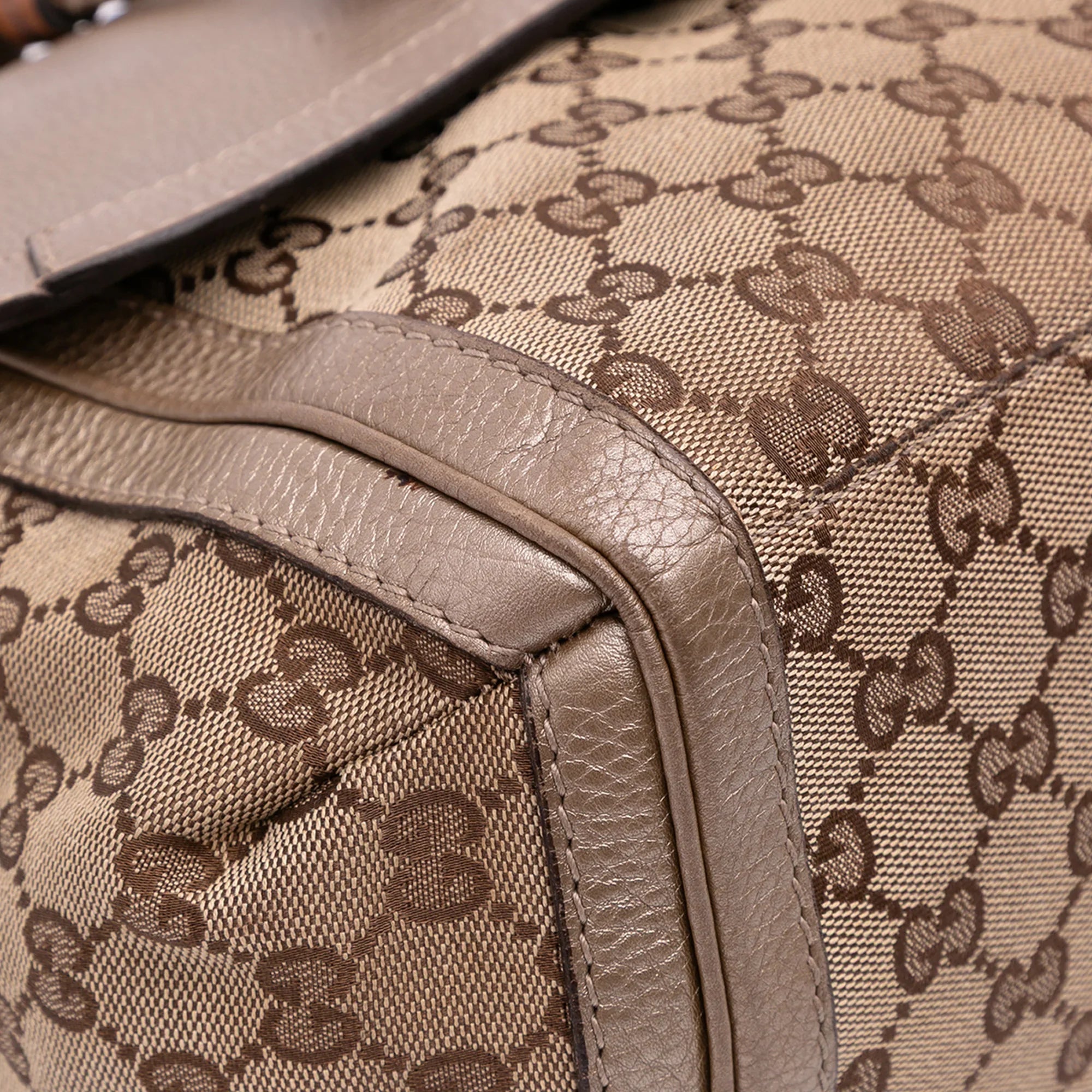 Brown Gucci GG Canvas Bella Flap Satchel - Designer Revival Brown Gucci GG Canvas Bella Flap Satchel - Designer Revival