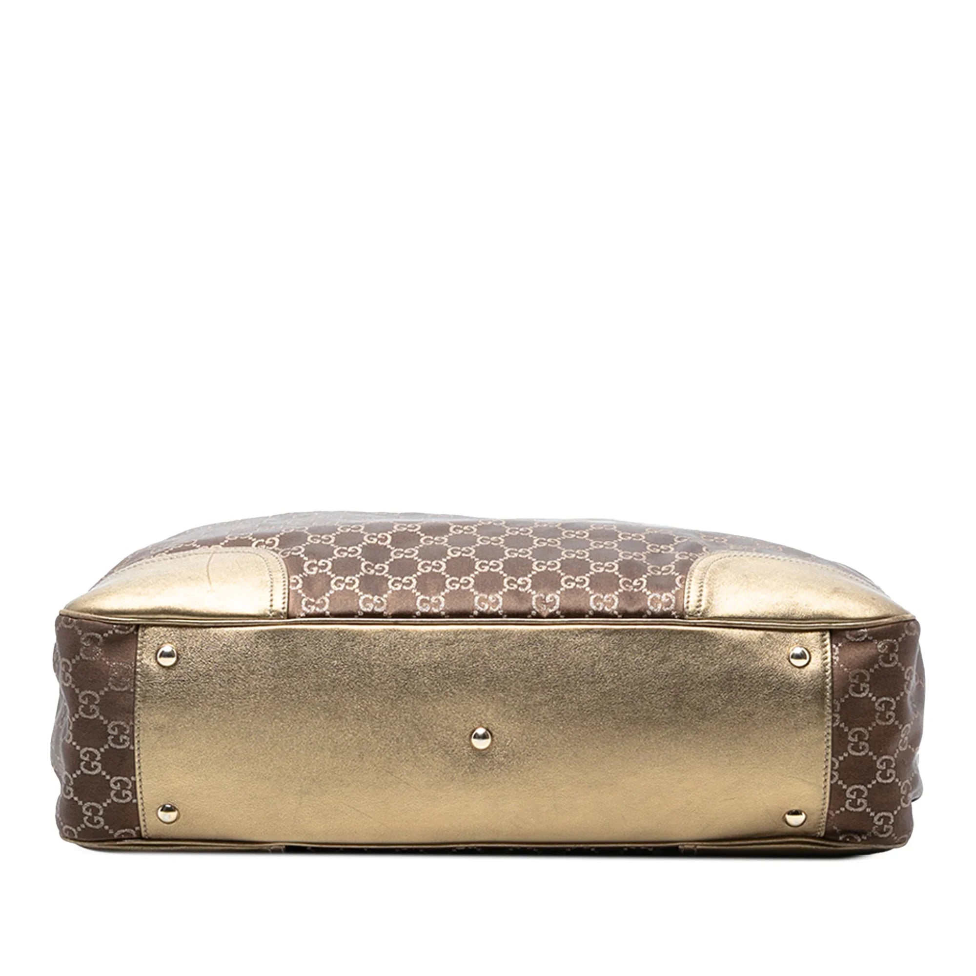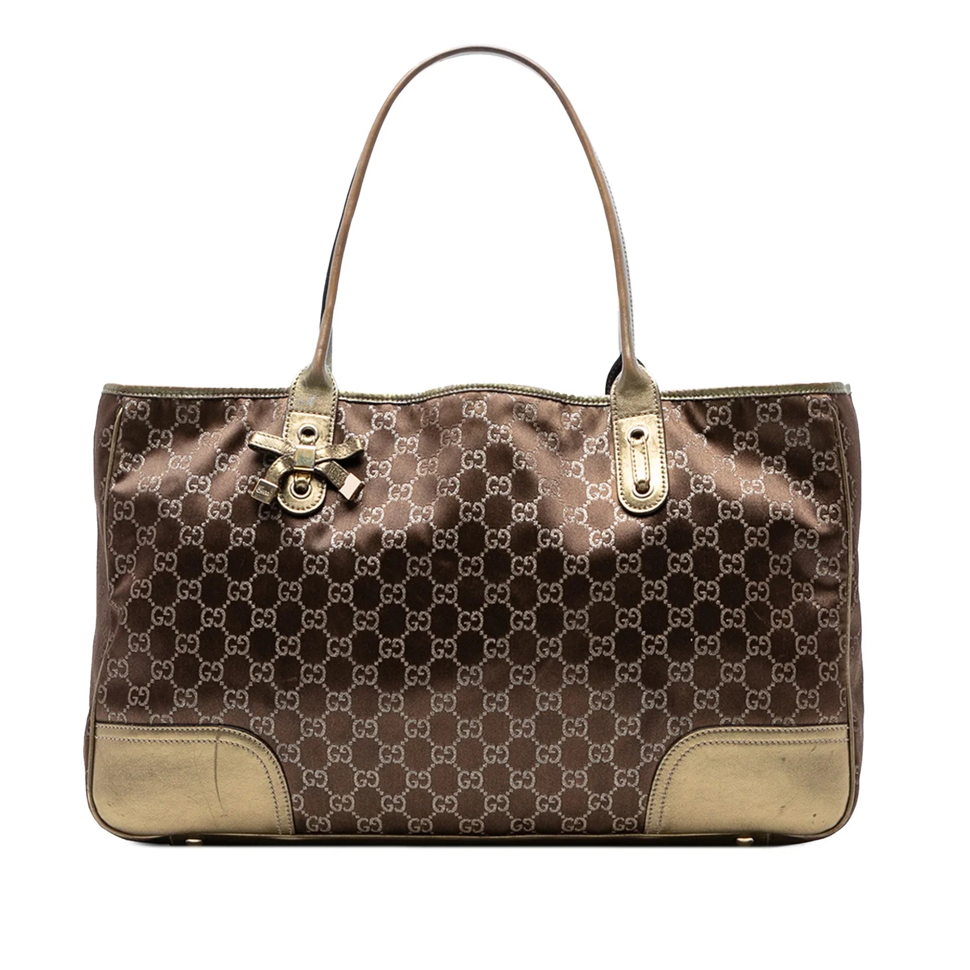 Please note this is a pre-owned item that may display signs of wear consistent with the condition listed above and shown in photos. Designer Revival guarantees this is an authentic Gold Gucci GG Satin Princy Tote or 100% of your money back. Learn more about our authentication process.