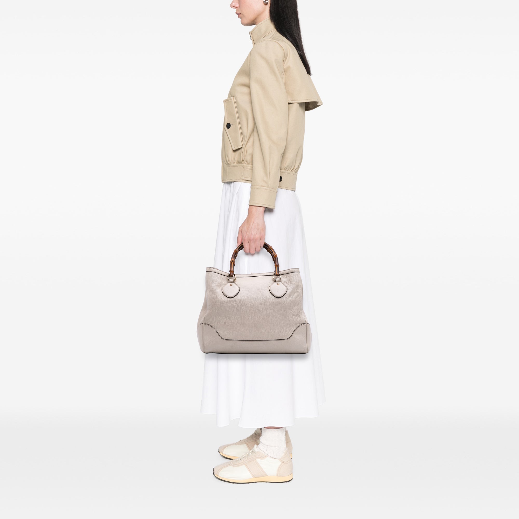 White Gucci Medium Leather Bamboo Diana Tote - Designer Revival White Gucci Medium Leather Bamboo Diana Tote - Designer Revival