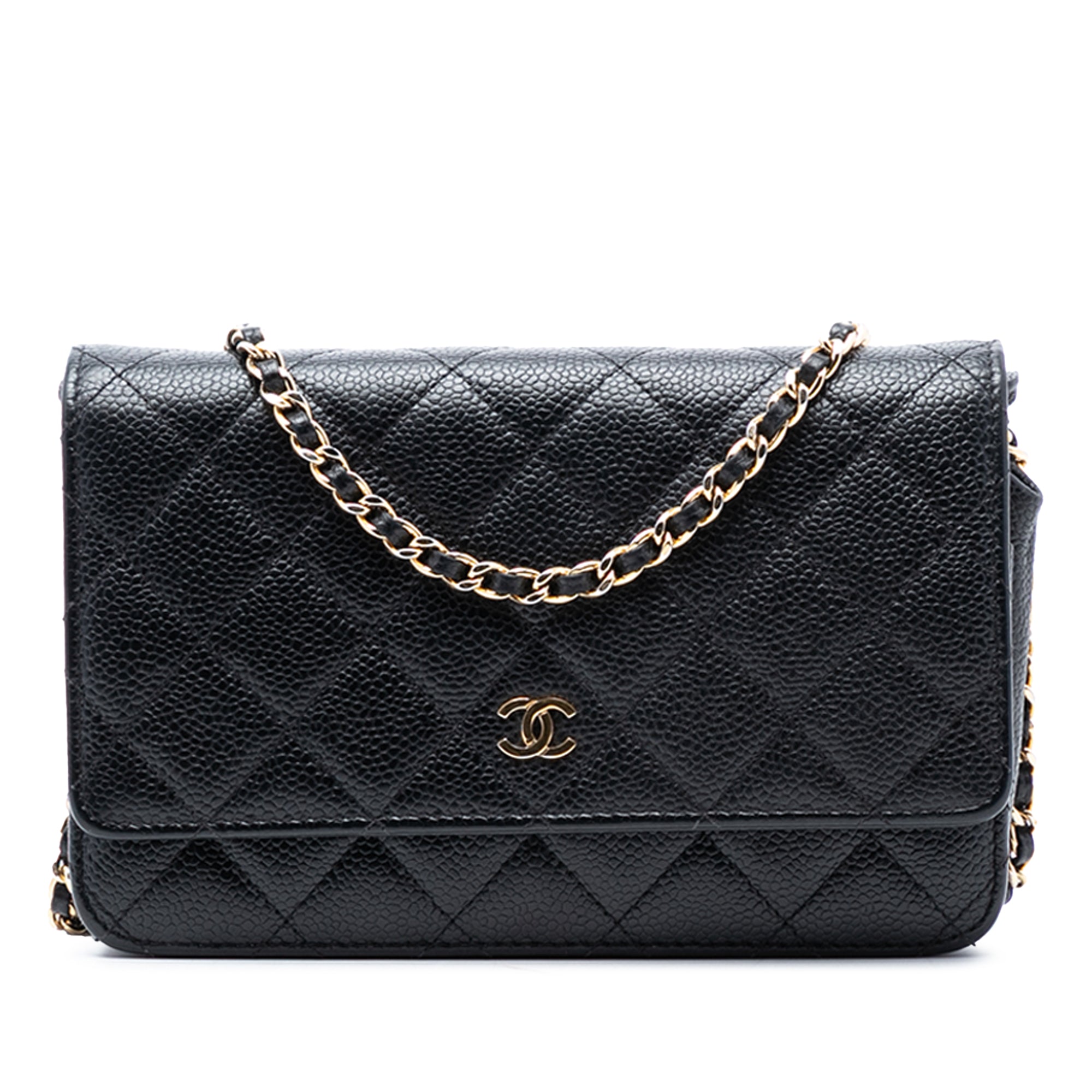 Black Chanel CC Quilted Caviar Wallet on Chain Crossbody Bag