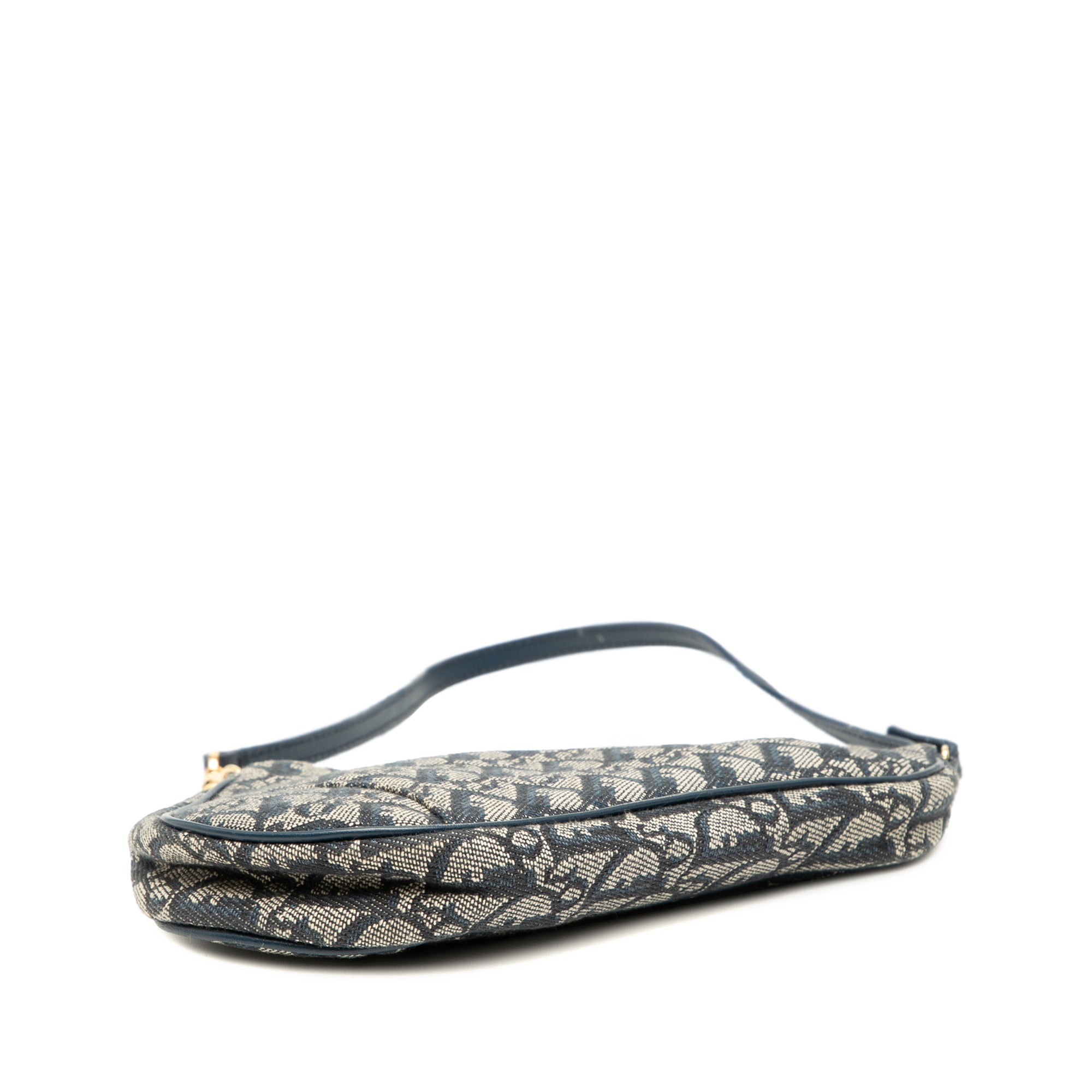Blue Dior Mini Diorissimo Canvas Saddle Pochette Shoulder Bag