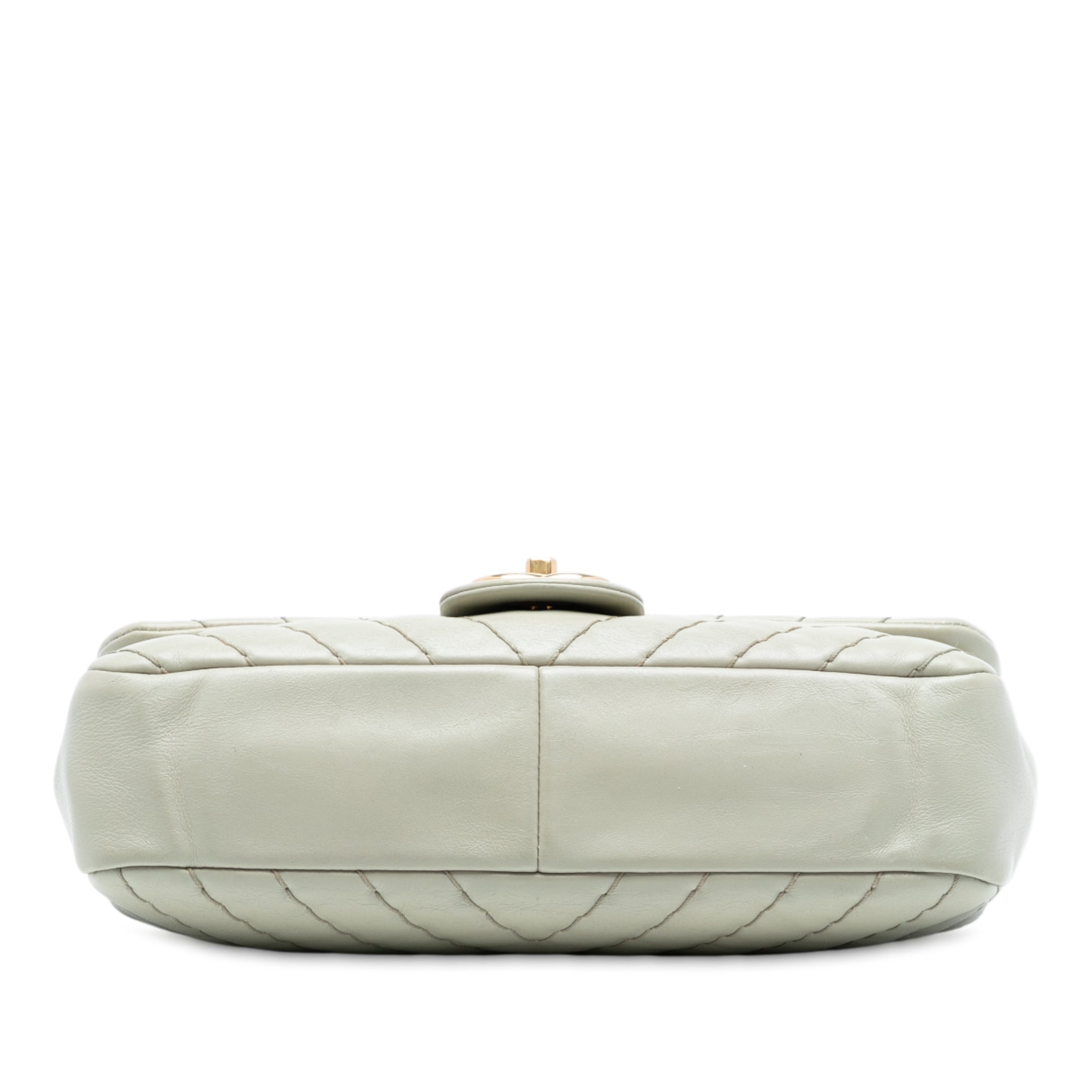 Green Chanel Medium Double Stitch Chevron Lambskin Single Flap Crossbody Bag