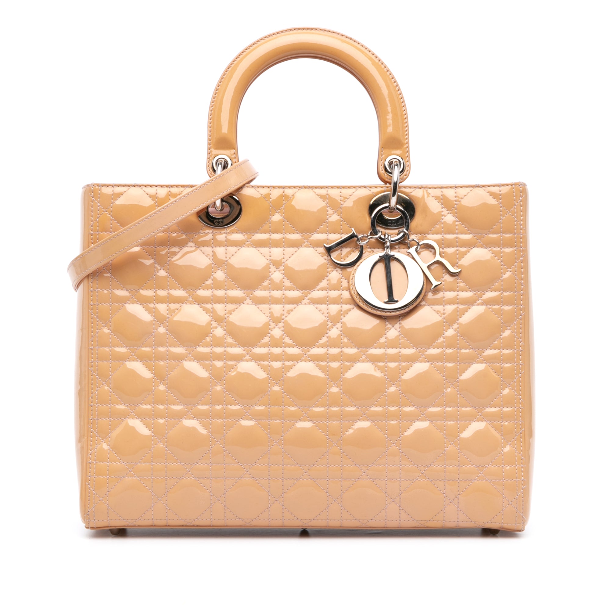 Please note this is a pre-owned item that may display signs of wear consistent with the condition listed above and shown in photos. Designer Revival guarantees this is an authentic TAN Dior Large Patent Cannage Lady Dior Satchel or 100% of your money back. Learn more about our authentication process.