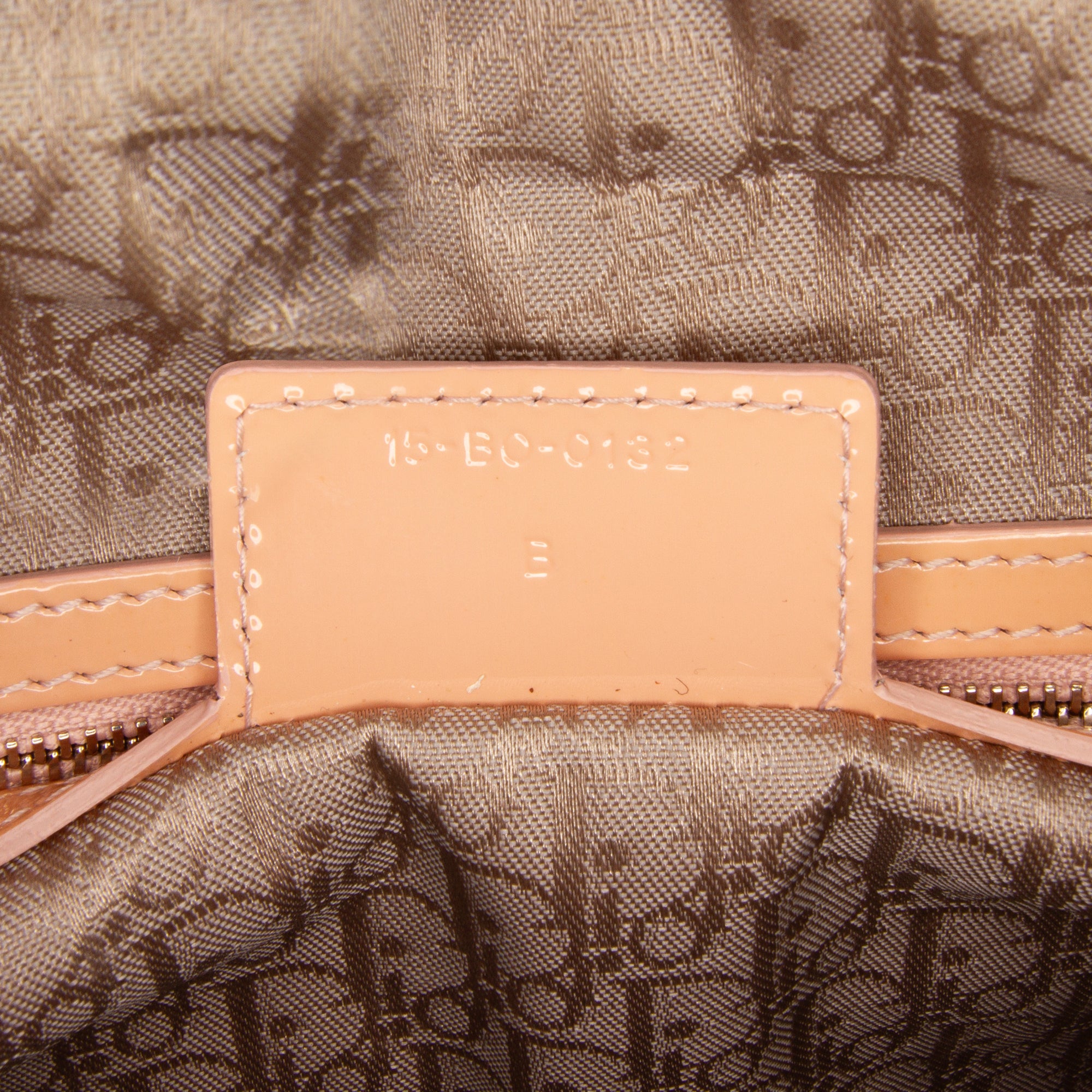 Product Details: TAN Dior Large Patent Cannage Lady Dior Satchel. The Lady Dior features a patent leather body, leather handles, a top zip closure, and an interior zip pocket. 9.8" L x 12.6" W x 4.3" D, 3.9" drop. Serial number 15-BO-0132.