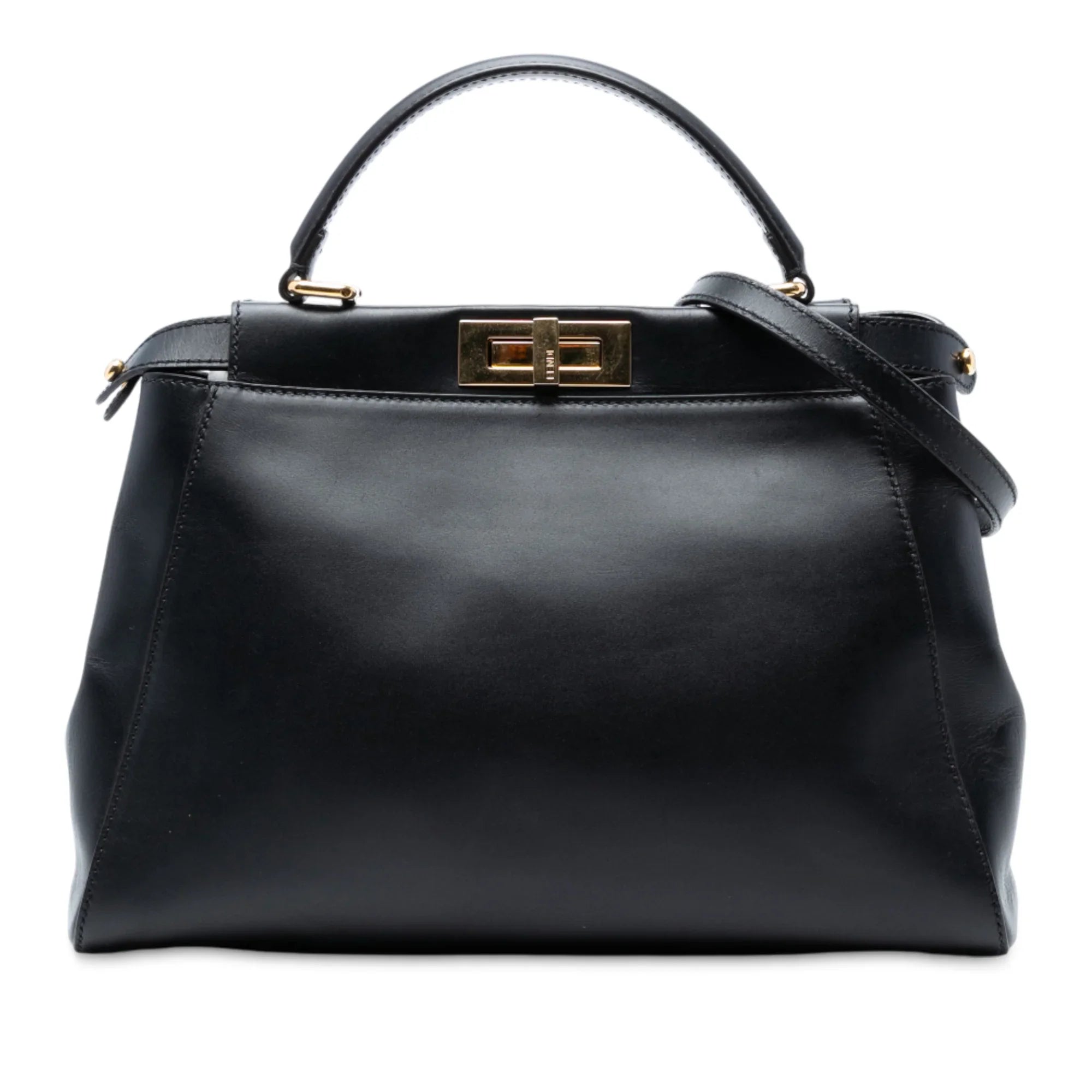Black Fendi Medium Shiny Nappa Peekaboo Iconic Satchel