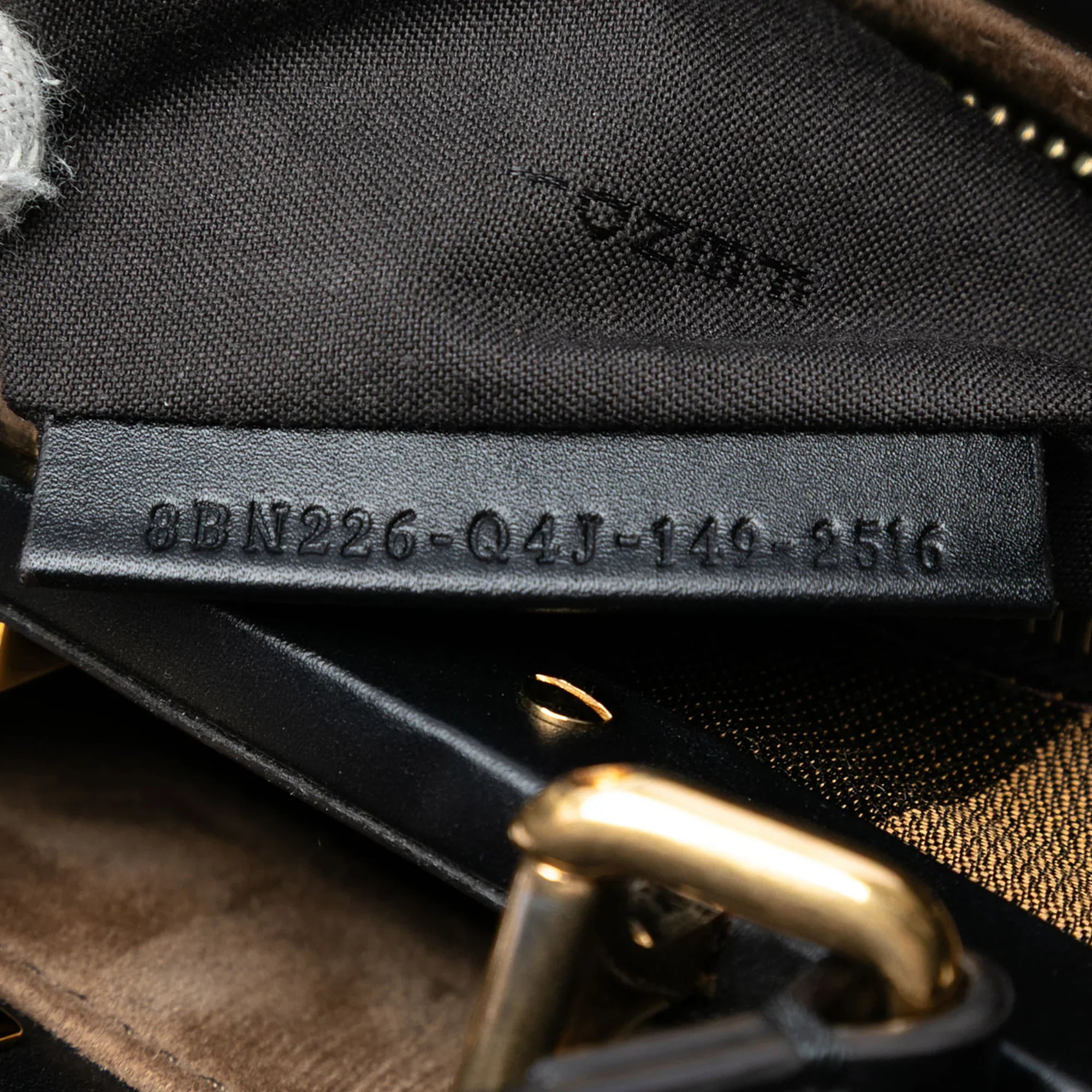 Product Details: Black Fendi Medium Shiny Nappa Peekaboo Iconic Satchel. The Peekaboo Iconic features a leather body, a flat leather handle, a detachable flat leather strap, an open top with twist lock closure, and an interior zip pocket. 9.8" L x 13.4" W x 5.1" D, 4.7" drop. Serial number 8BN226 Q4J 149 2516.