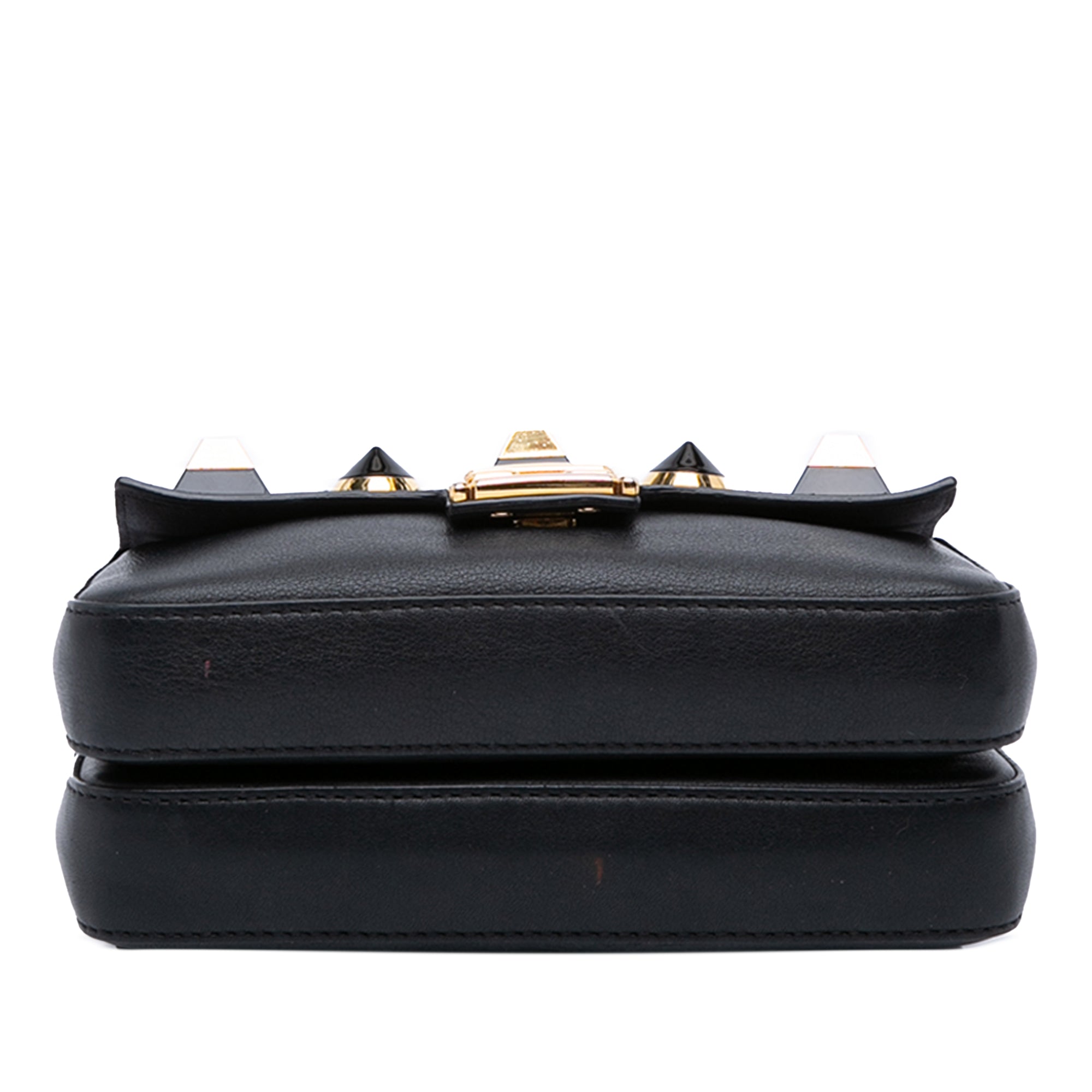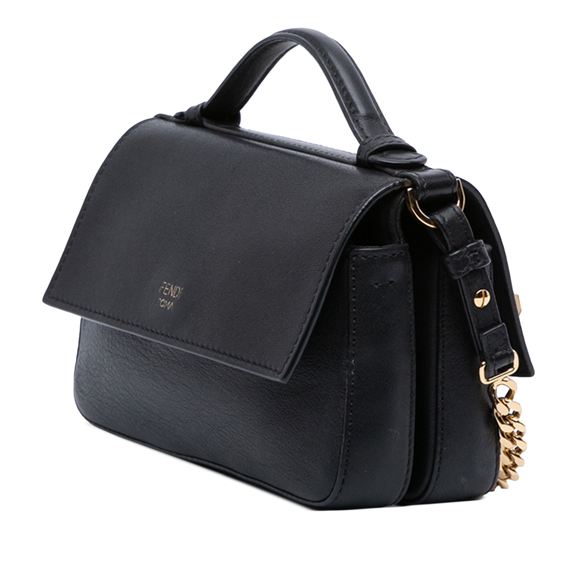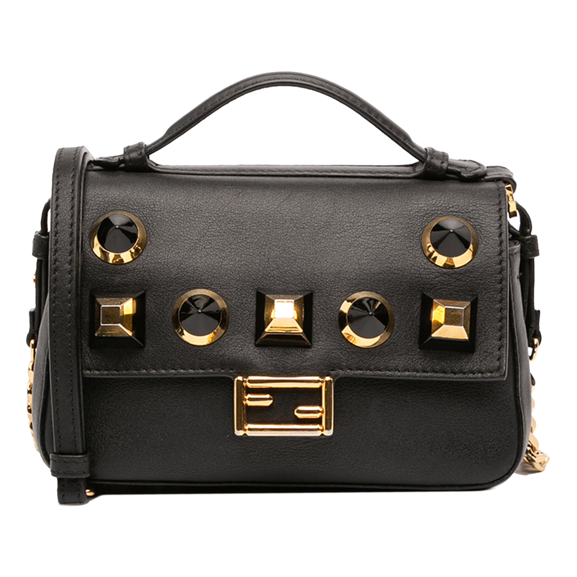 Black Fendi Micro Studded Leather Double Baguette Satchel