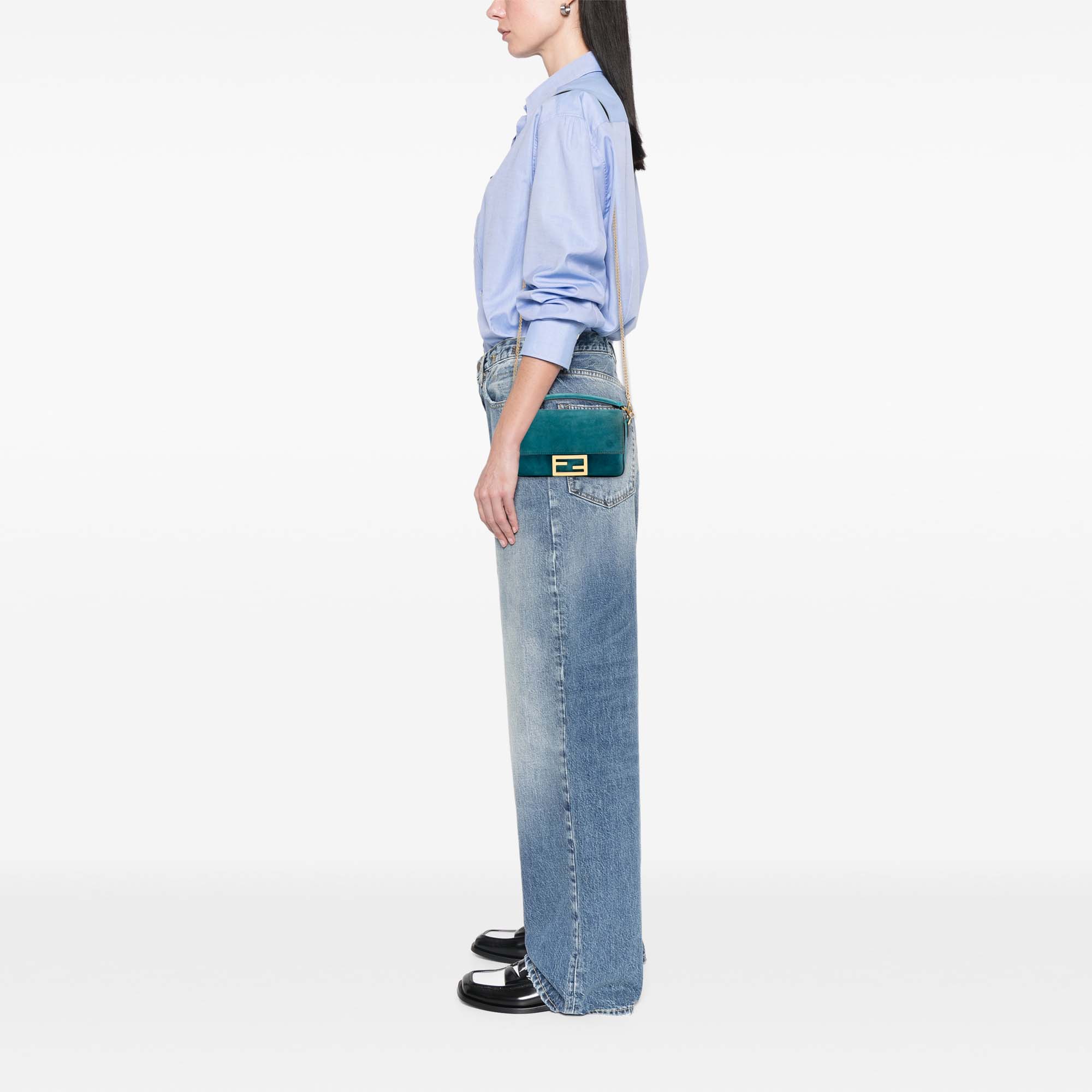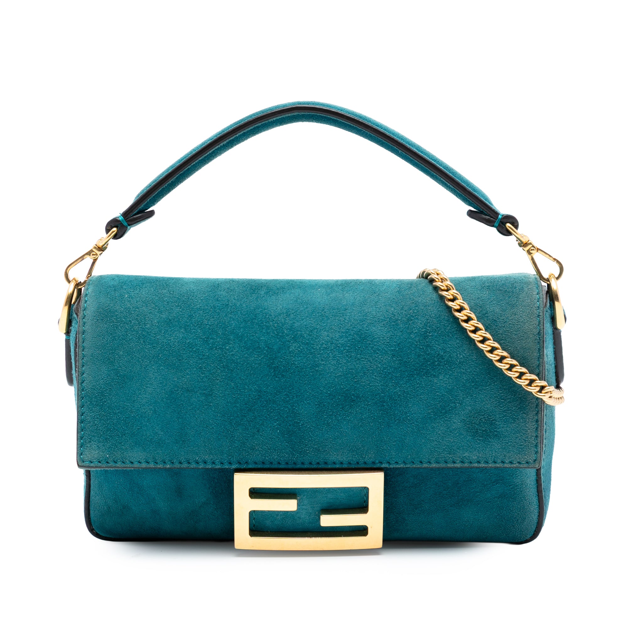Please note this is a pre-owned item that may display signs of wear consistent with the condition listed above and shown in photos. Designer Revival guarantees this is an authentic Blue Fendi Mini Suede Baguette Satchel or 100% of your money back. Learn more about our authentication process.