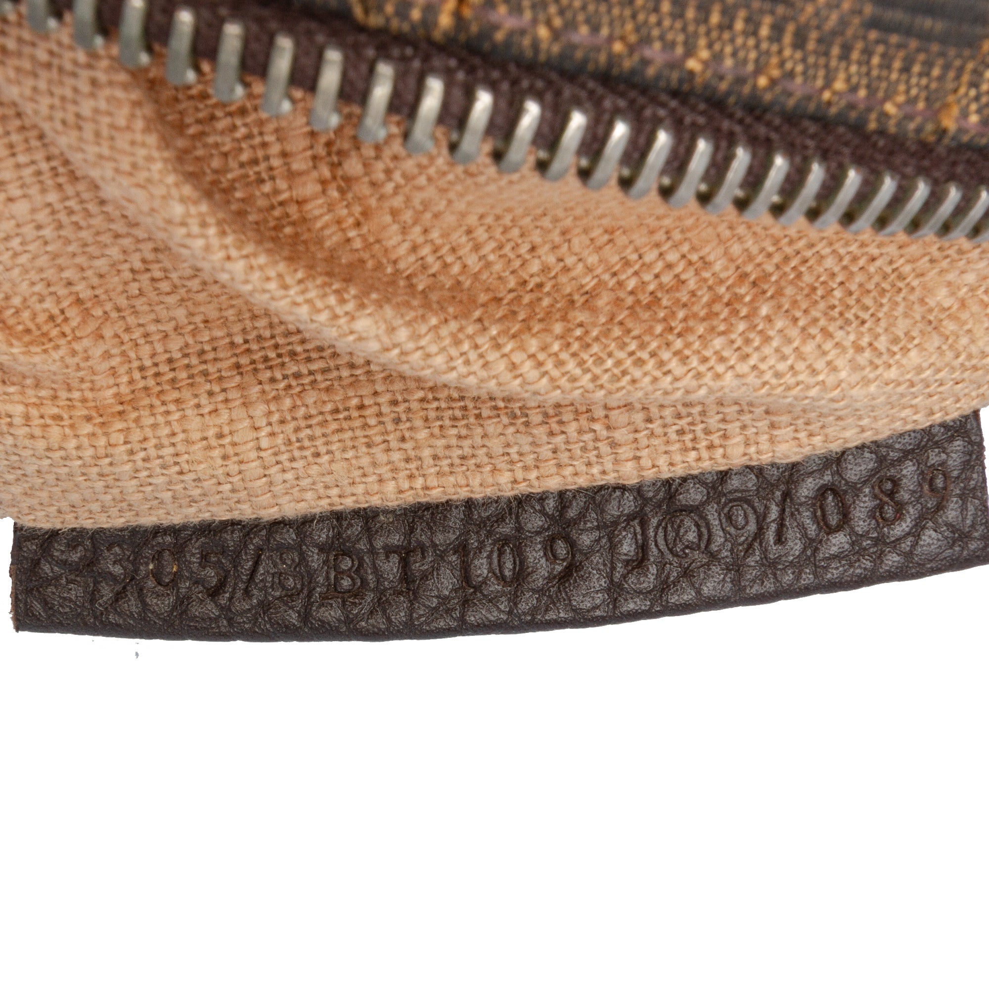Product Details: Brown Fendi Zucca Canvas Selleria Crossbody. This crossbody bag features a canvas body with leather trim, an adjustable flat leather strap, a top zip closure, and an interior zip pocket. 11" L x 10.6" W x 1.2" D. Serial number 2305 8BT109 JQ9 089.