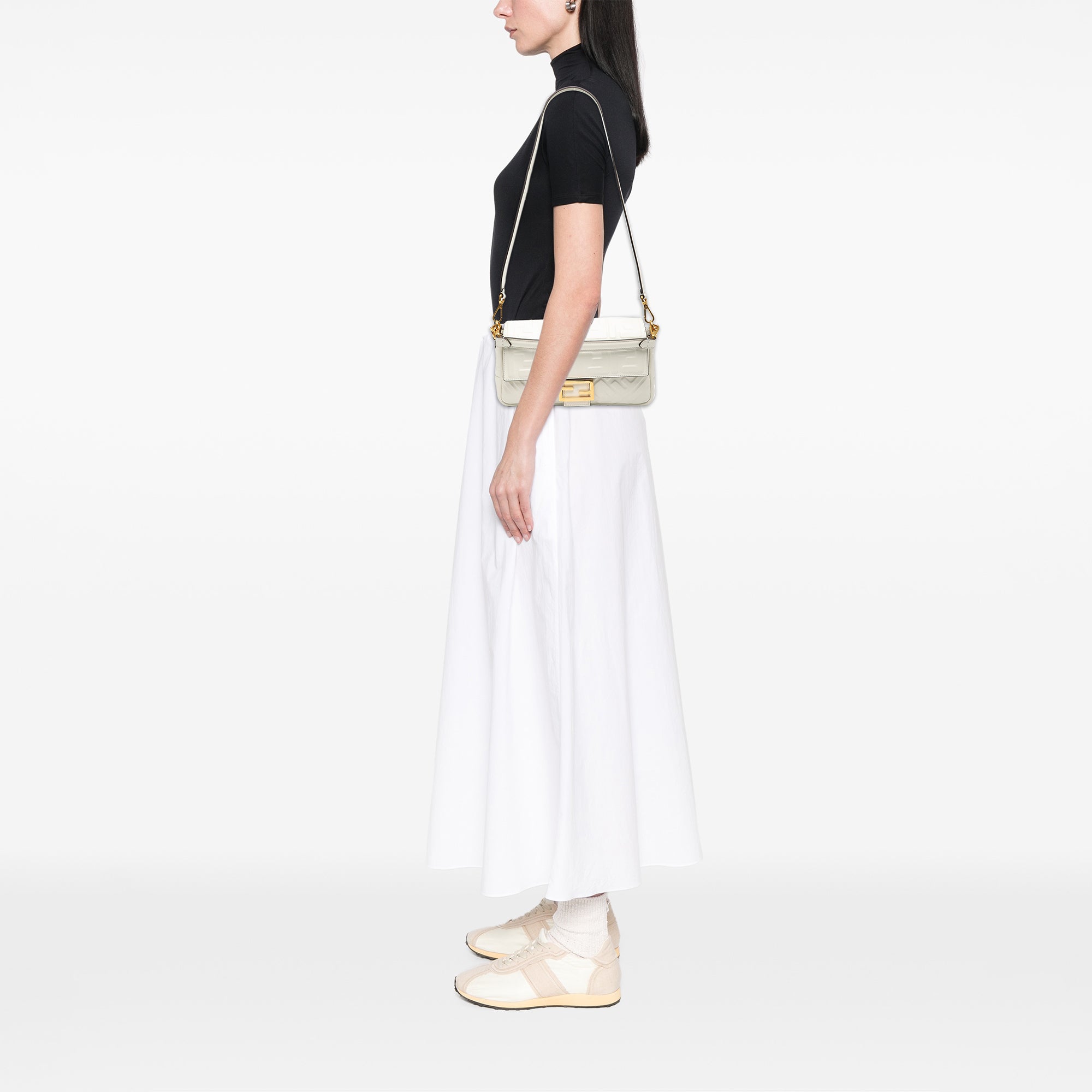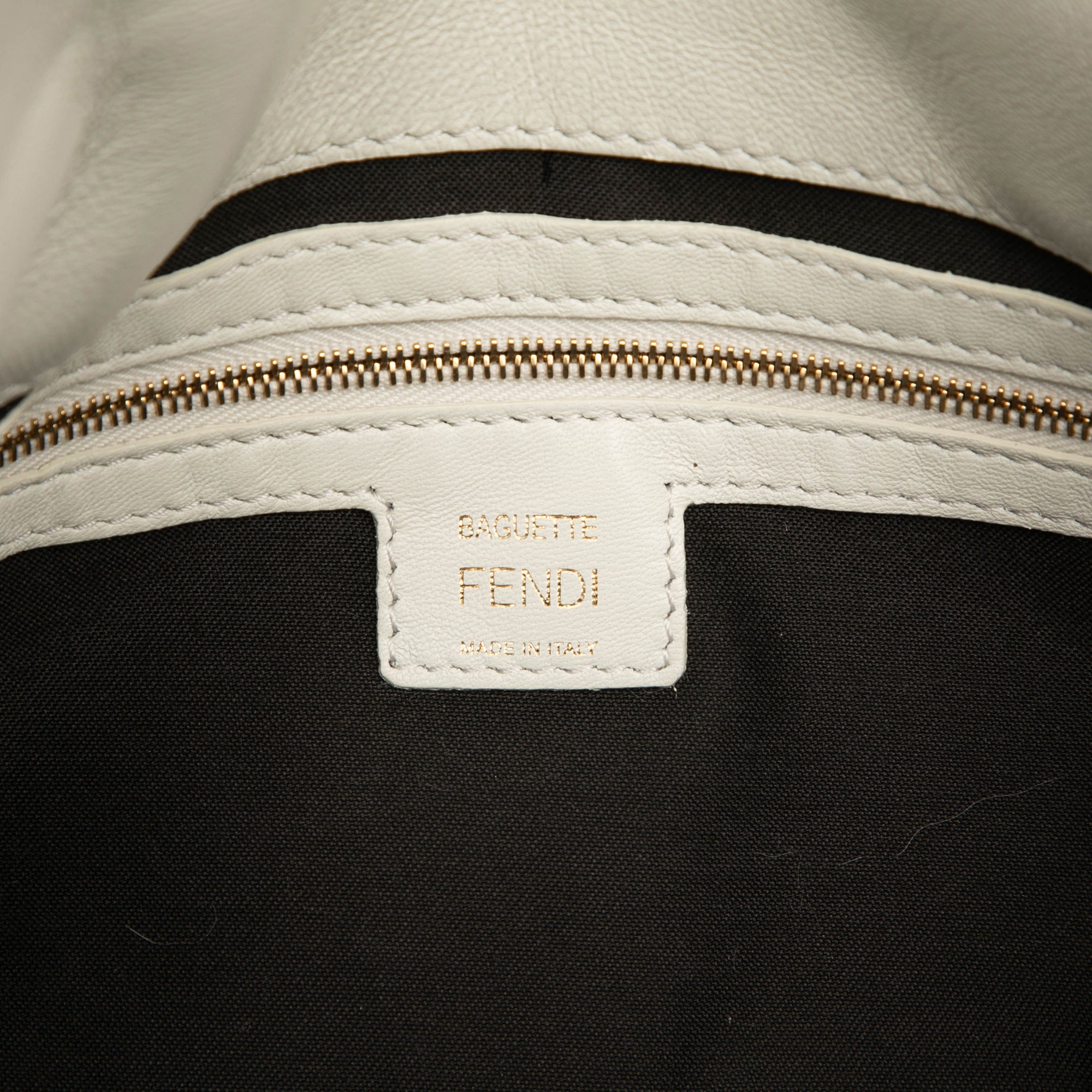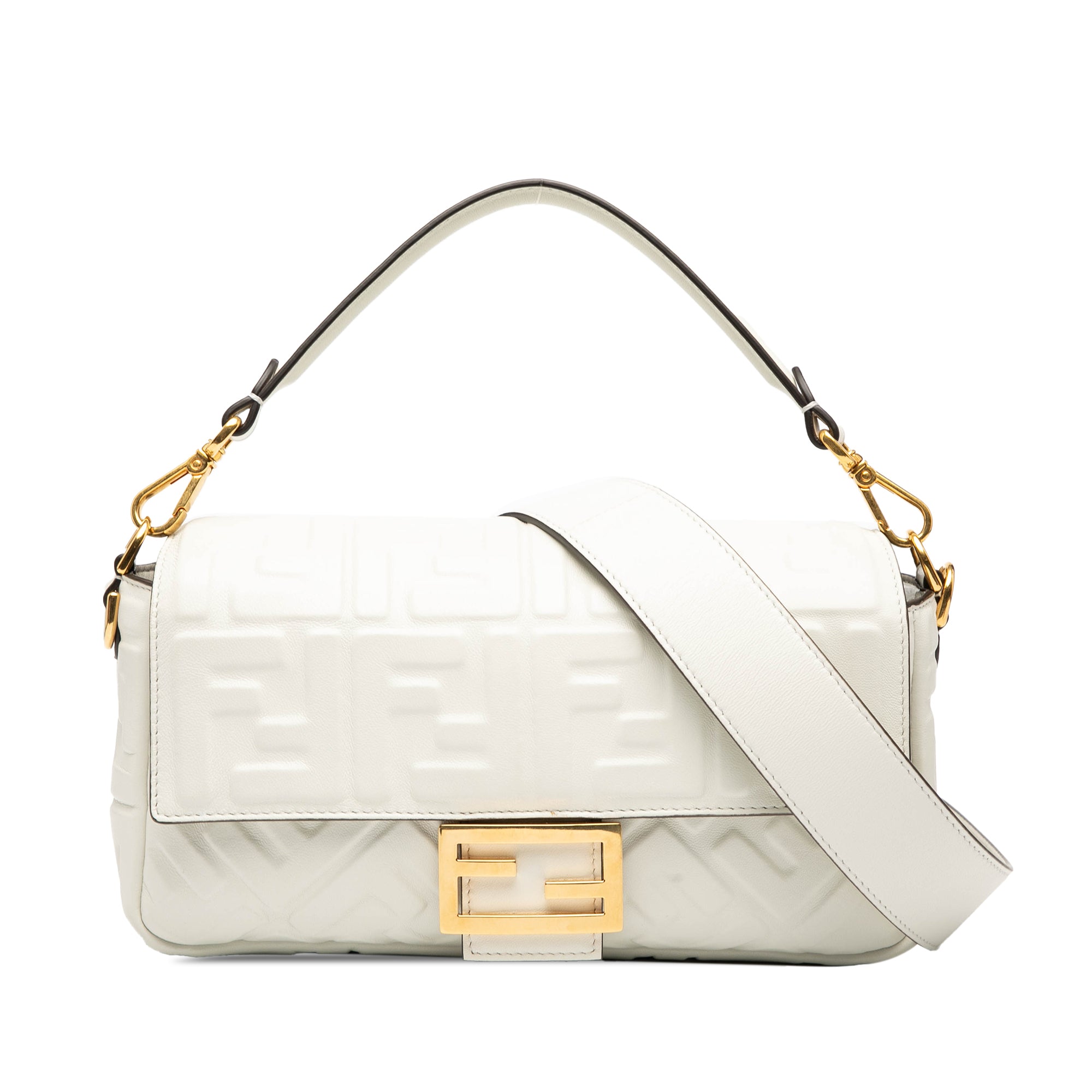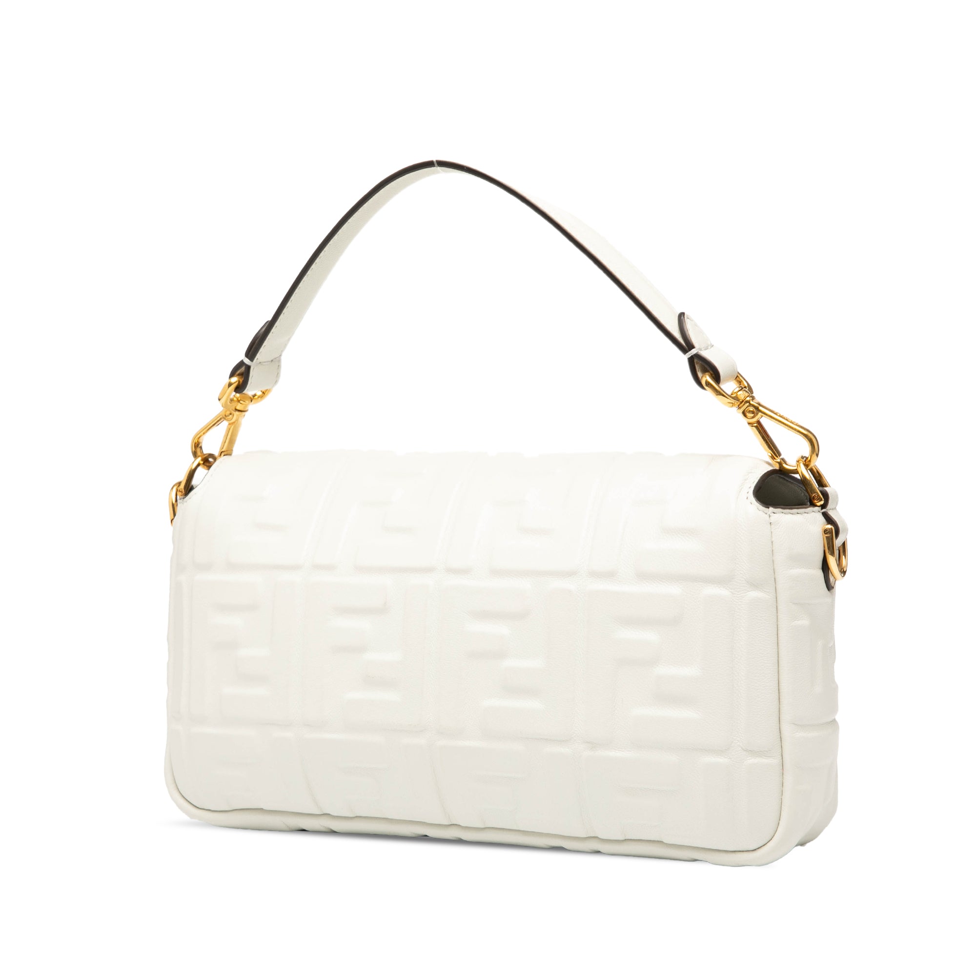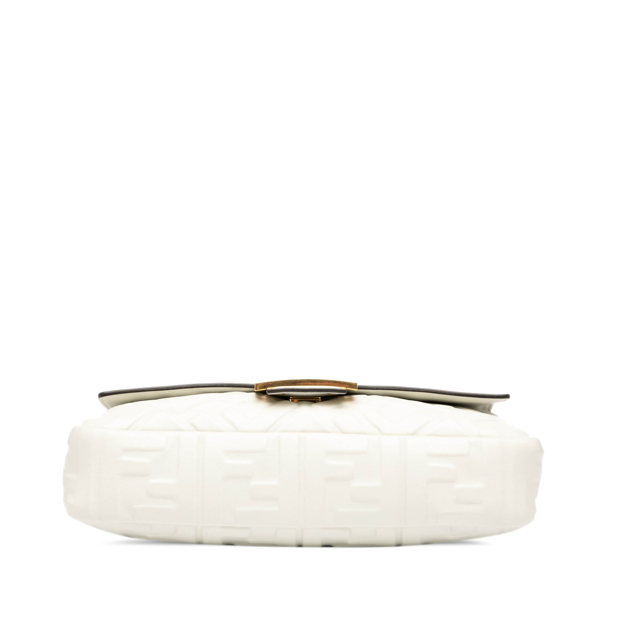 White Fendi Zucca Embossed Leather Baguette Satchel