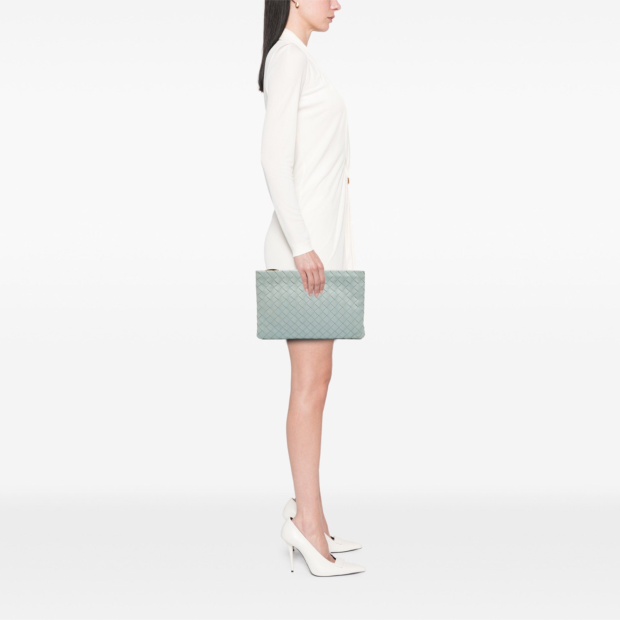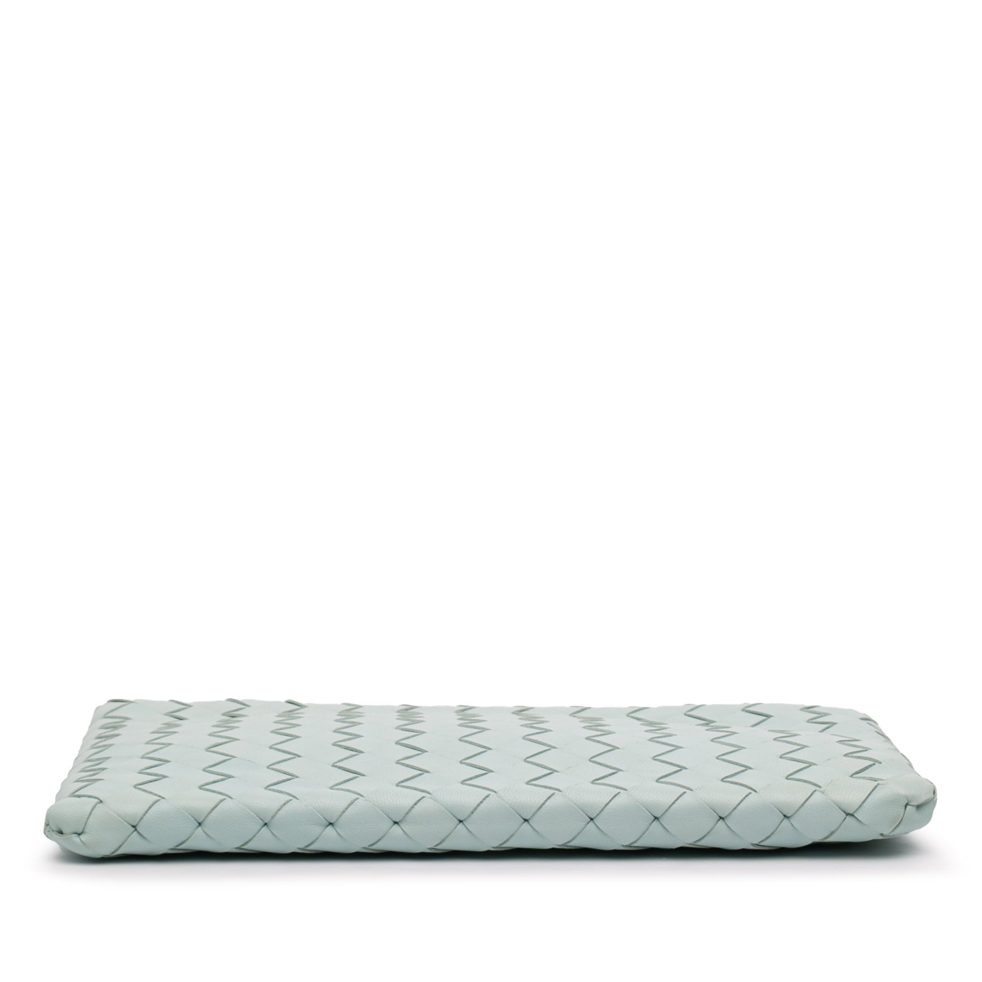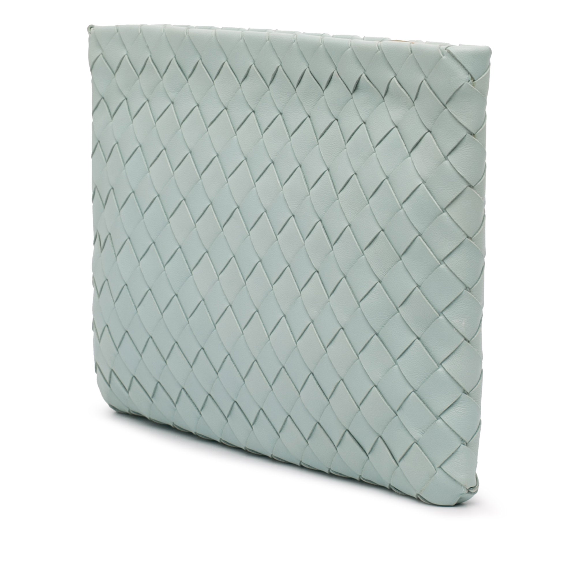 Blue Bottega Veneta Medium Nappa Intrecciato Flat Pouch Clutch Bag