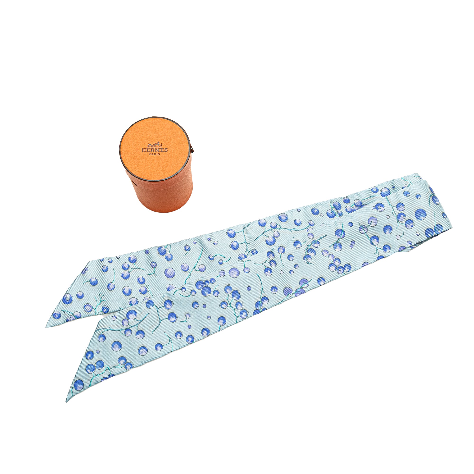Blue Hermès Red Berries Silk Twilly Scarf Scarves