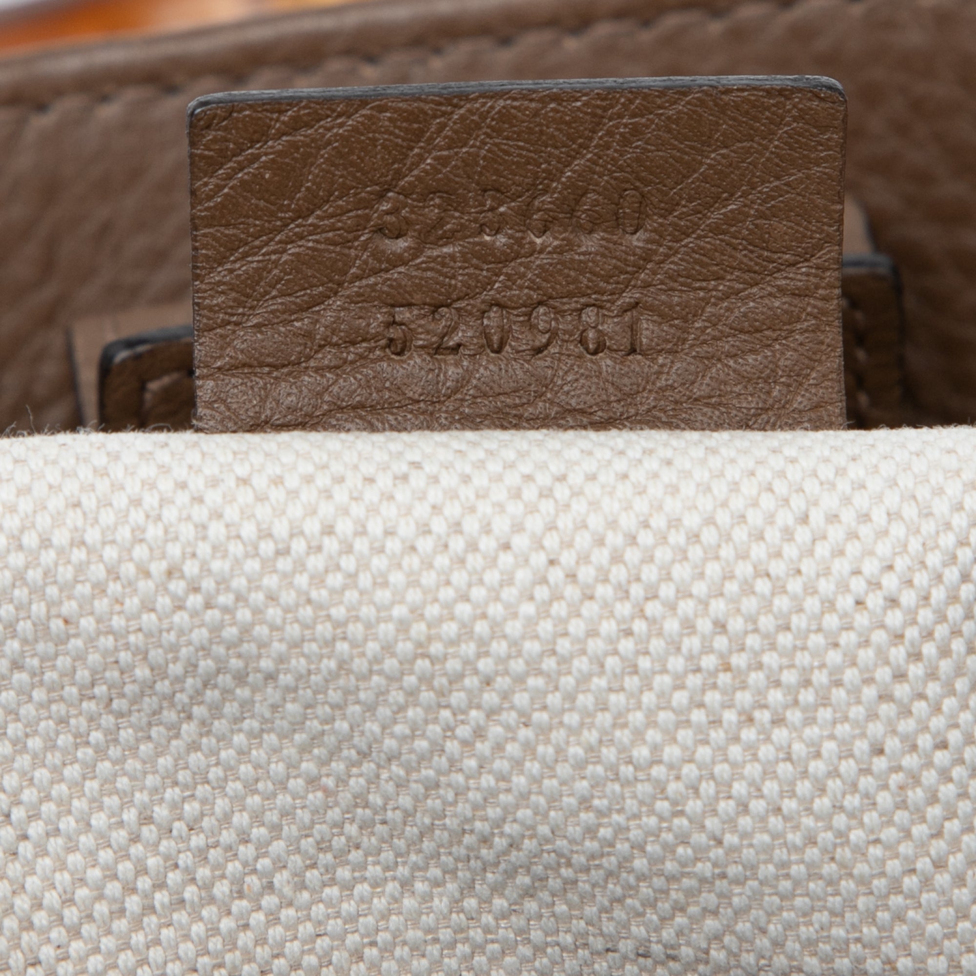 Product Details: Brown Gucci Medium Calfskin Bamboo Shopper Satchel. The Bamboo Shopper satchel features a leather body, bamboo top handles, a detachable flat leather strap, an open top with a magnetic closure, and an interior zip and slip pockets. 8.3" L x 12.6" W x 5.5" D, 3.9" drop. Serial number 323660 520981.