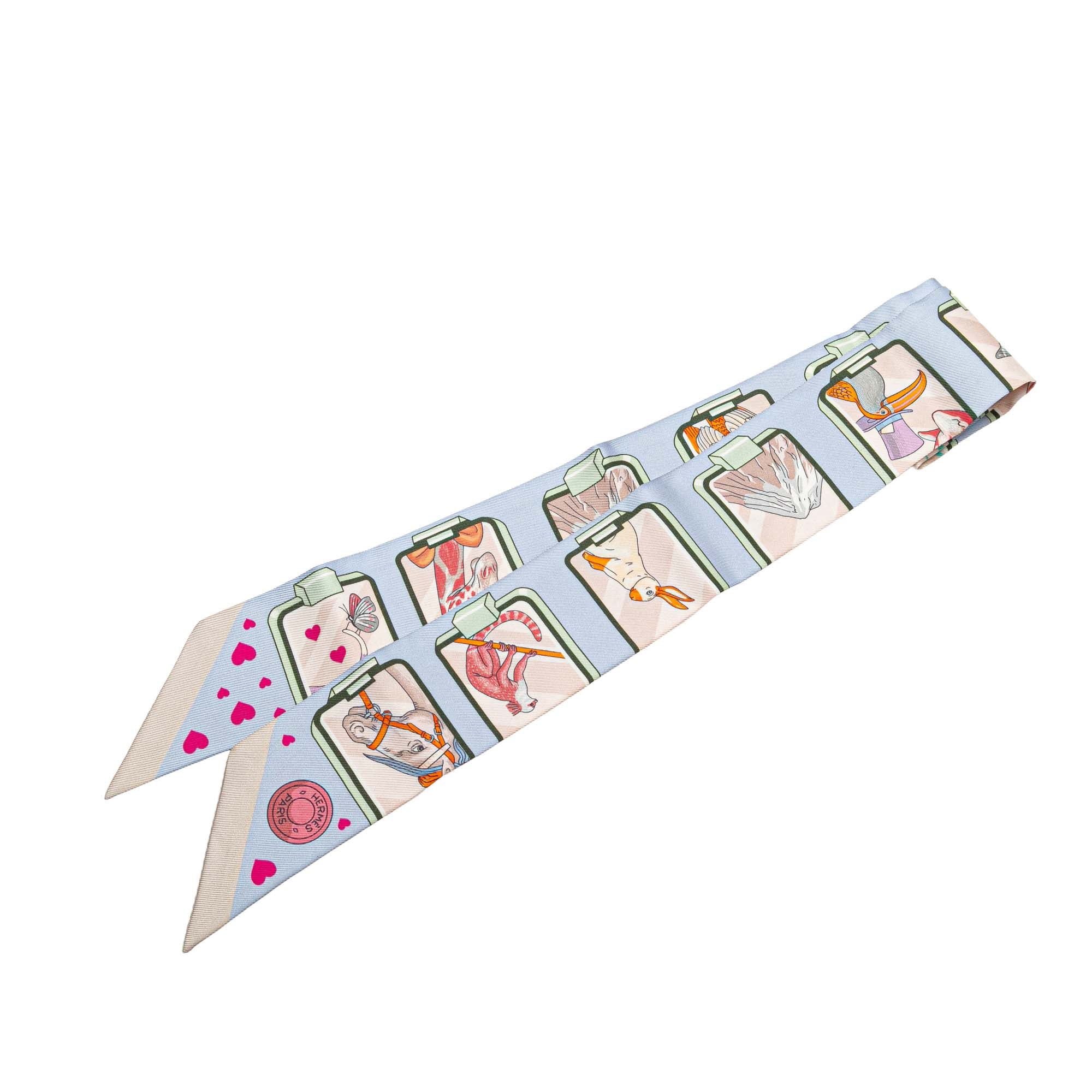 Blue Hermès Story Silk Twilly Scarf Scarves