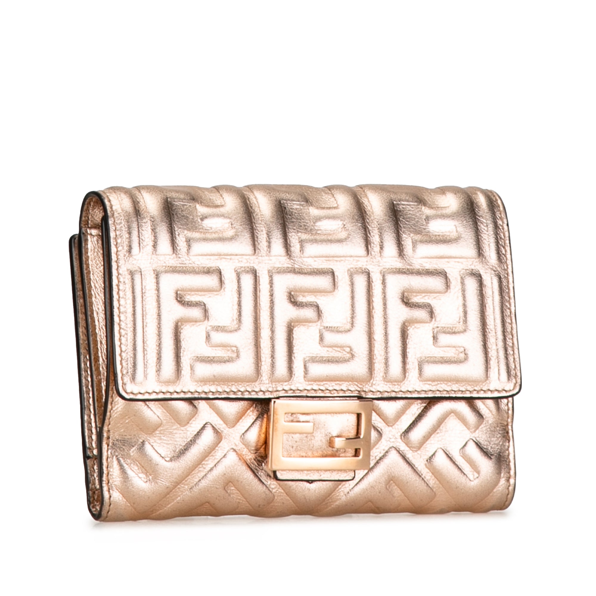 Please note this is a pre-owned item that may display signs of wear consistent with the condition listed above and shown in photos. Designer Revival guarantees this is an authentic Gold Fendi Zucca Embossed Compact Wallet or 100% of your money back. Learn more about our authentication process.