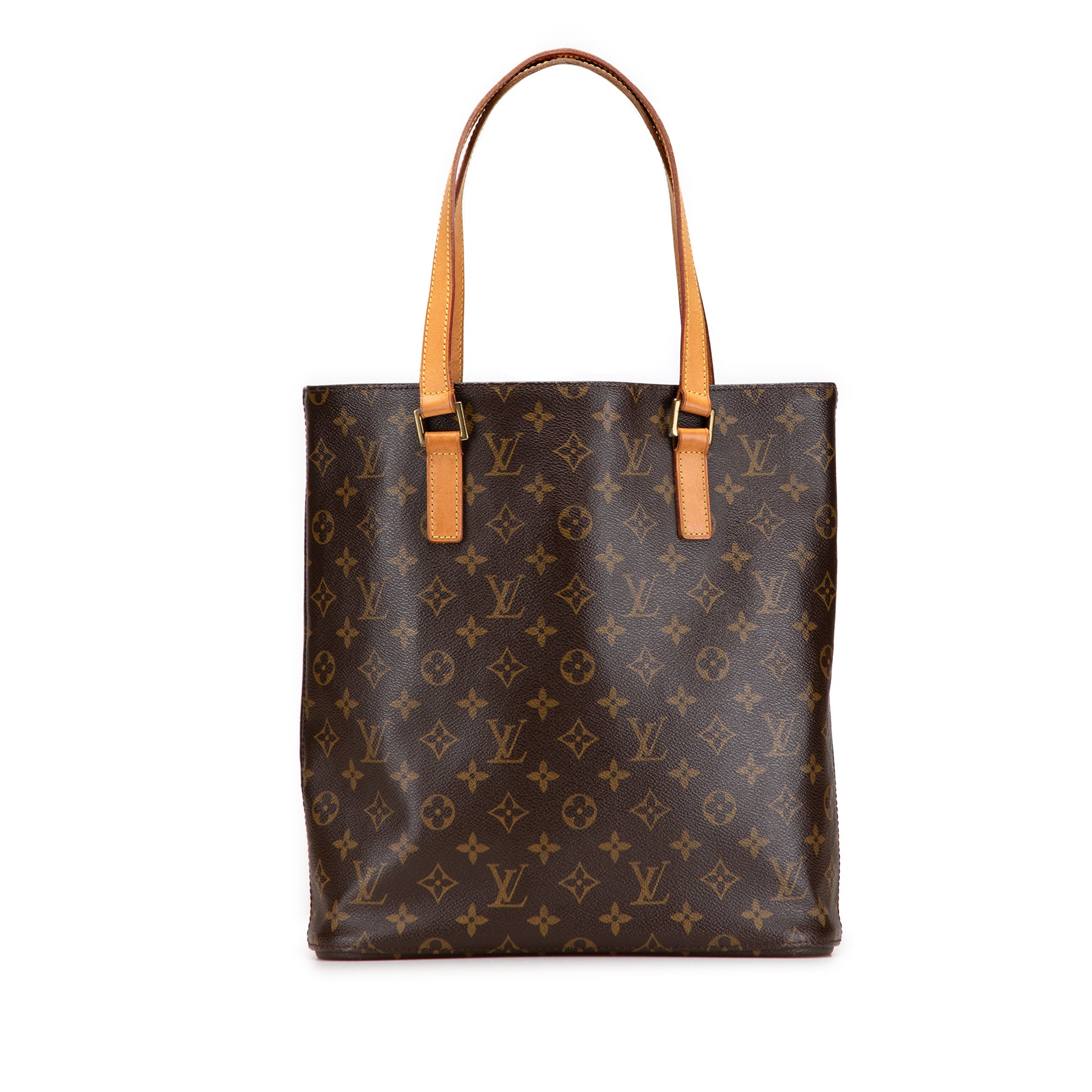 Product Details: Brown Louis Vuitton Monogram Vavin GM Tote Bag. The Vavin GM features a monogram canvas body, flat vachetta leather straps, an open top, and interior zip and slip pockets. 12.2" L x 11.4" W x 4.1" D, 8.3" drop. Serial number SR0033.