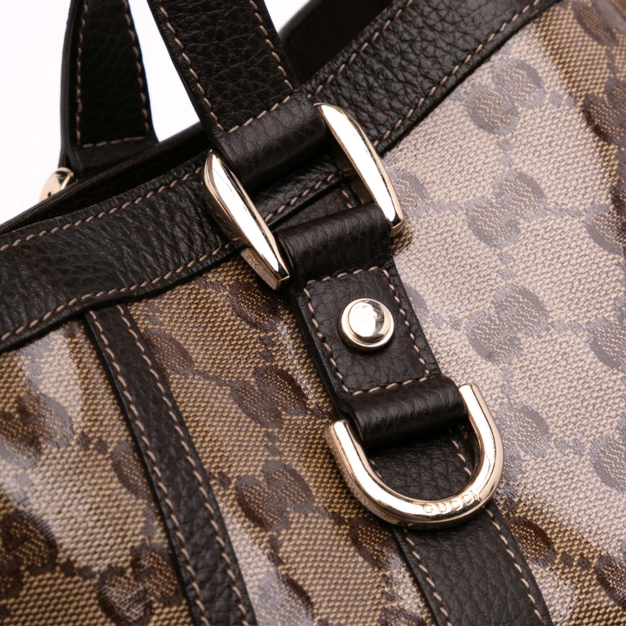 Please note this is a pre-owned item that may display signs of wear consistent with the condition listed above and shown in photos. Designer Revival guarantees this is an authentic Brown Gucci GG Crystal Abbey D Ring Convertible Tote Satchel or 100% of your money back. Learn more about our authentication process.